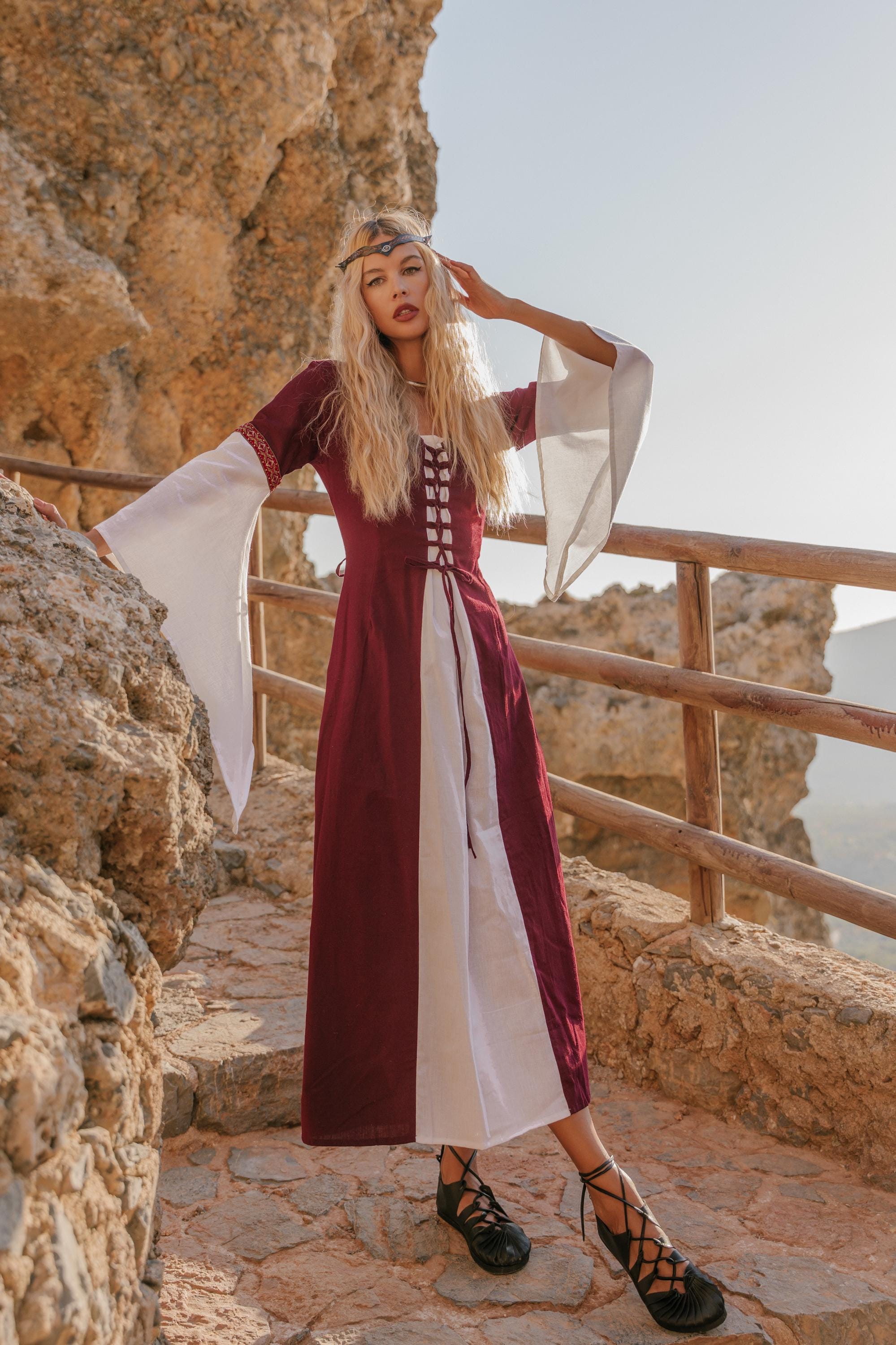 Whether you're attending a Renaissance fair, a costume party, or simply looking for a unique and enchanting piece to complete your wardrobe, this medieval dress will transport you to a world of fantasy and beauty. Experience the charm of history with this exquisite piece.