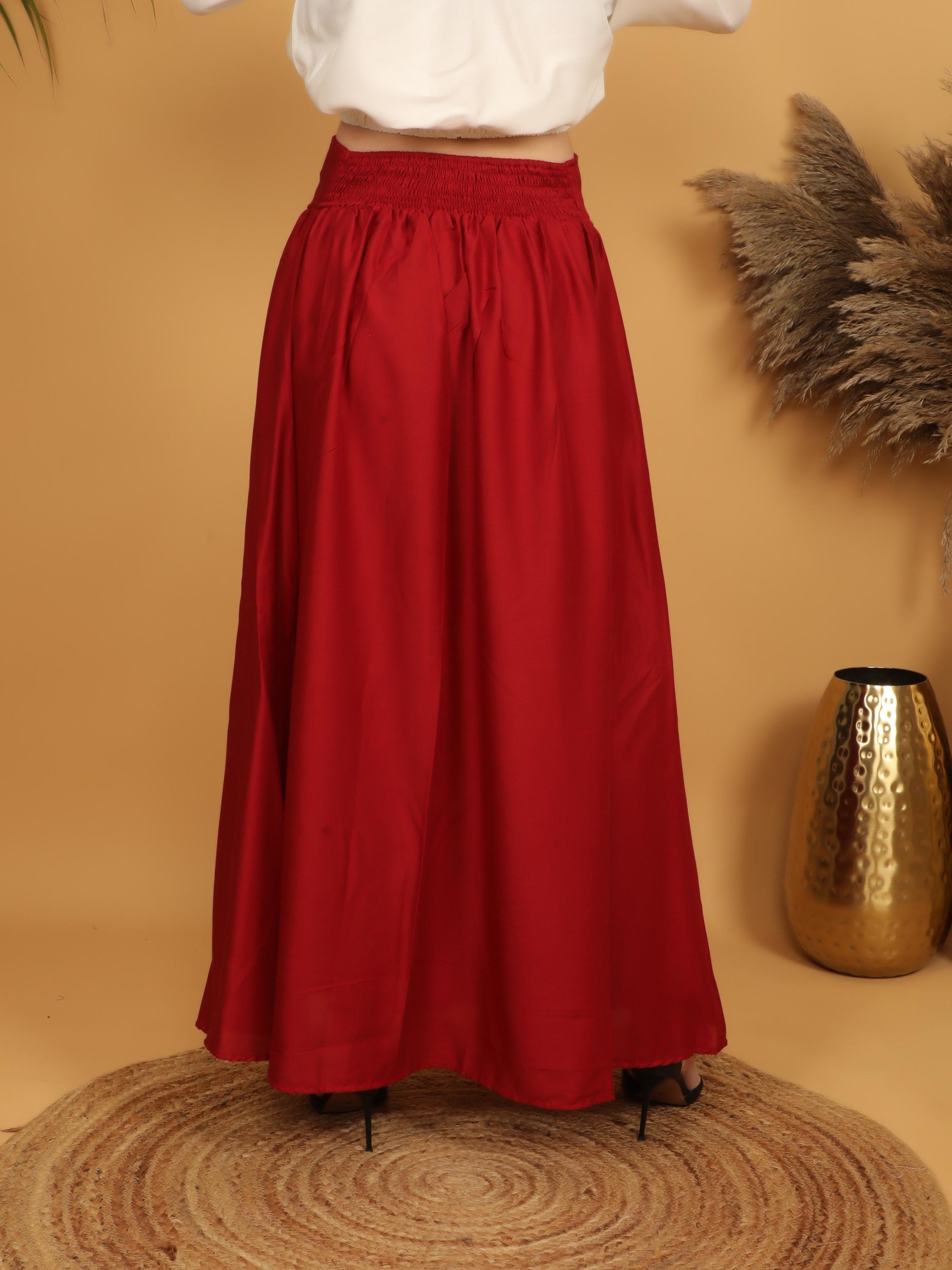 Step into a world of timeless elegance with our viscose long flowing medieval plain wine skirt.