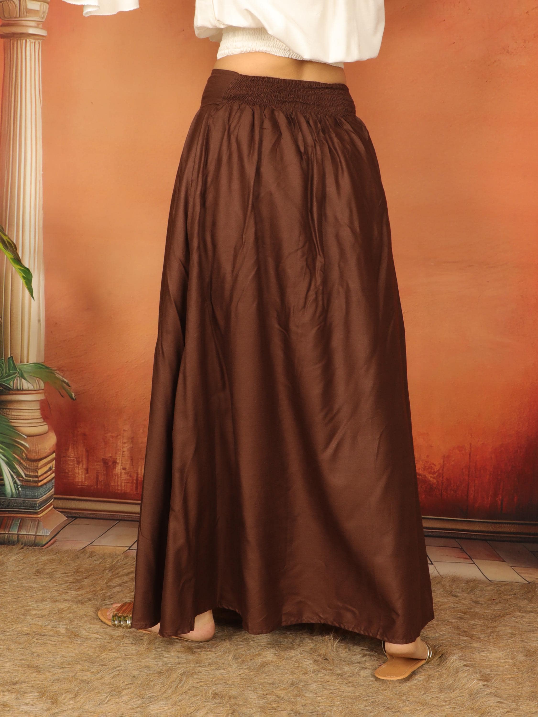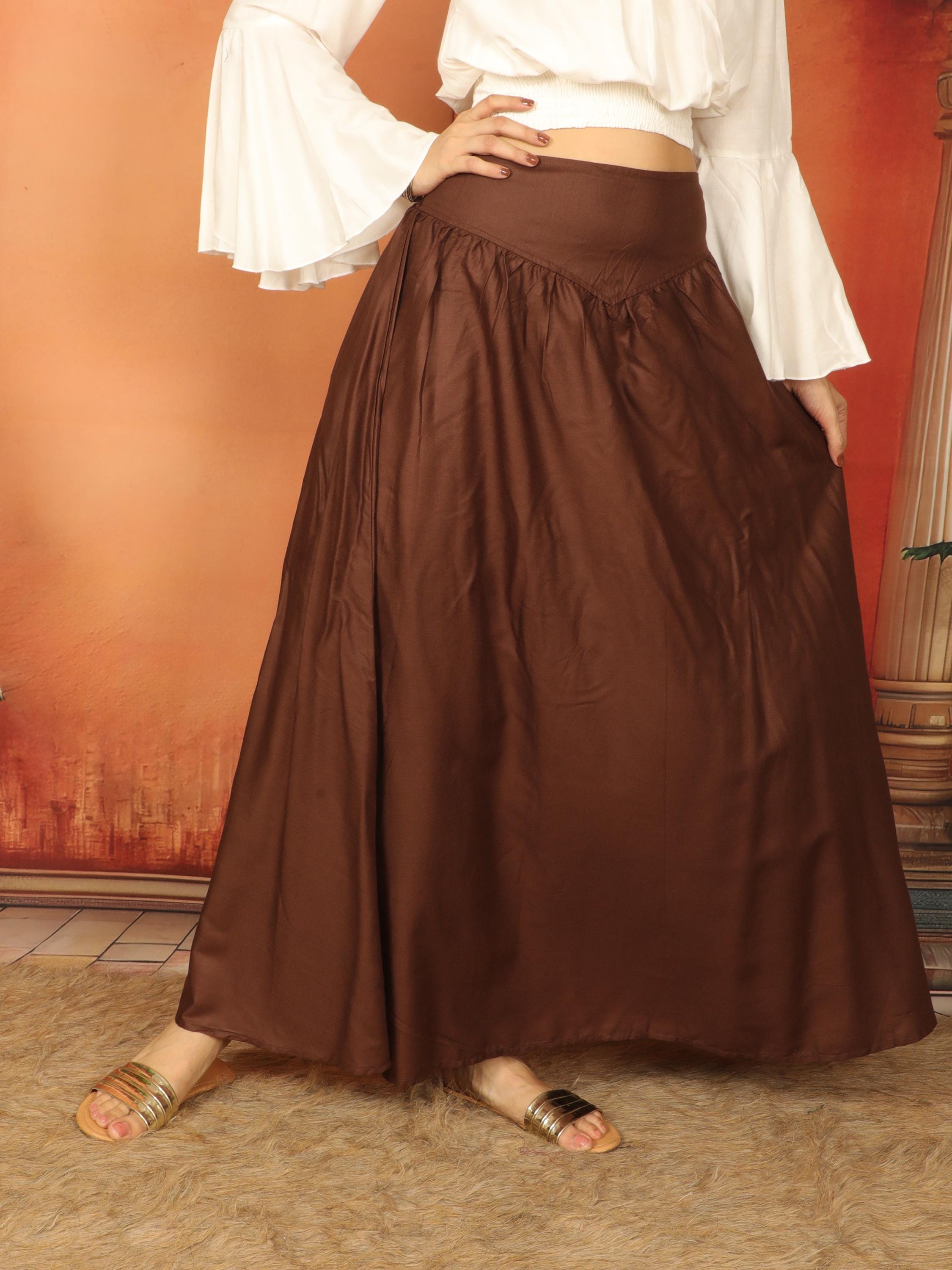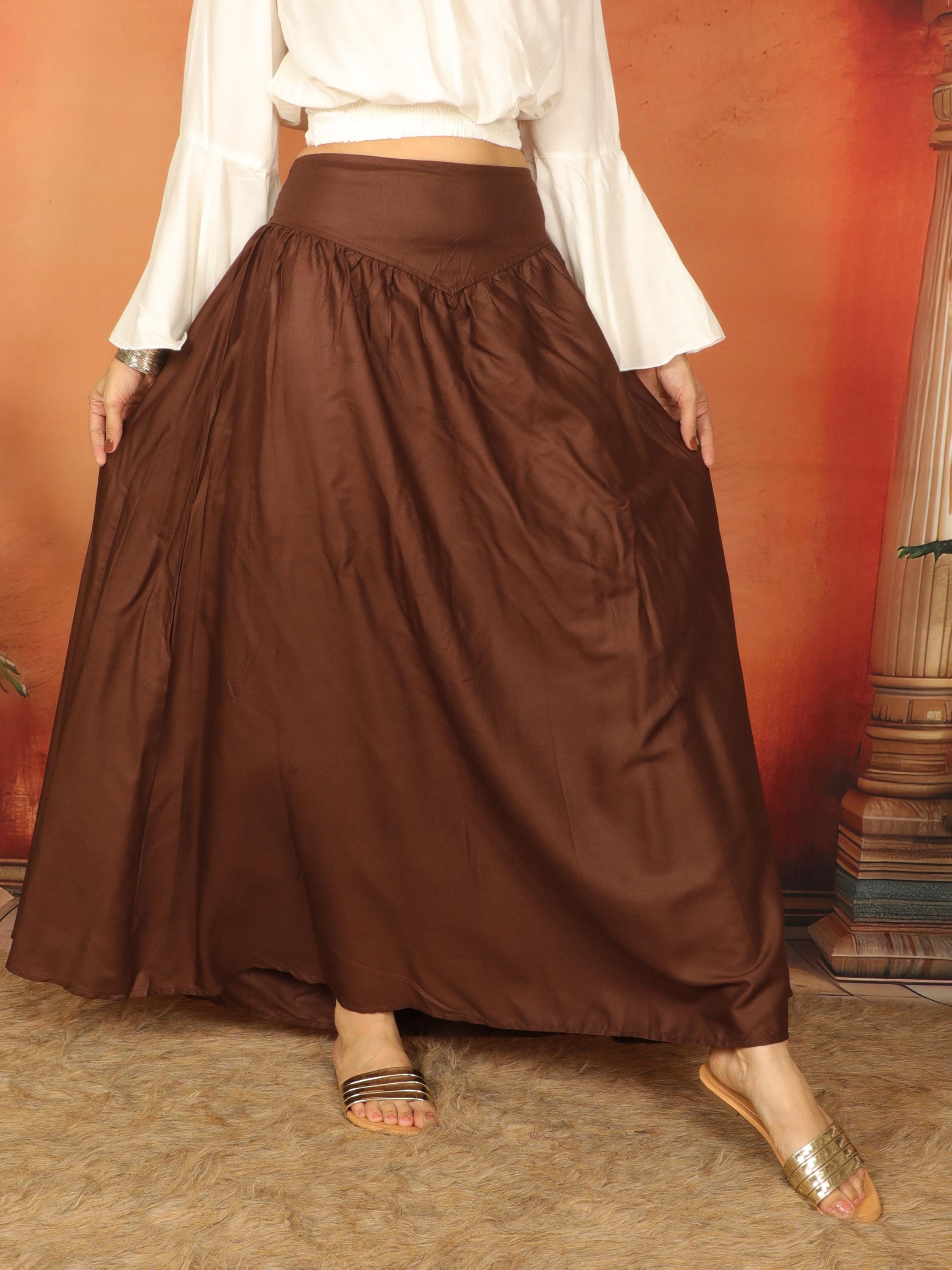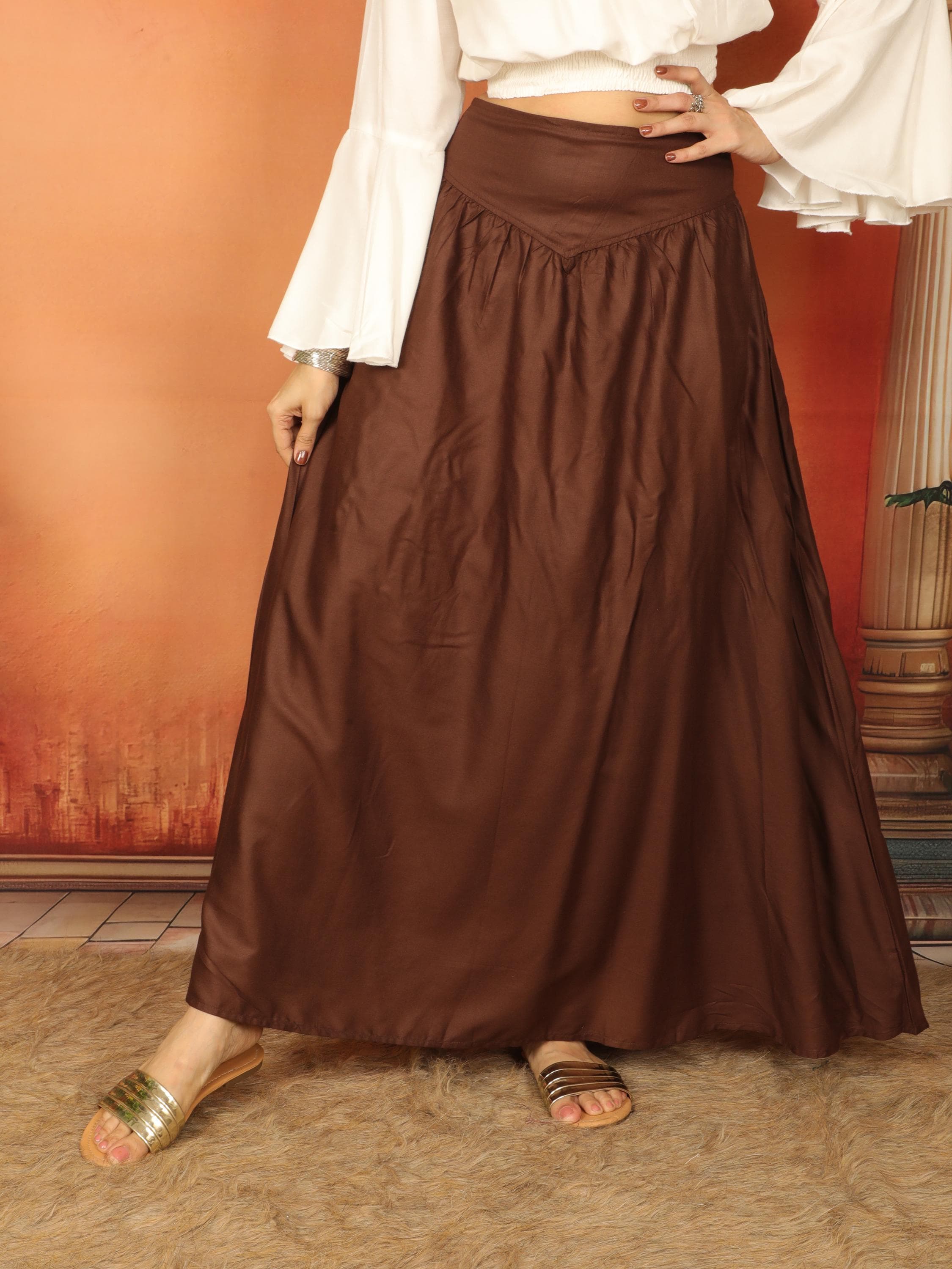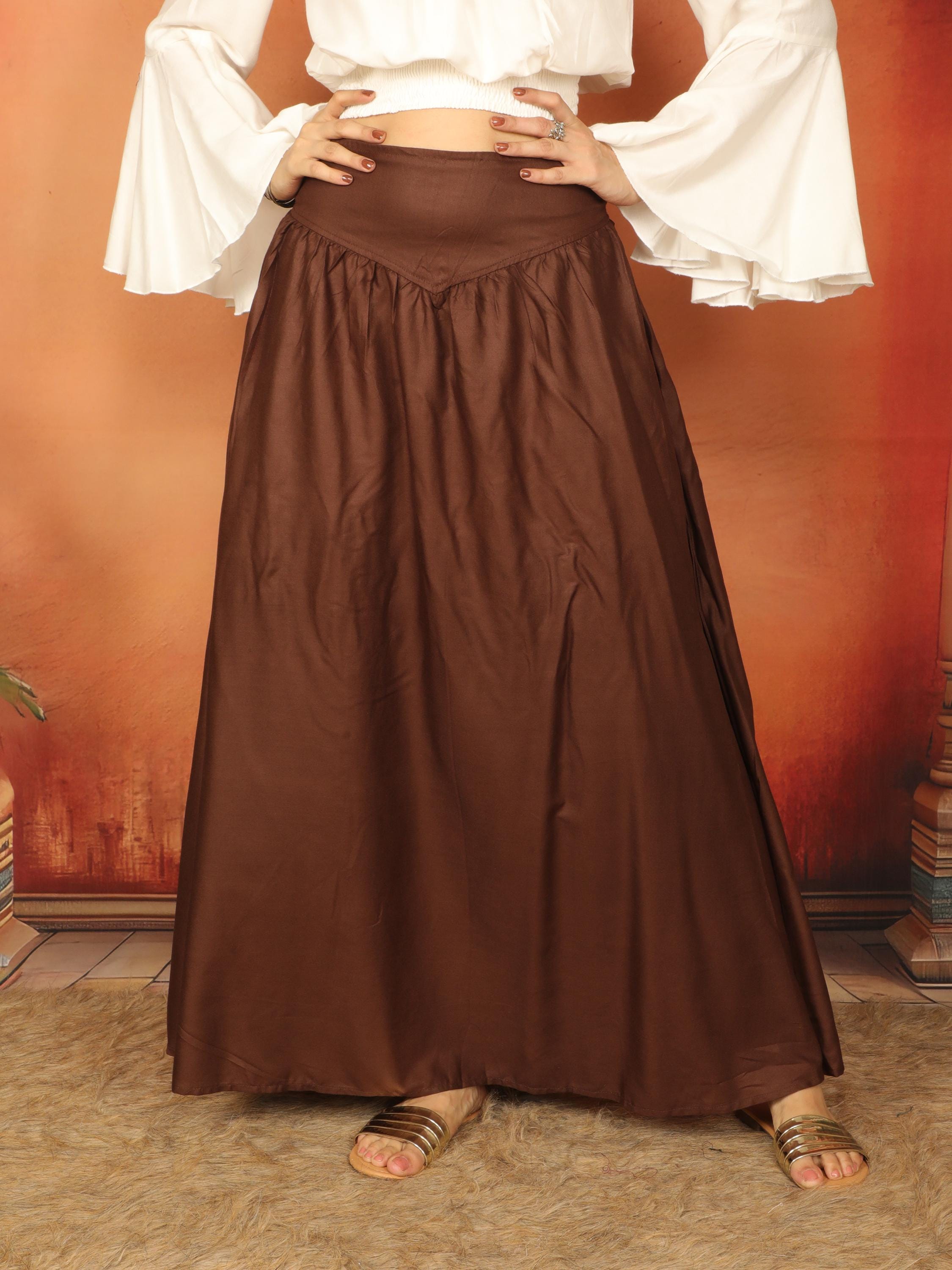 Step into a world of timeless elegance with our viscose long flowing medieval plain Chocolat Brown skirt.