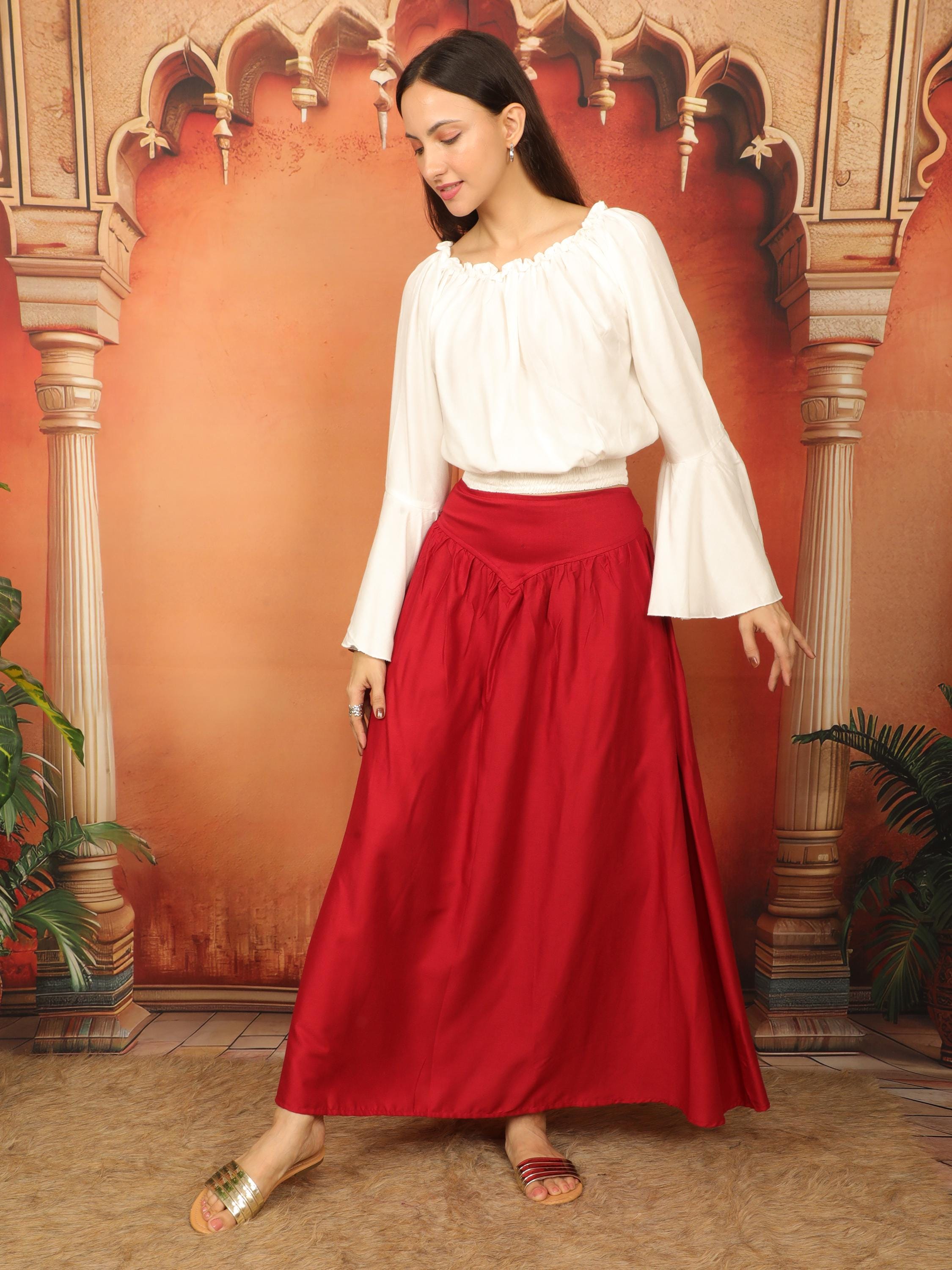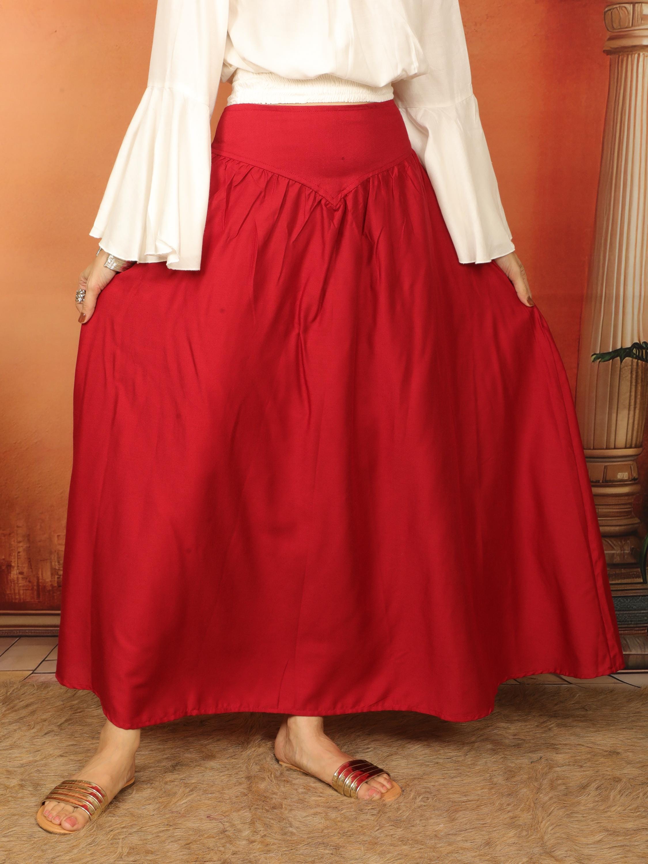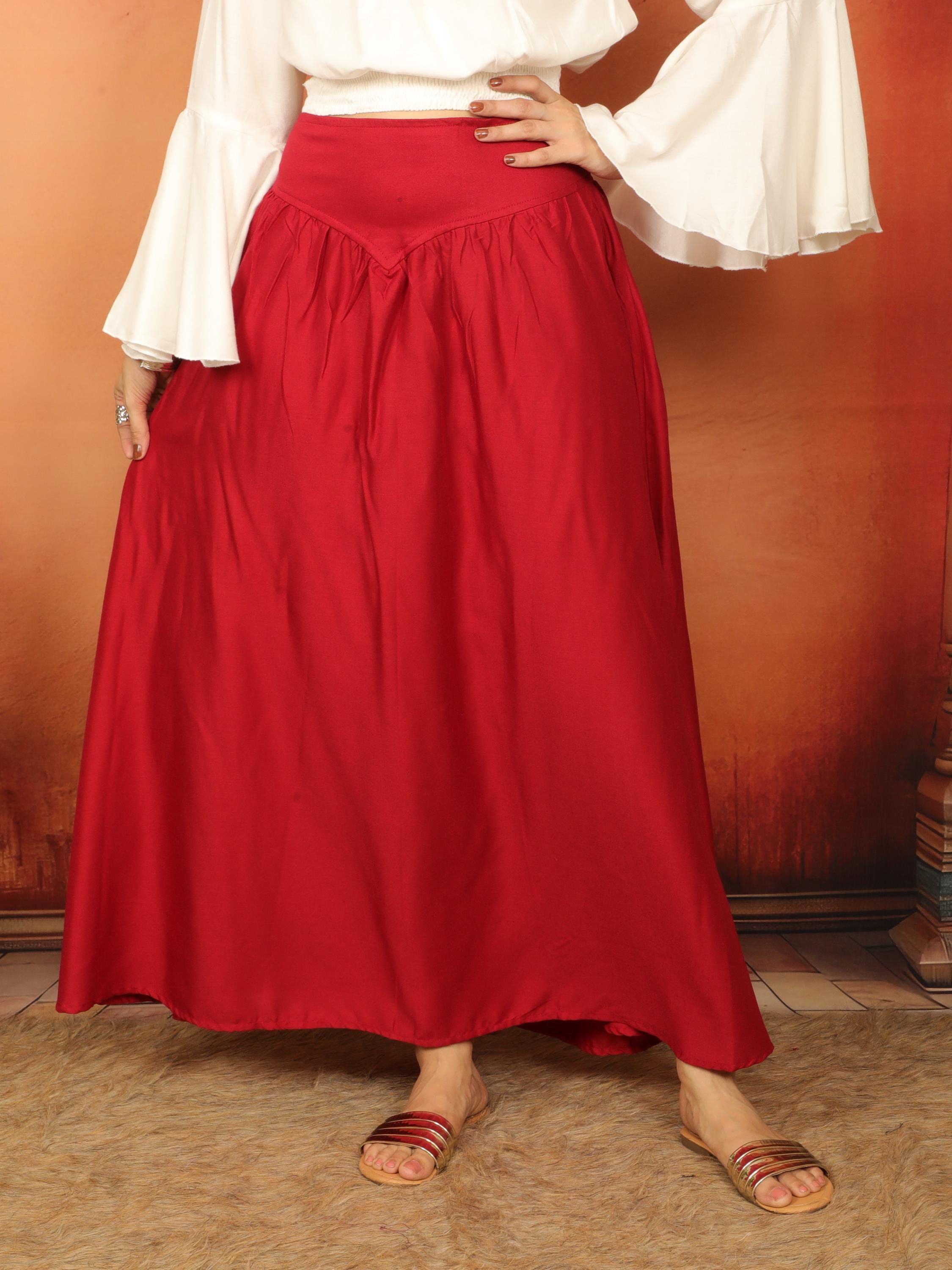 Step into a world of timeless elegance with our viscose long flowing medieval plain wine skirt.