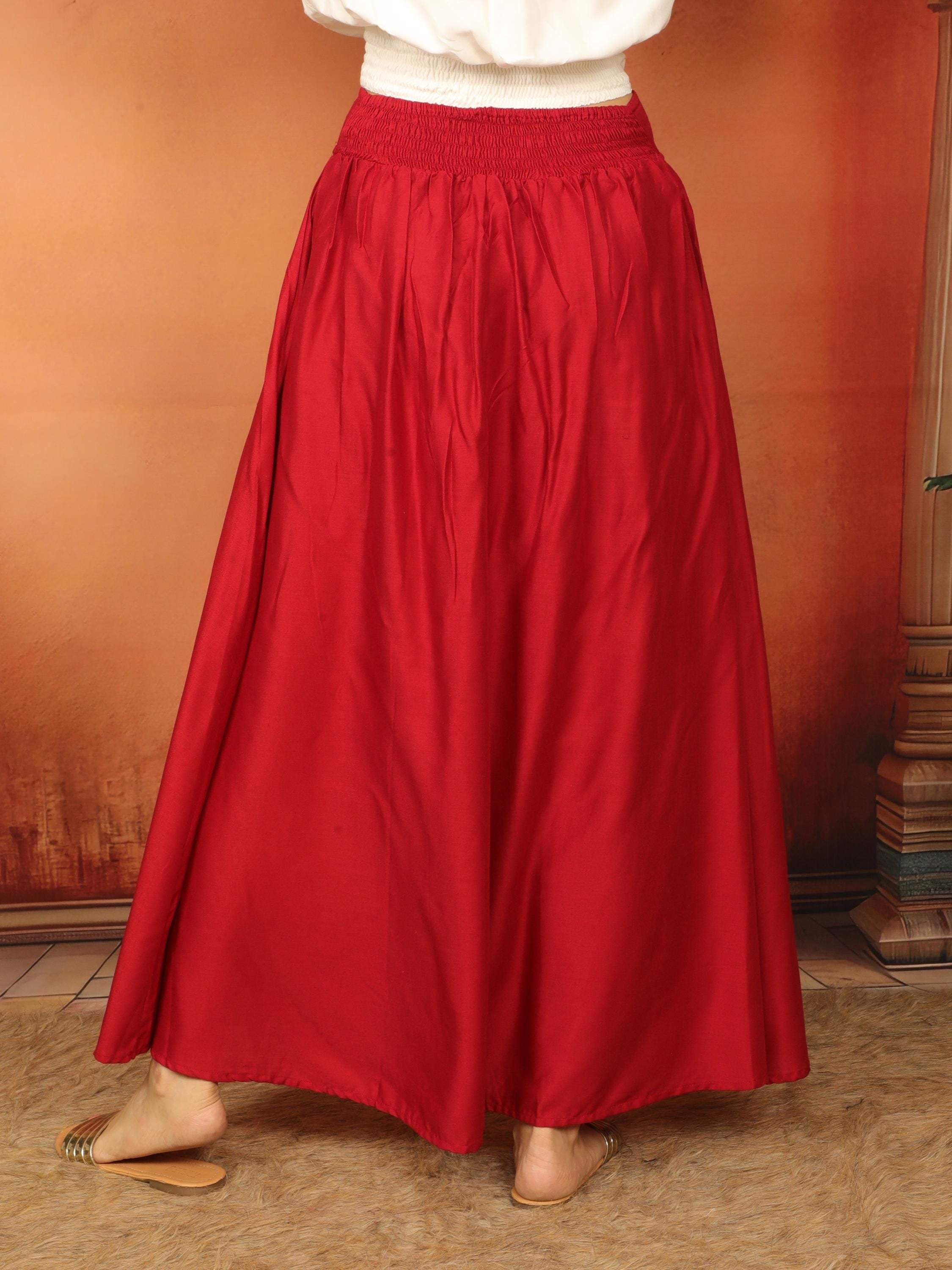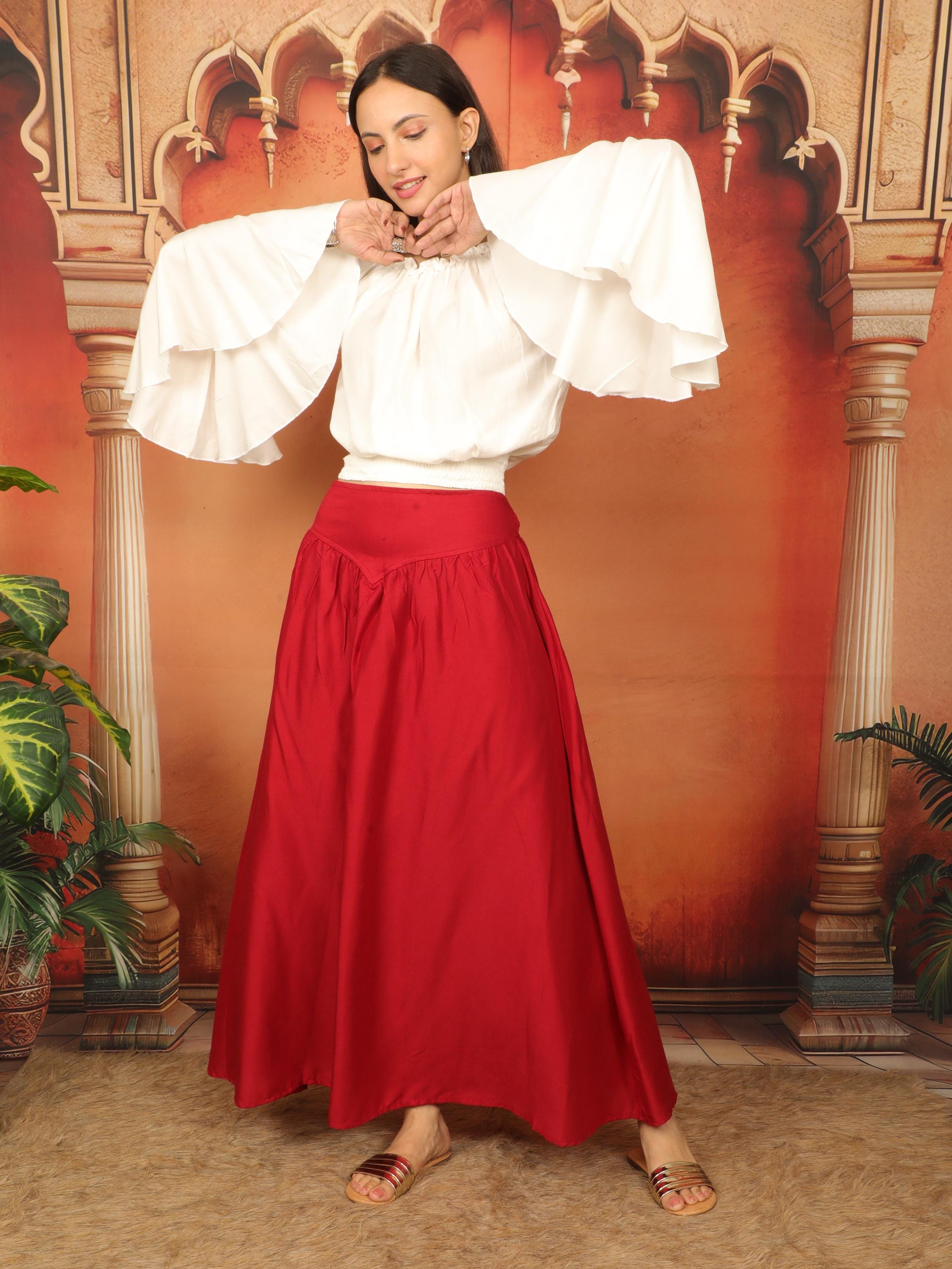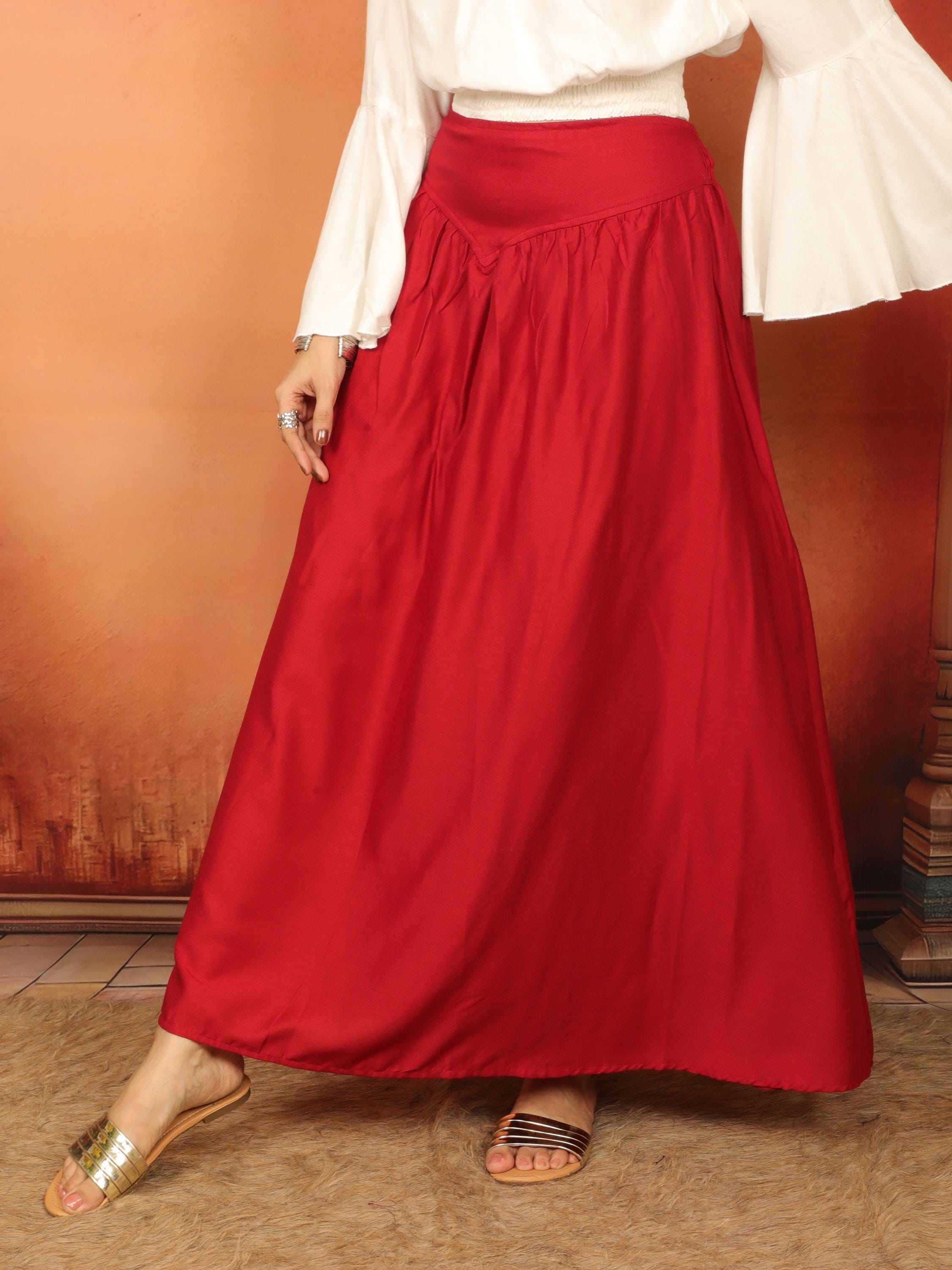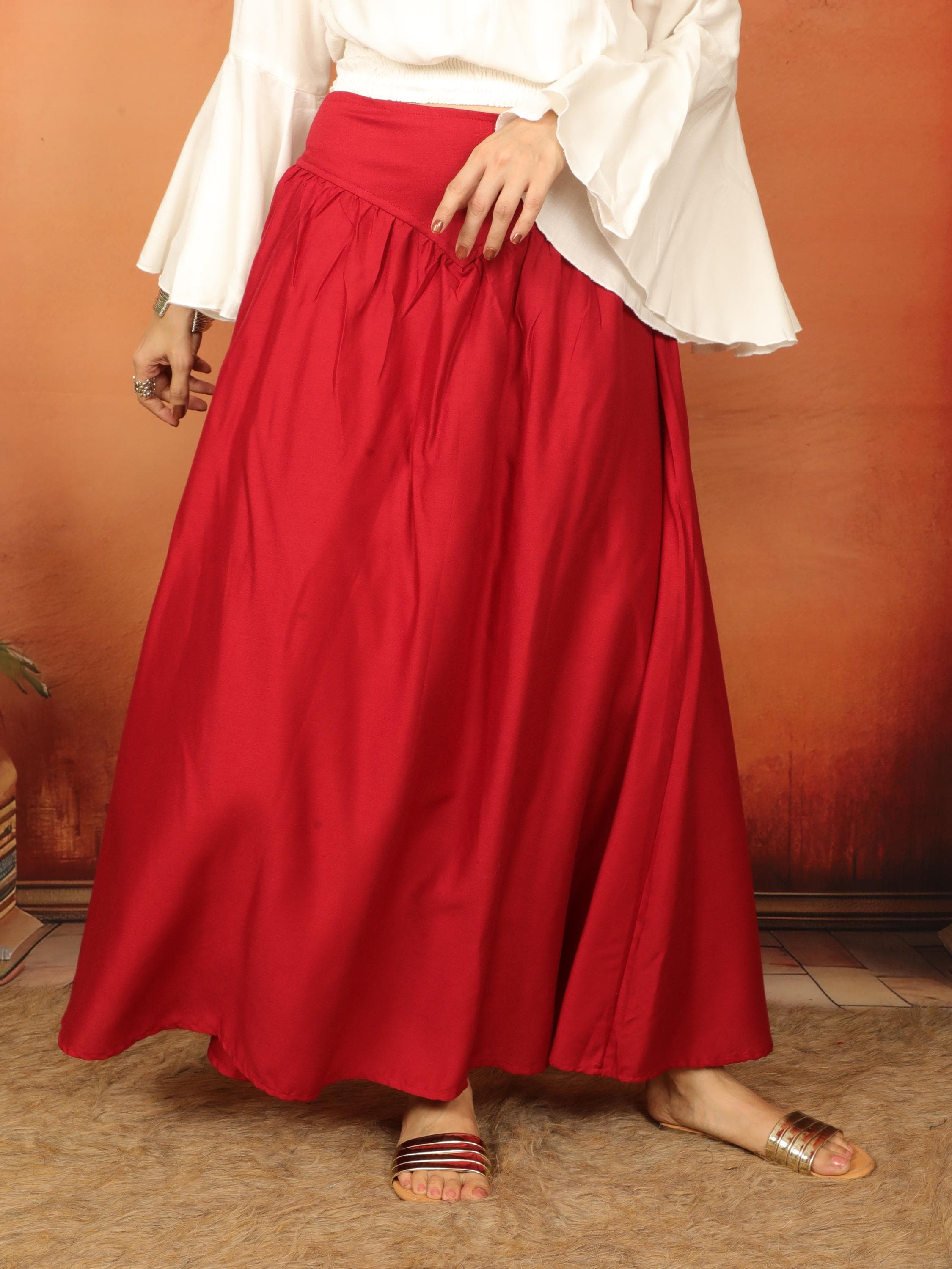 Step into a world of timeless elegance with our viscose long flowing medieval plain wine skirt.