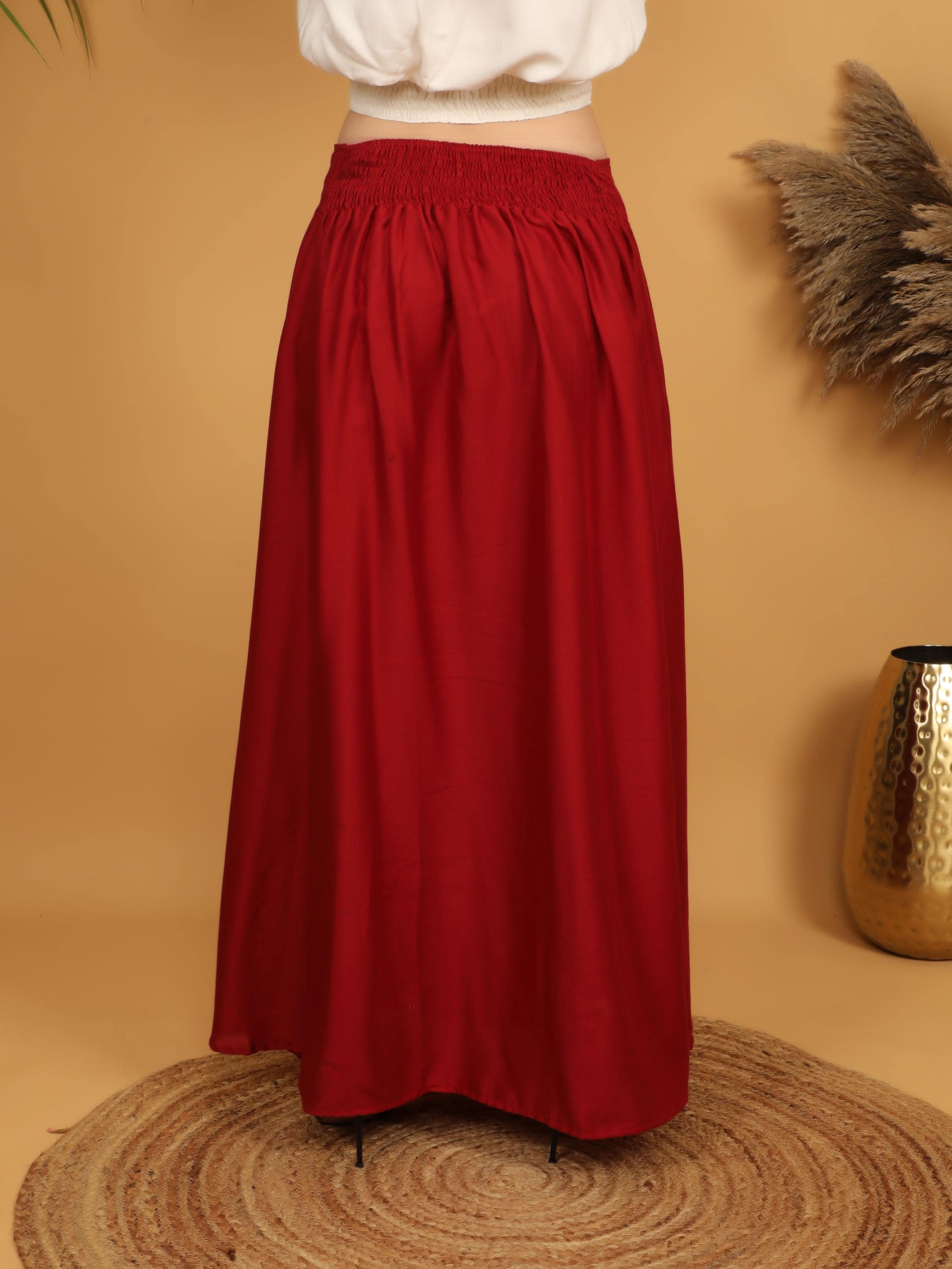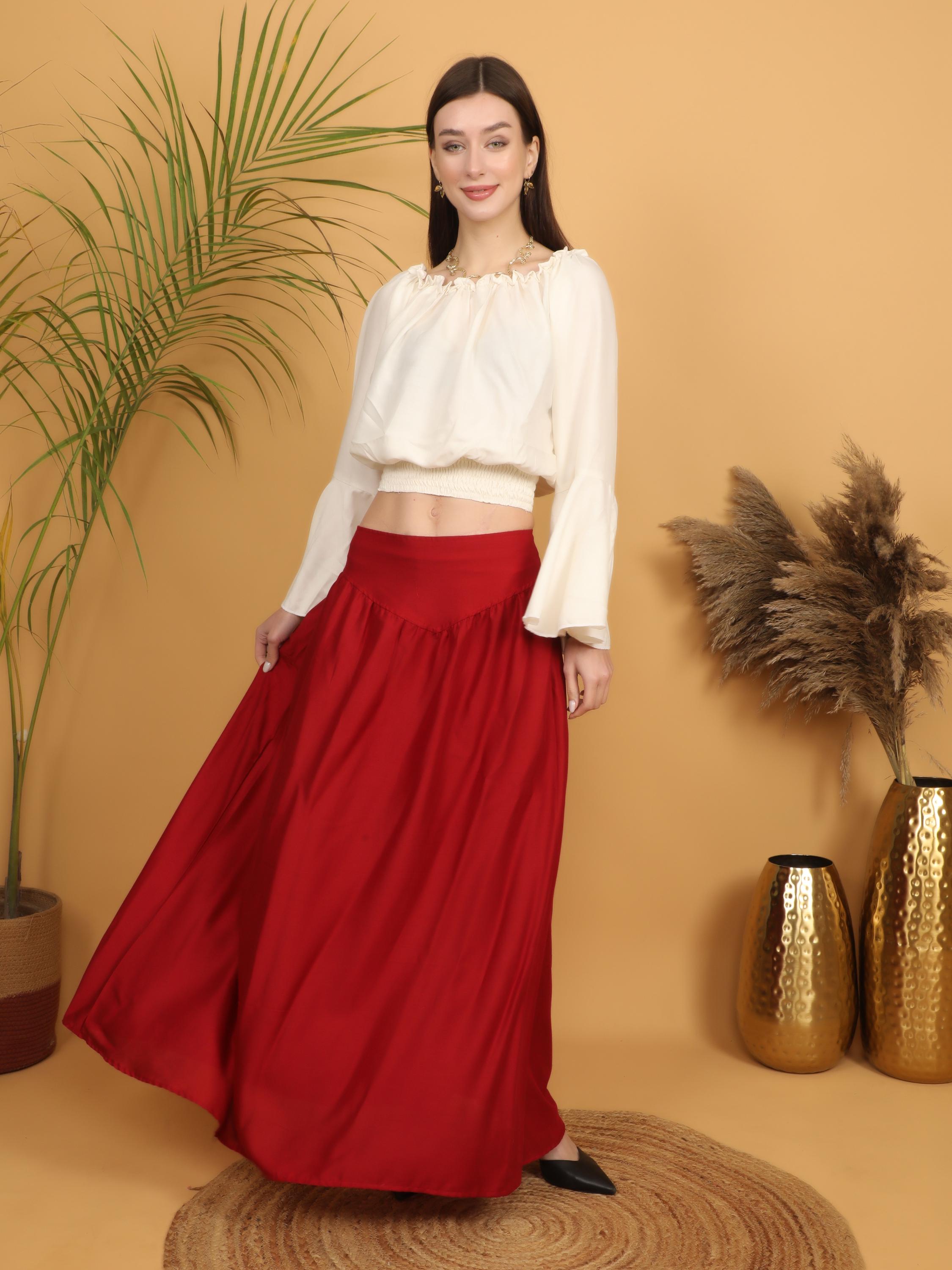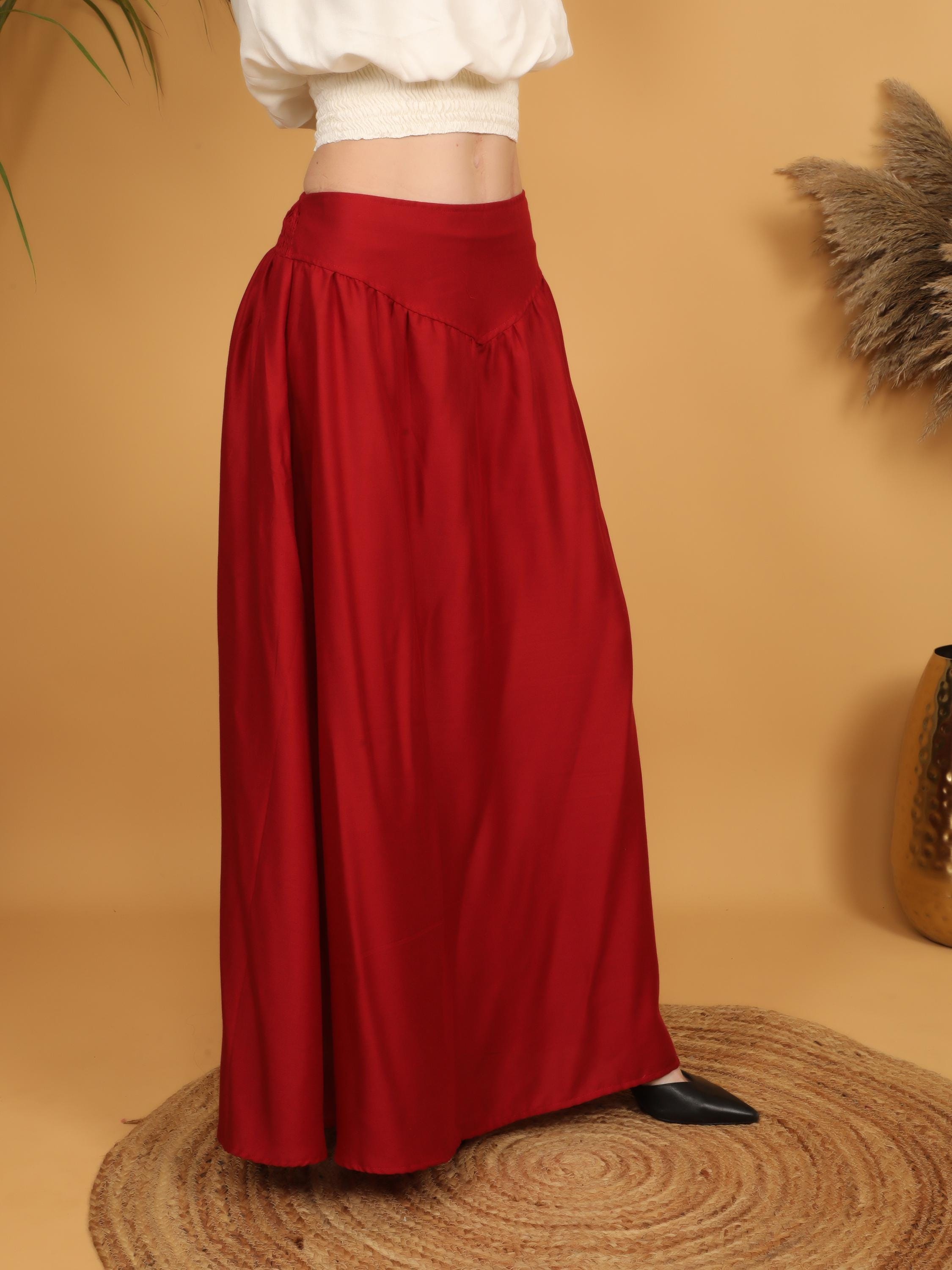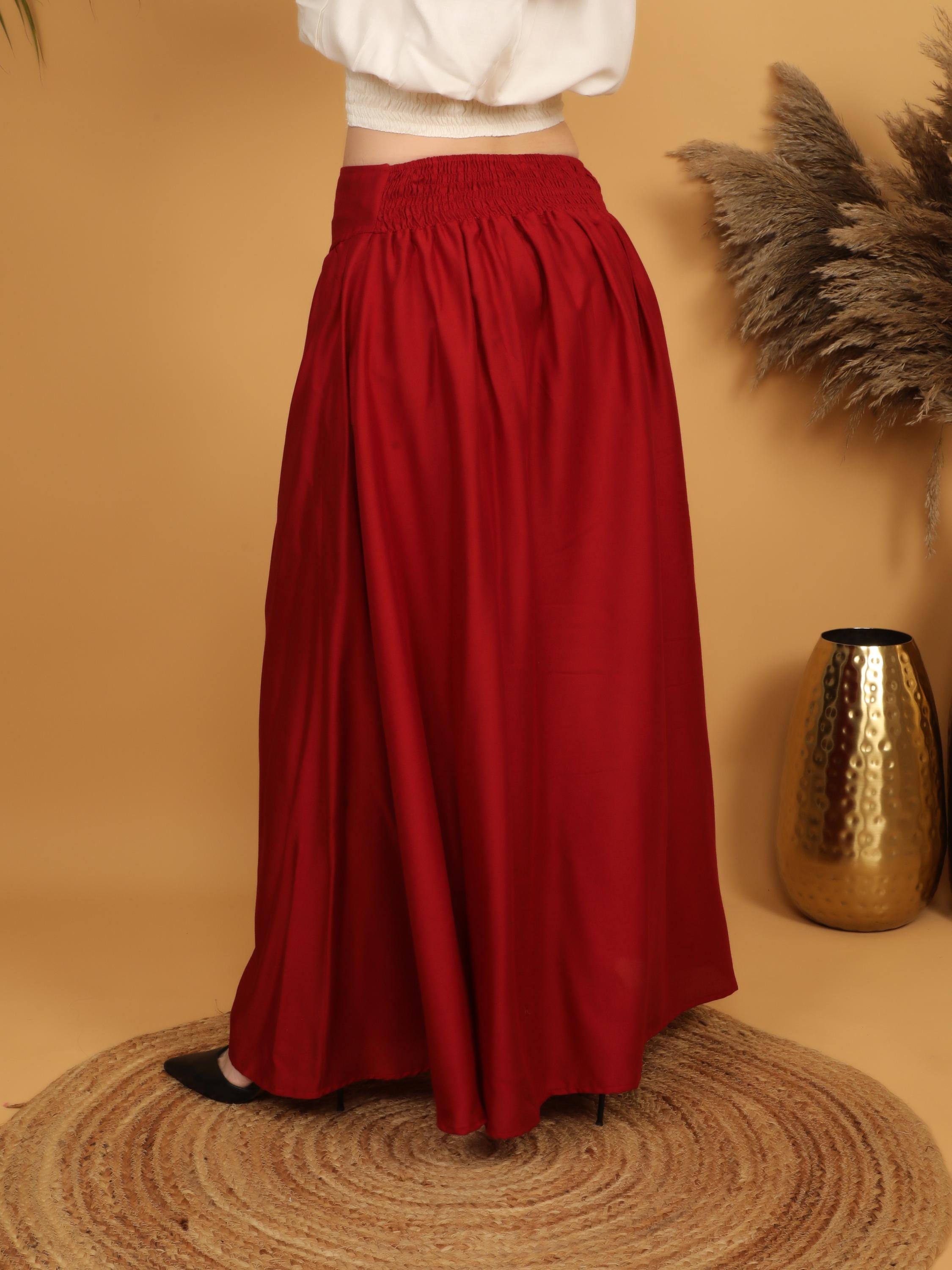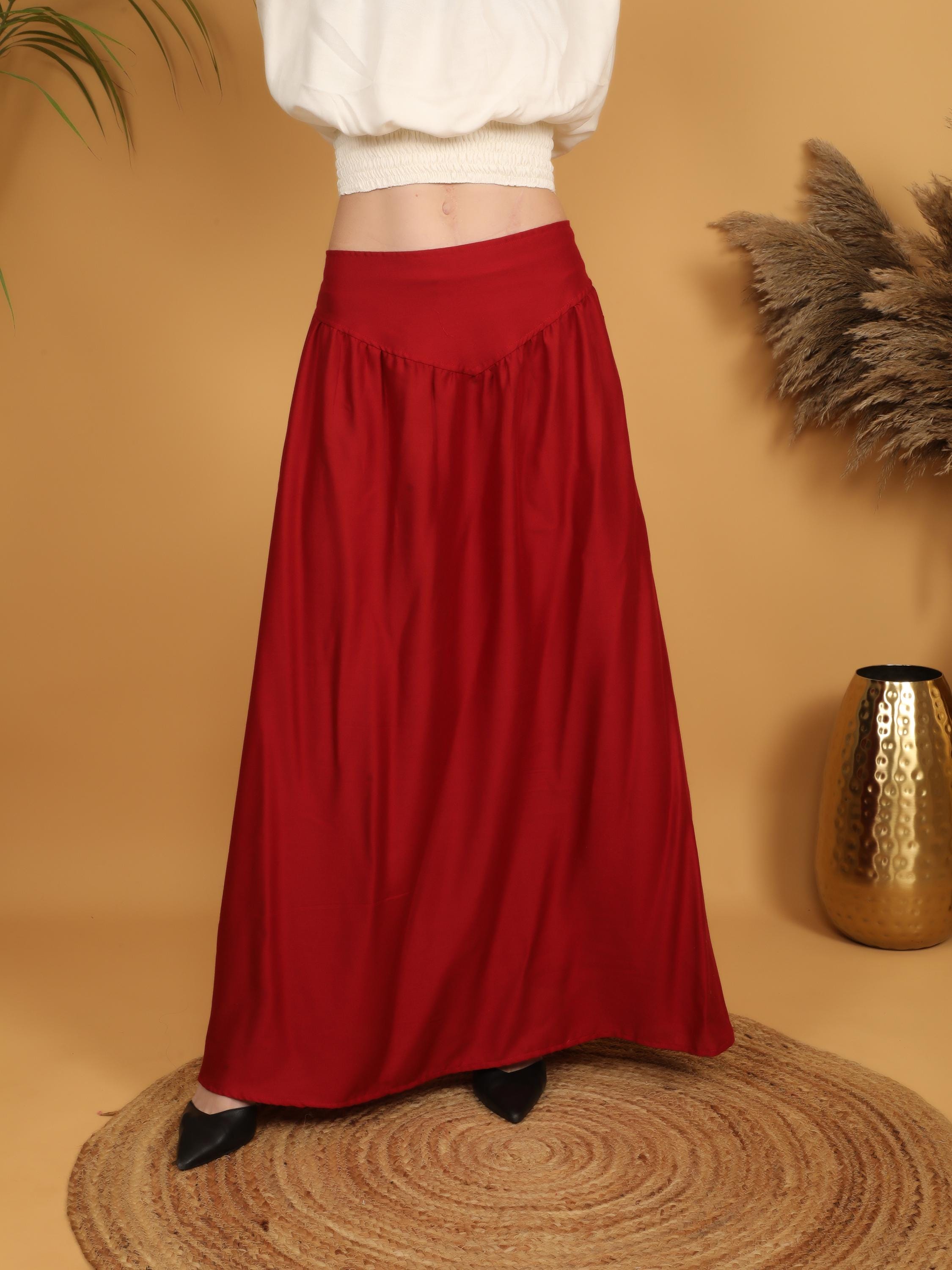 Step into a world of timeless elegance with our viscose long flowing medieval plain wine skirt.
