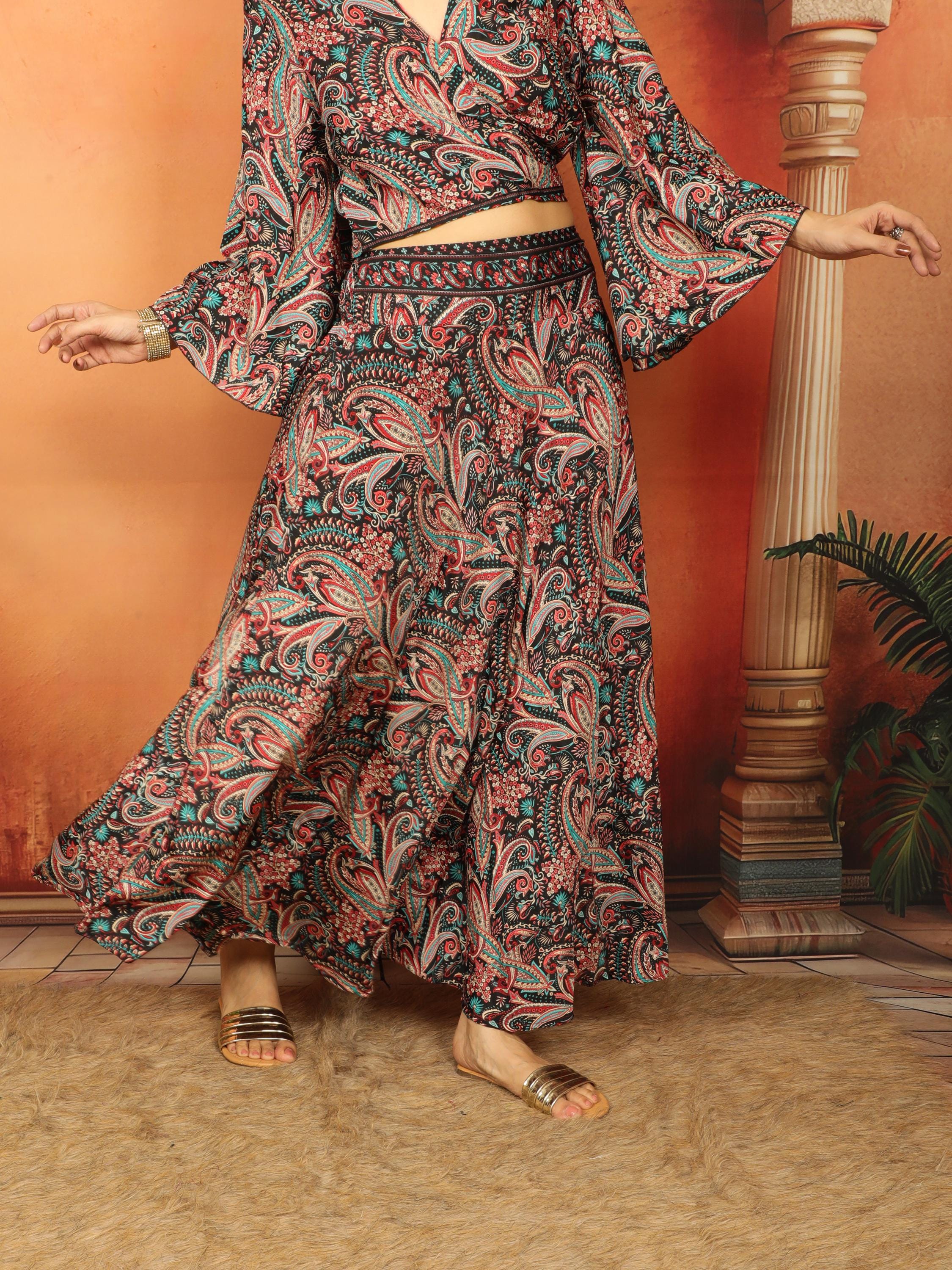 Flowing and feminine, this black bohemian style flared long skirt is a must-have for the modern bohemian.