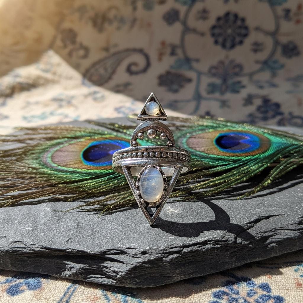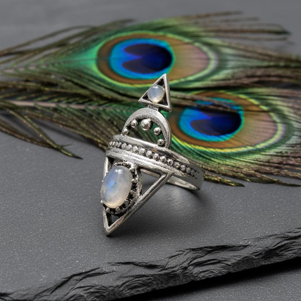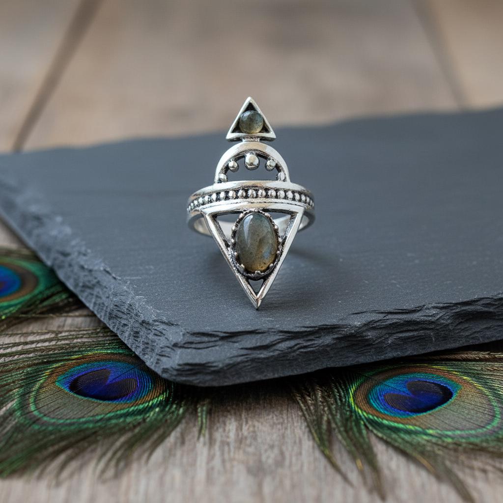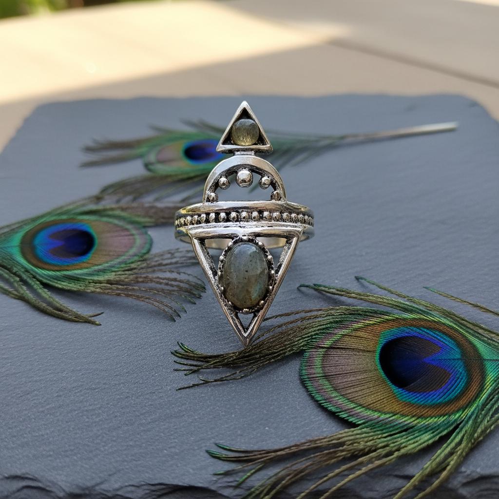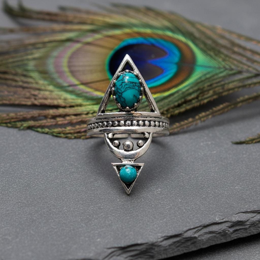 Perfect for lovers of boho, spiritual, and artisan jewelry, this ring can be worn as a statement piece or layered with other favorites.