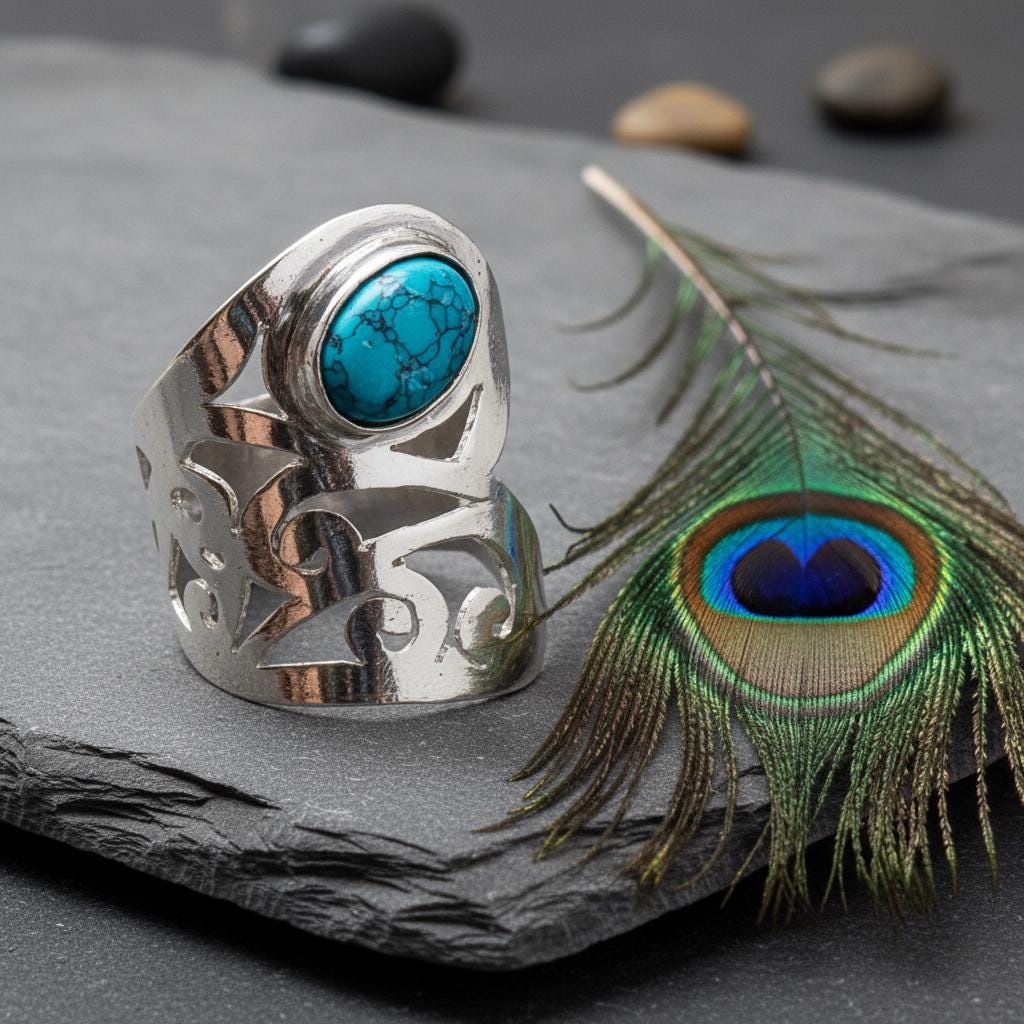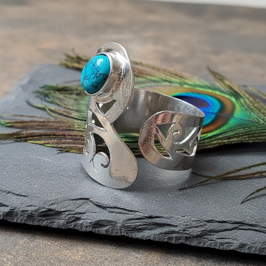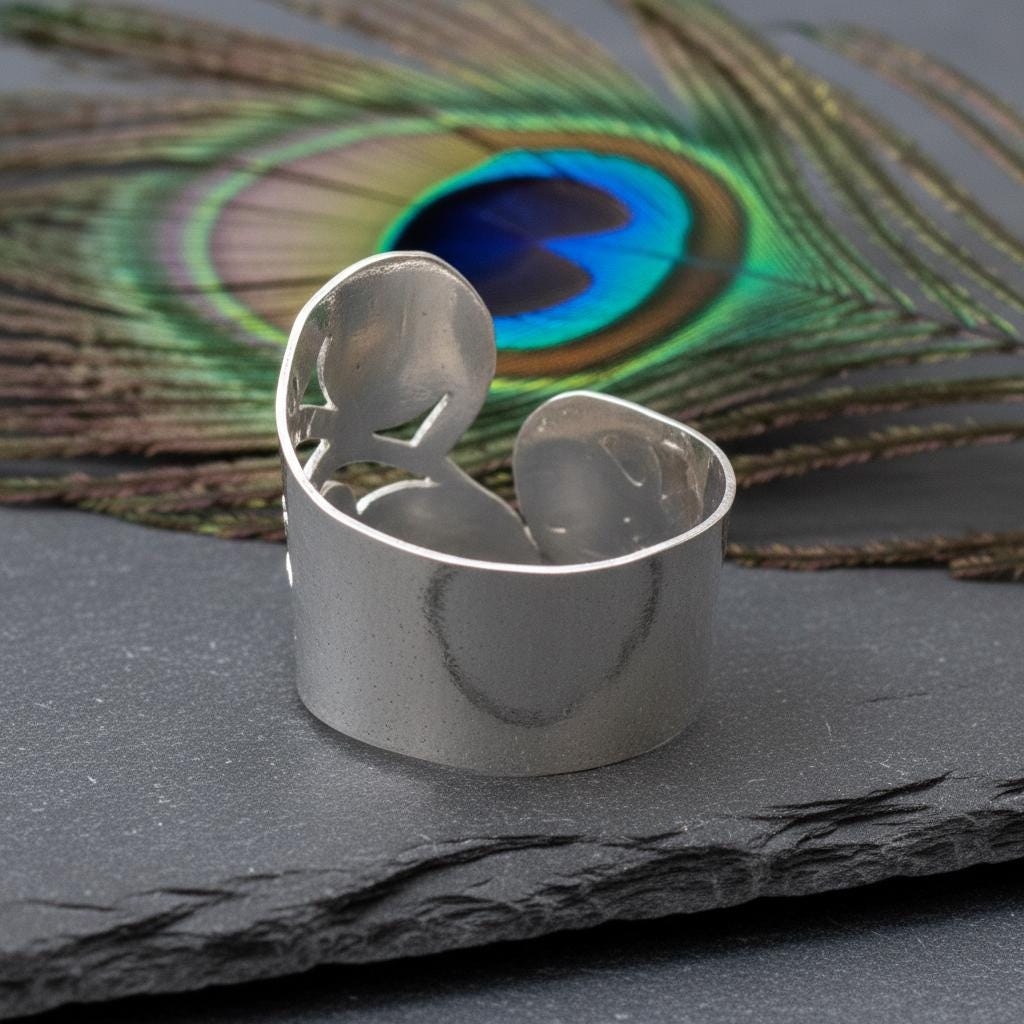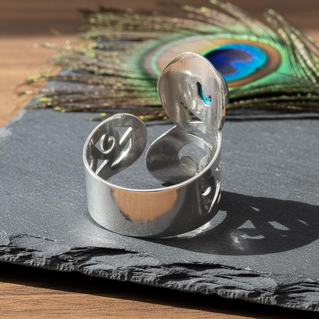 Designed with an adjustable open band, this ring offers a comfortable and flexible fit, making it ideal for everyday wear or special occasions. It is perfect for lovers of bohemian, tribal, spiritual, and statement jewelry.