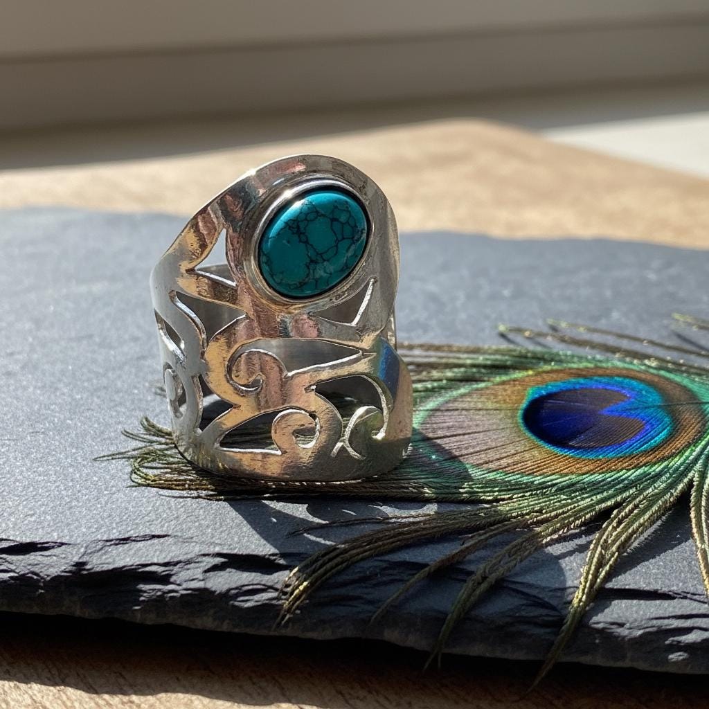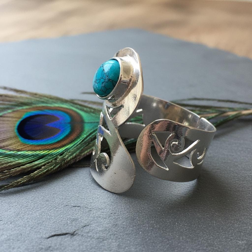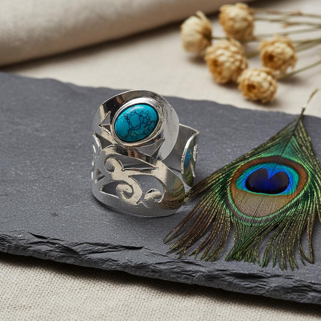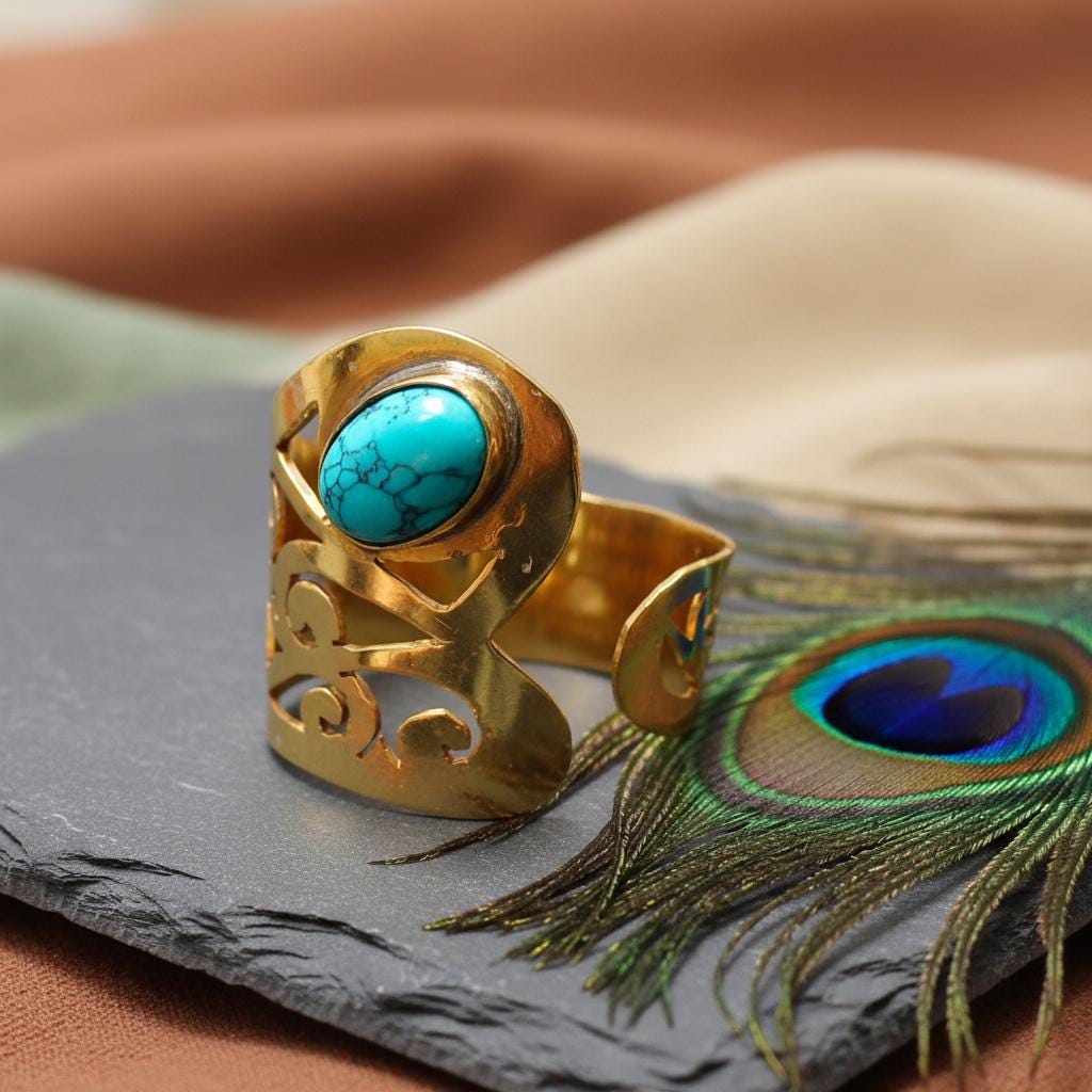 Designed with an adjustable open band, this ring offers a comfortable and flexible fit, making it ideal for everyday wear or special occasions. It is perfect for lovers of bohemian, tribal, spiritual, and statement jewelry.