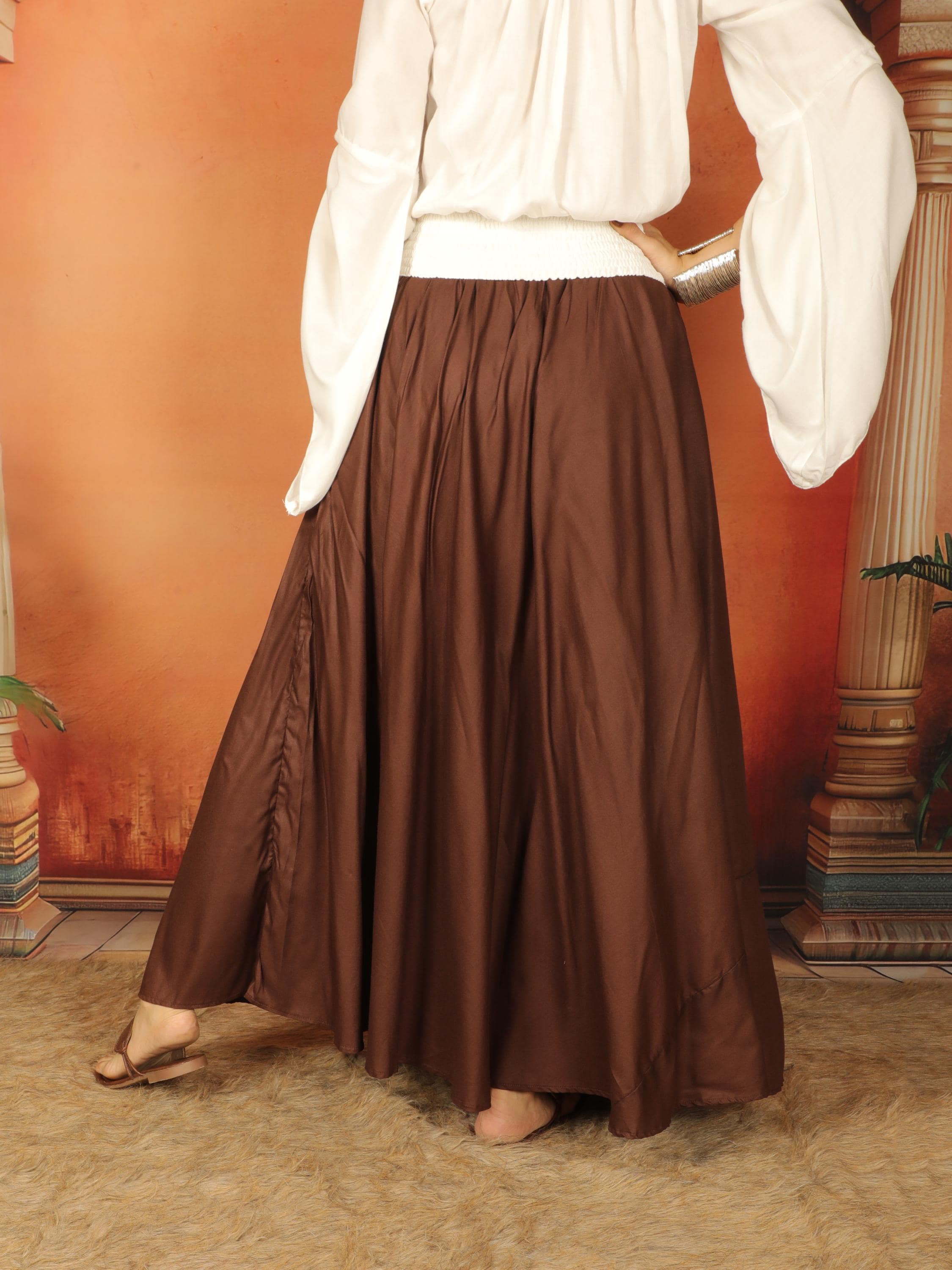 Build your perfect medieval ensemble with this versatile long viscose petticoat skirt. Designed as a foundational layering piece, this skirt features a comfortable elasticated belt, ensuring a customizable and secure fit.