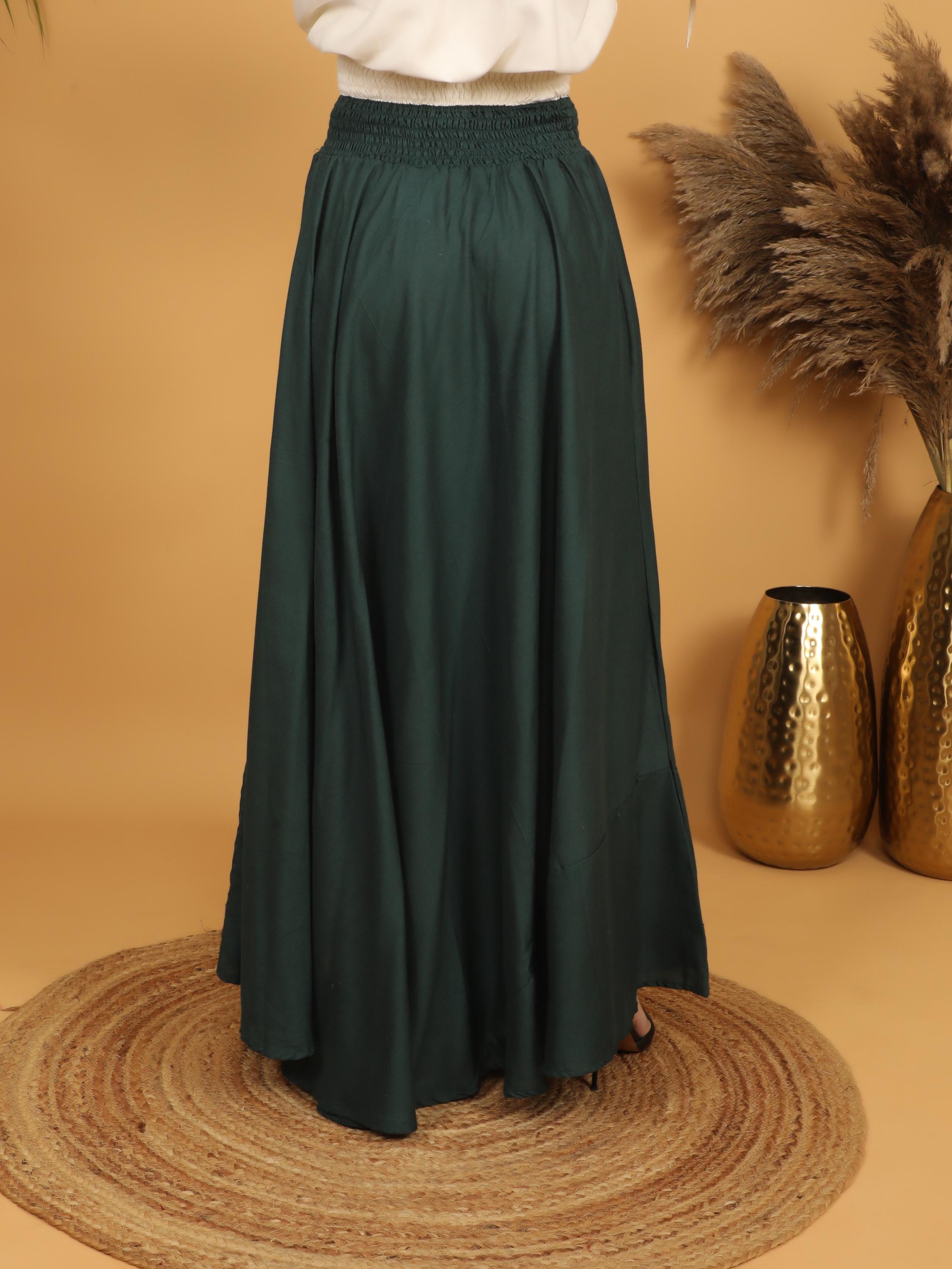The rich dark green hue adds a touch of sophisticated drama, making it versatile enough for both everyday wear and special occasions.