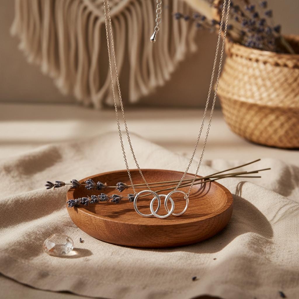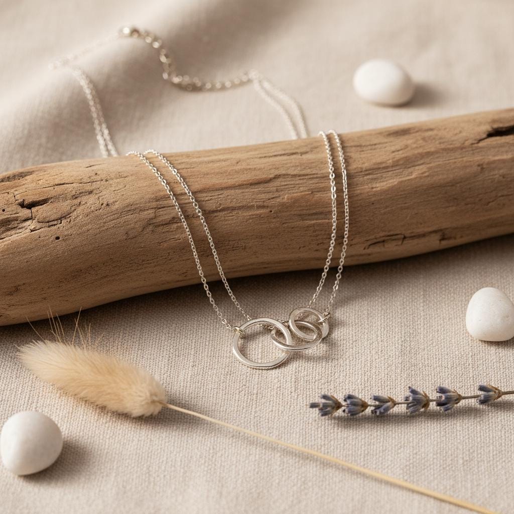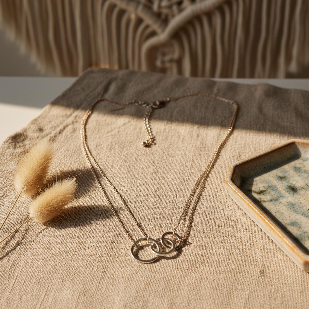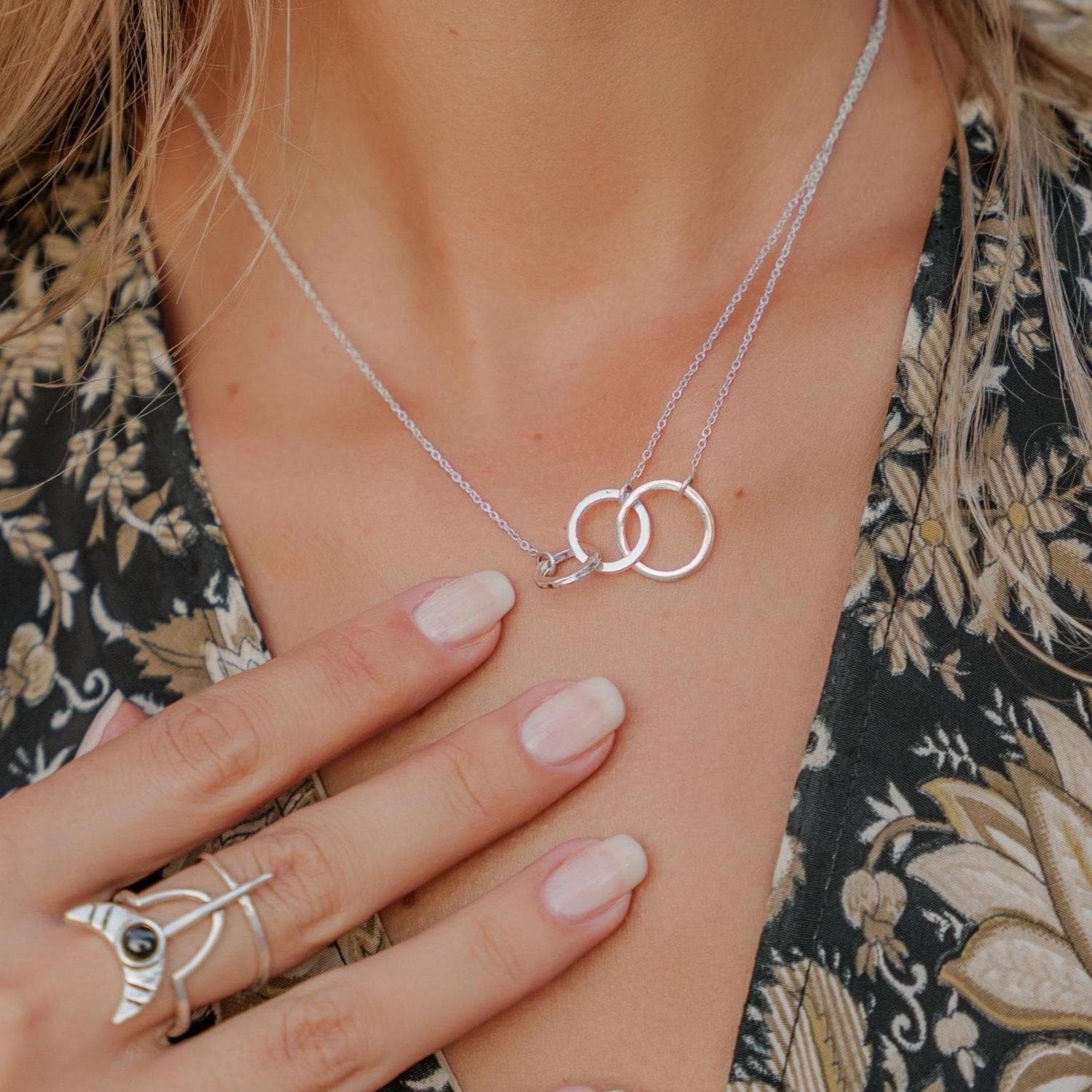 This minimalist interlocking circle necklace is a timeless piece designed for modern, effortless style. Featuring two delicately linked rings suspended on a fine chain, this necklace symbolizes connection, balance, and unity, making it both meaningful and elegant.