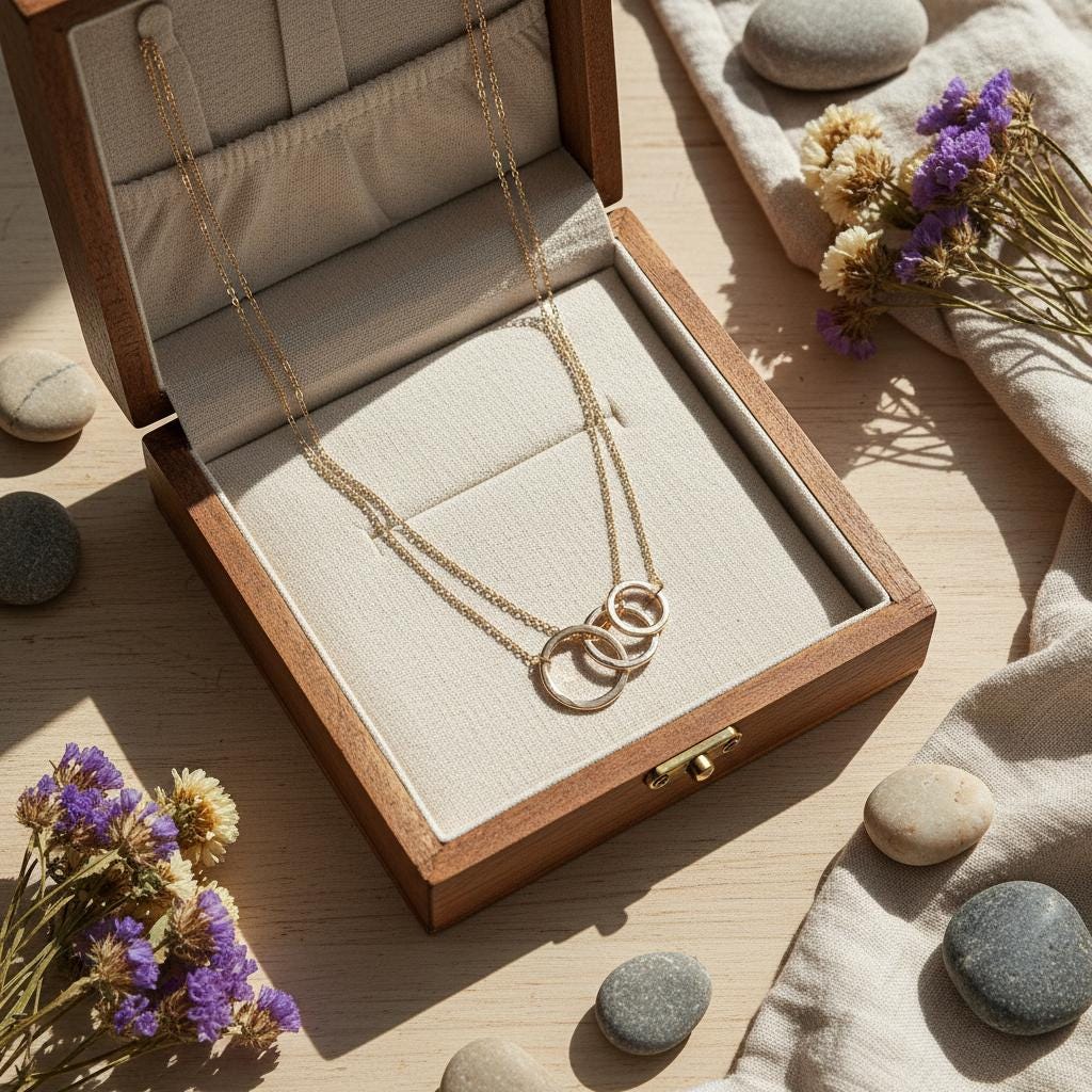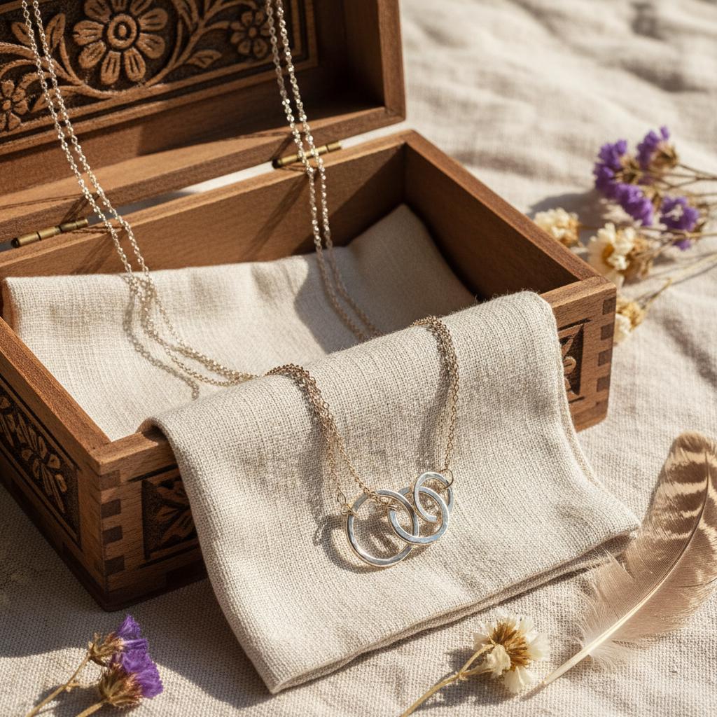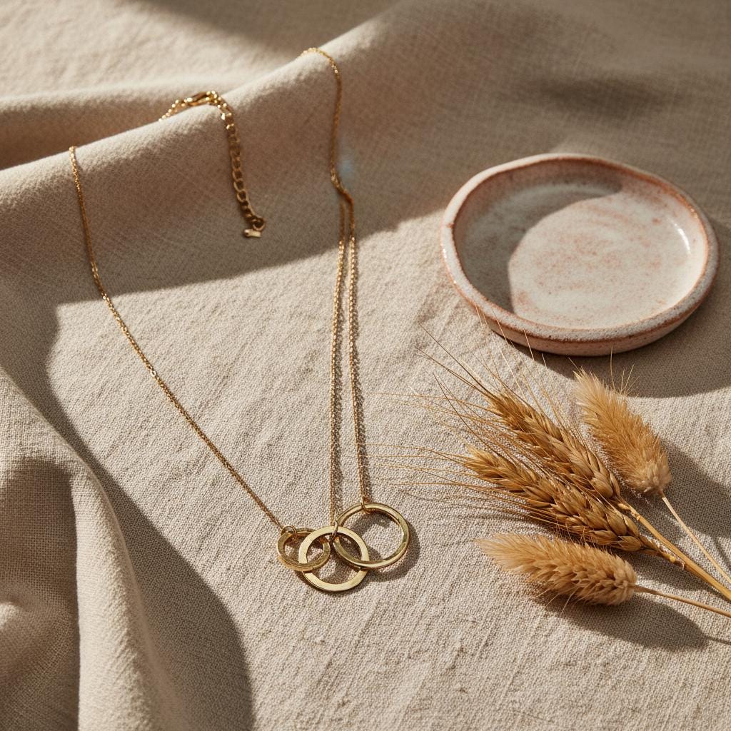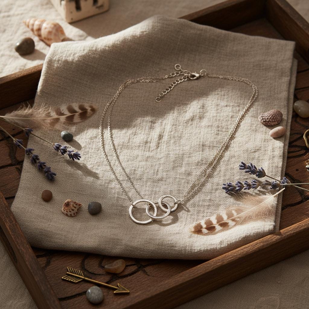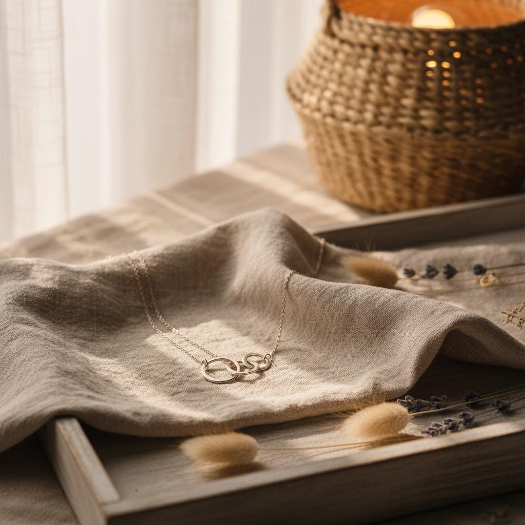 This minimalist interlocking circle necklace is a timeless piece designed for modern, effortless style. Featuring two delicately linked rings suspended on a fine chain, this necklace symbolizes connection, balance, and unity, making it both meaningful and elegant.
