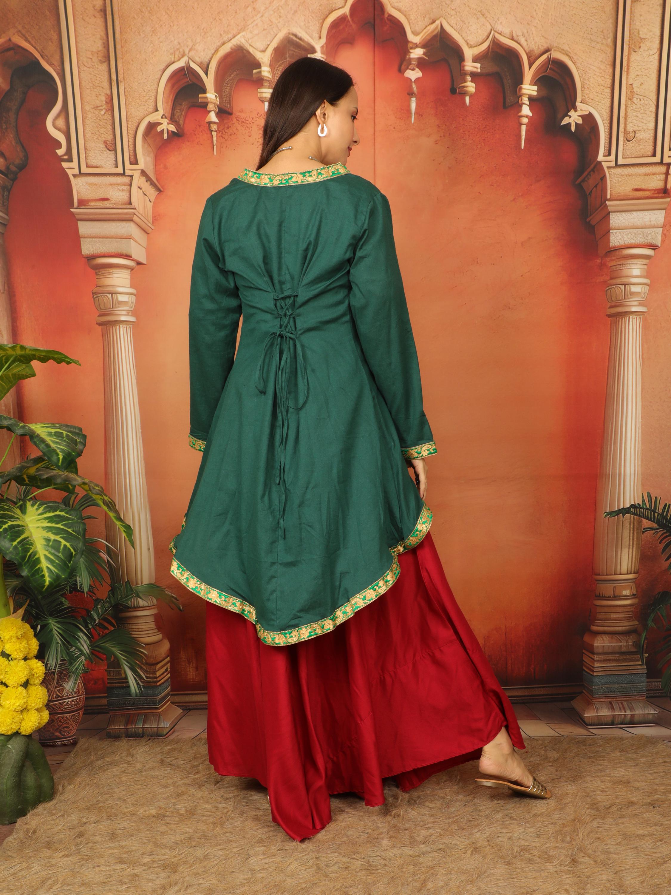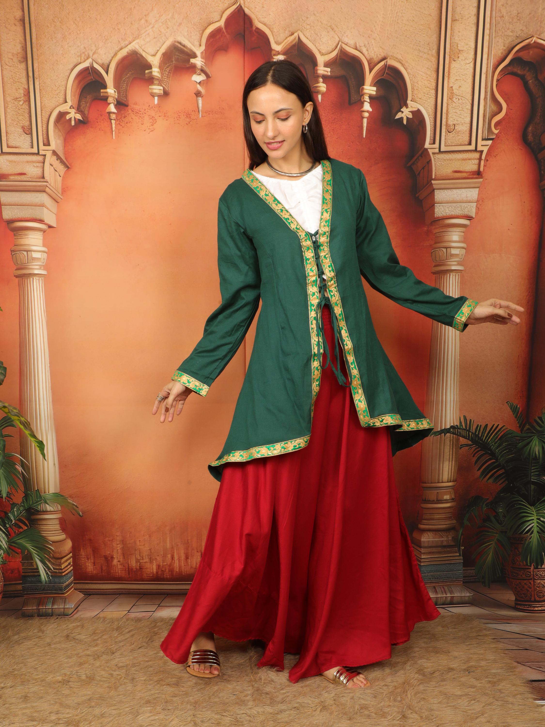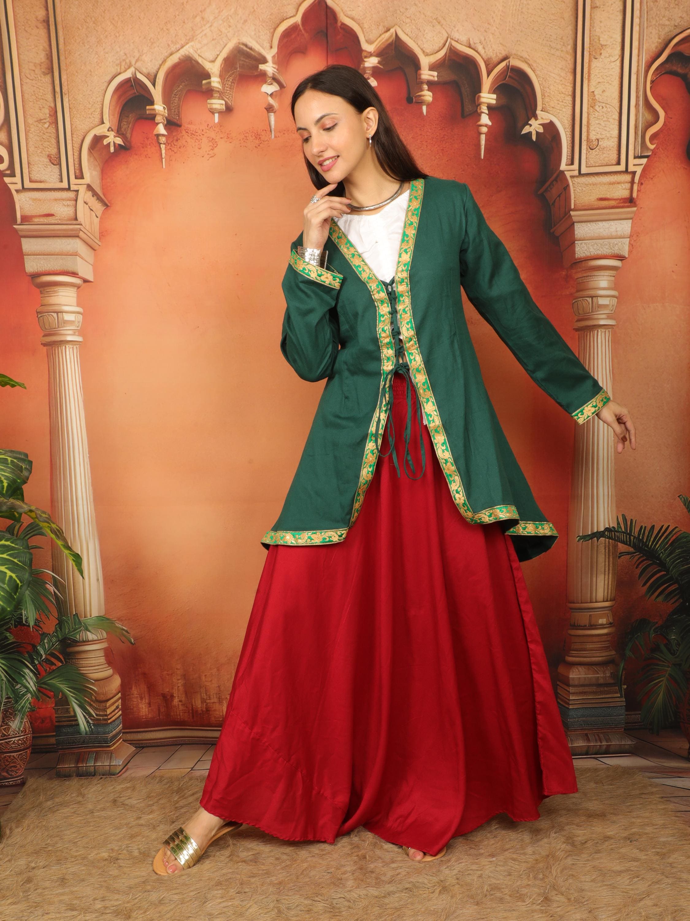 This unique Women's Long Cosplay Vest features a flattering, flared silhouette, crafted from rich dark green-colored cotton.
