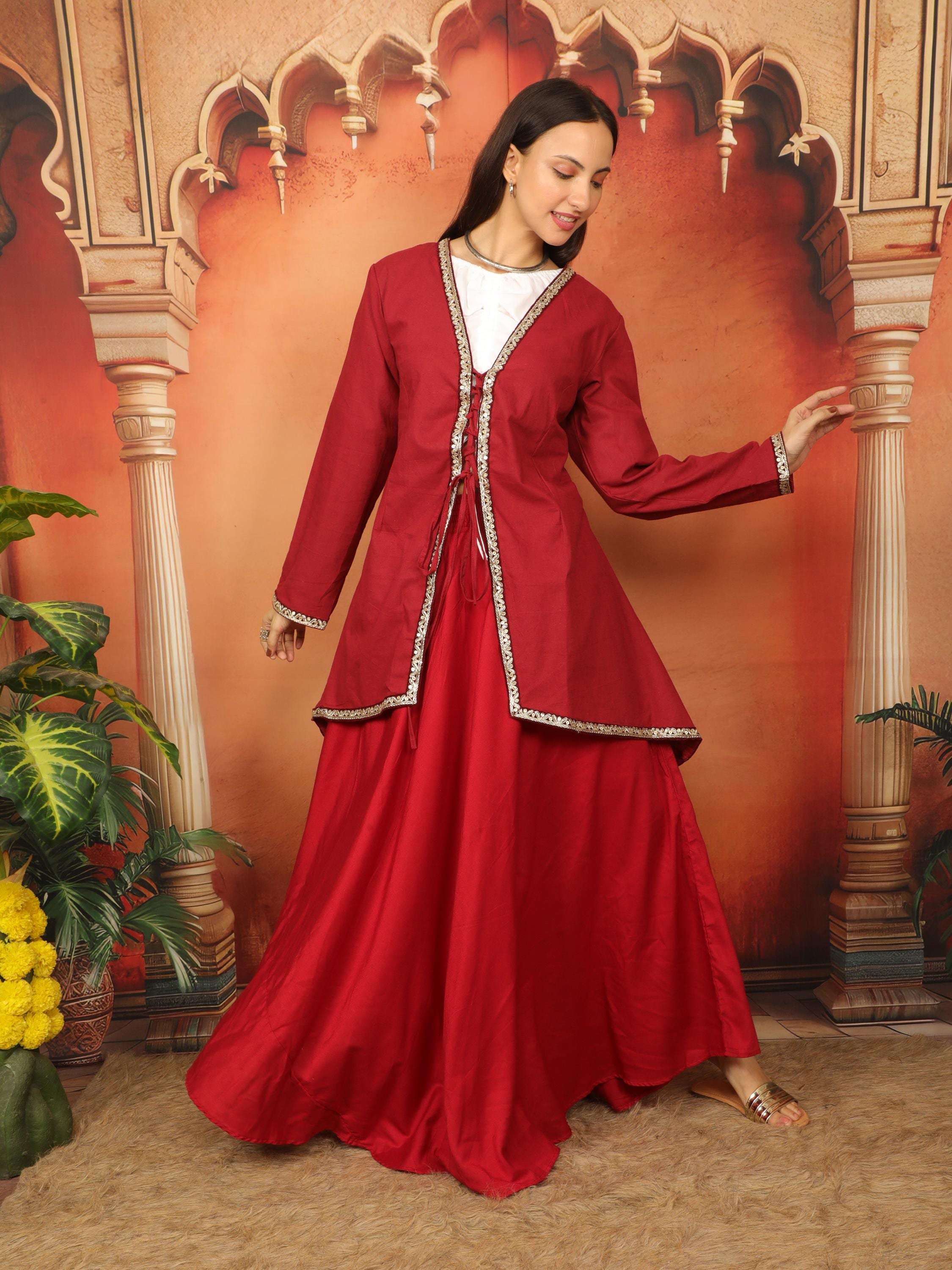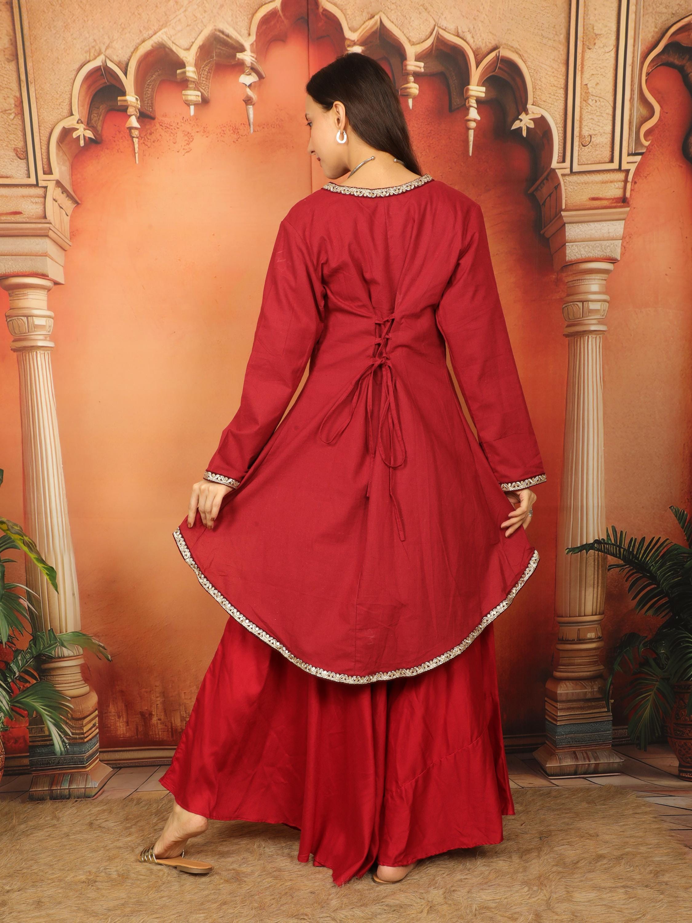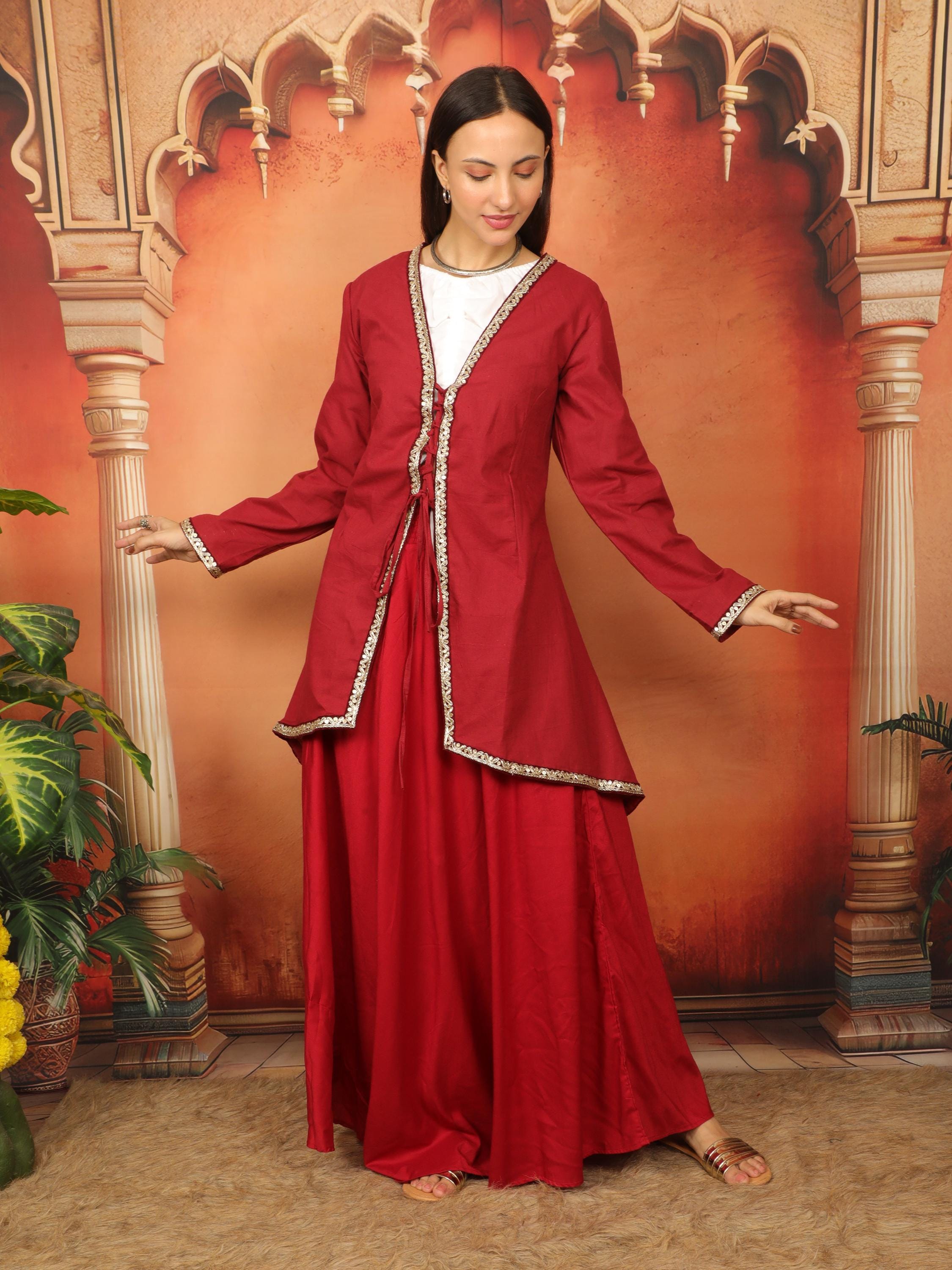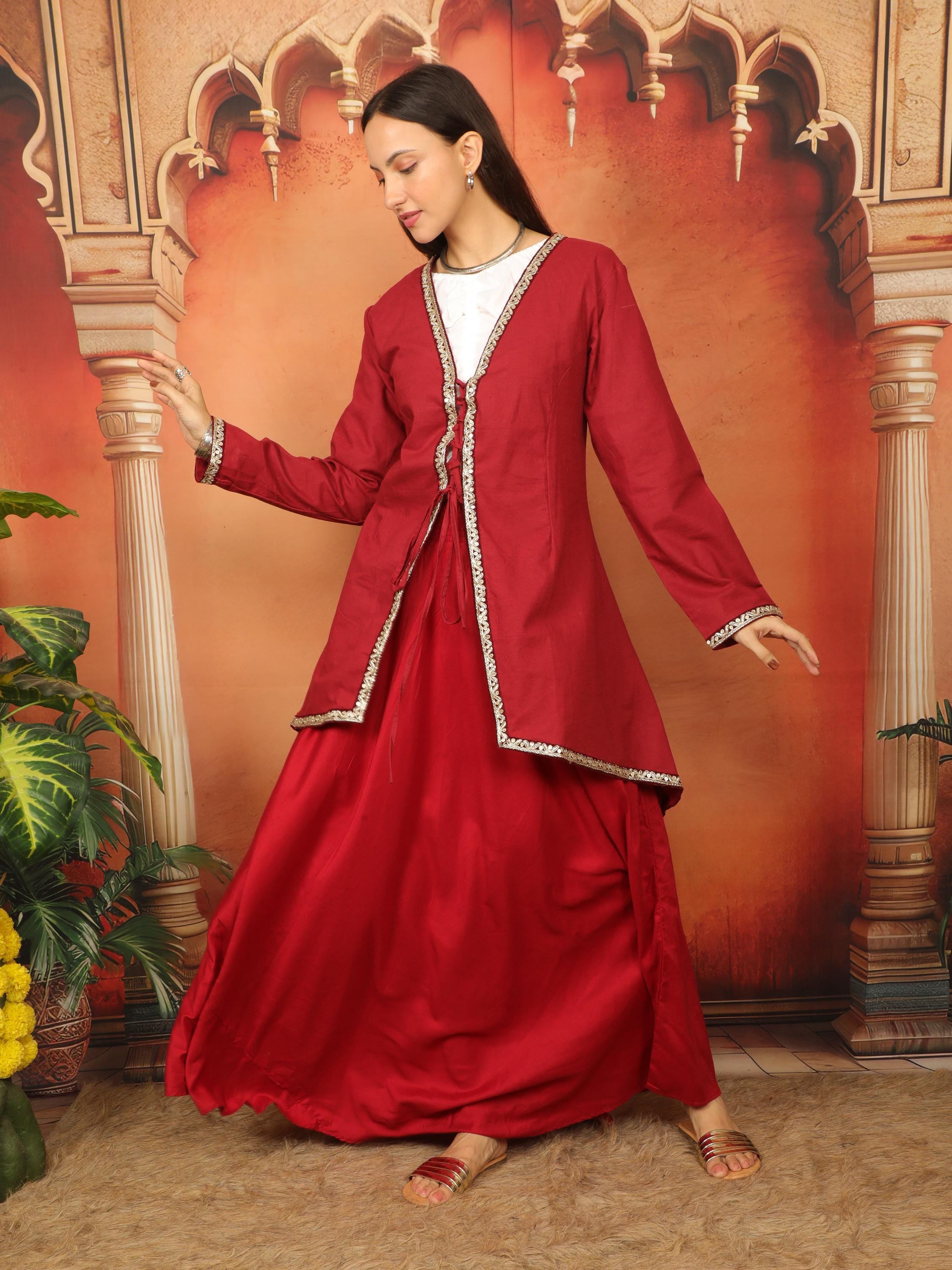 Embrace a captivating fusion of cultures with this exquisite Medieval Oriental Wine Cotton Flaired Lace-Up Tunic.