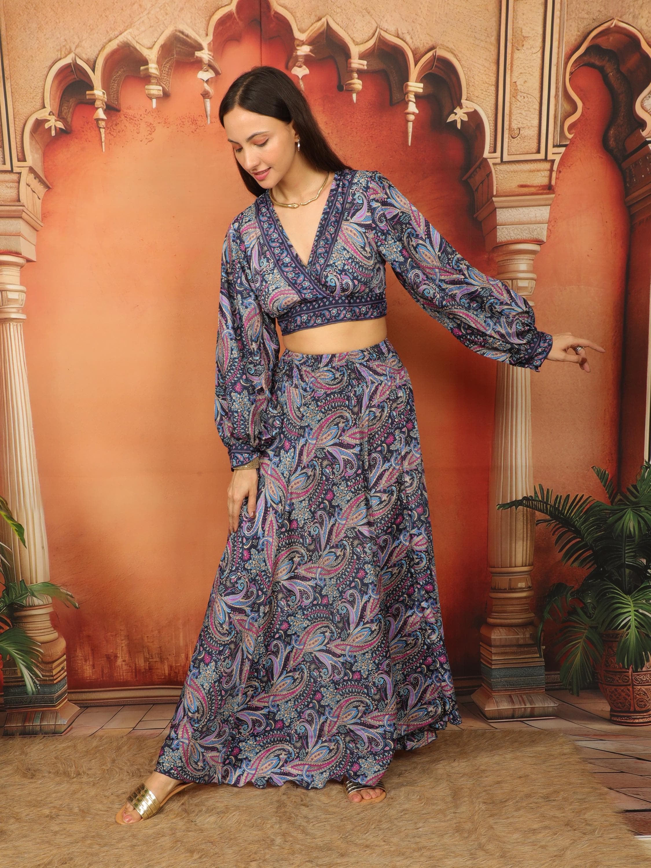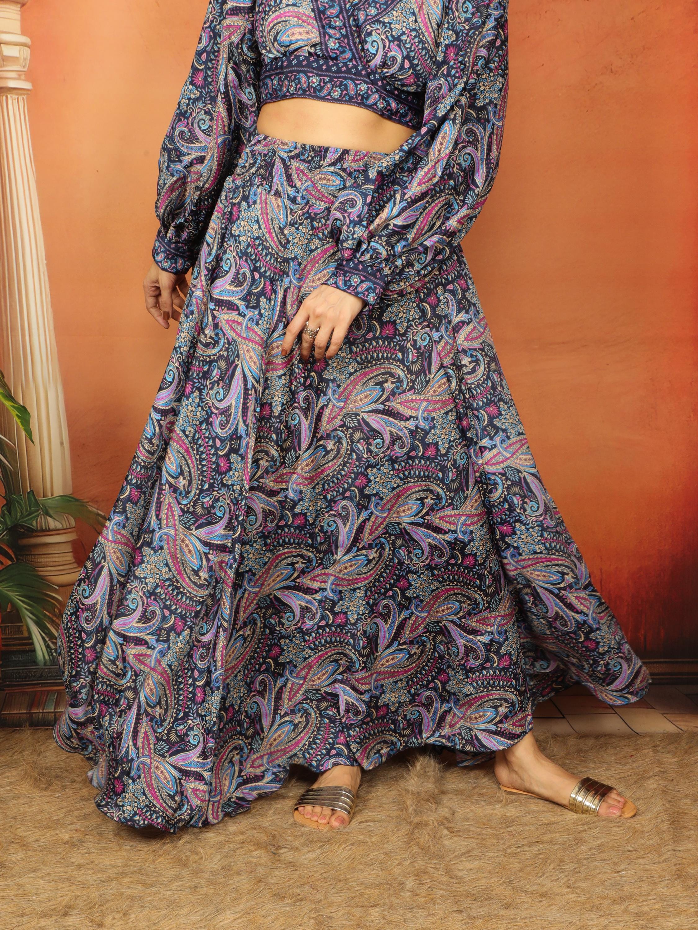 Experience ultimate comfort and style with our Paisley Print Night Blue and Purple Long Bohemian Skirt.
