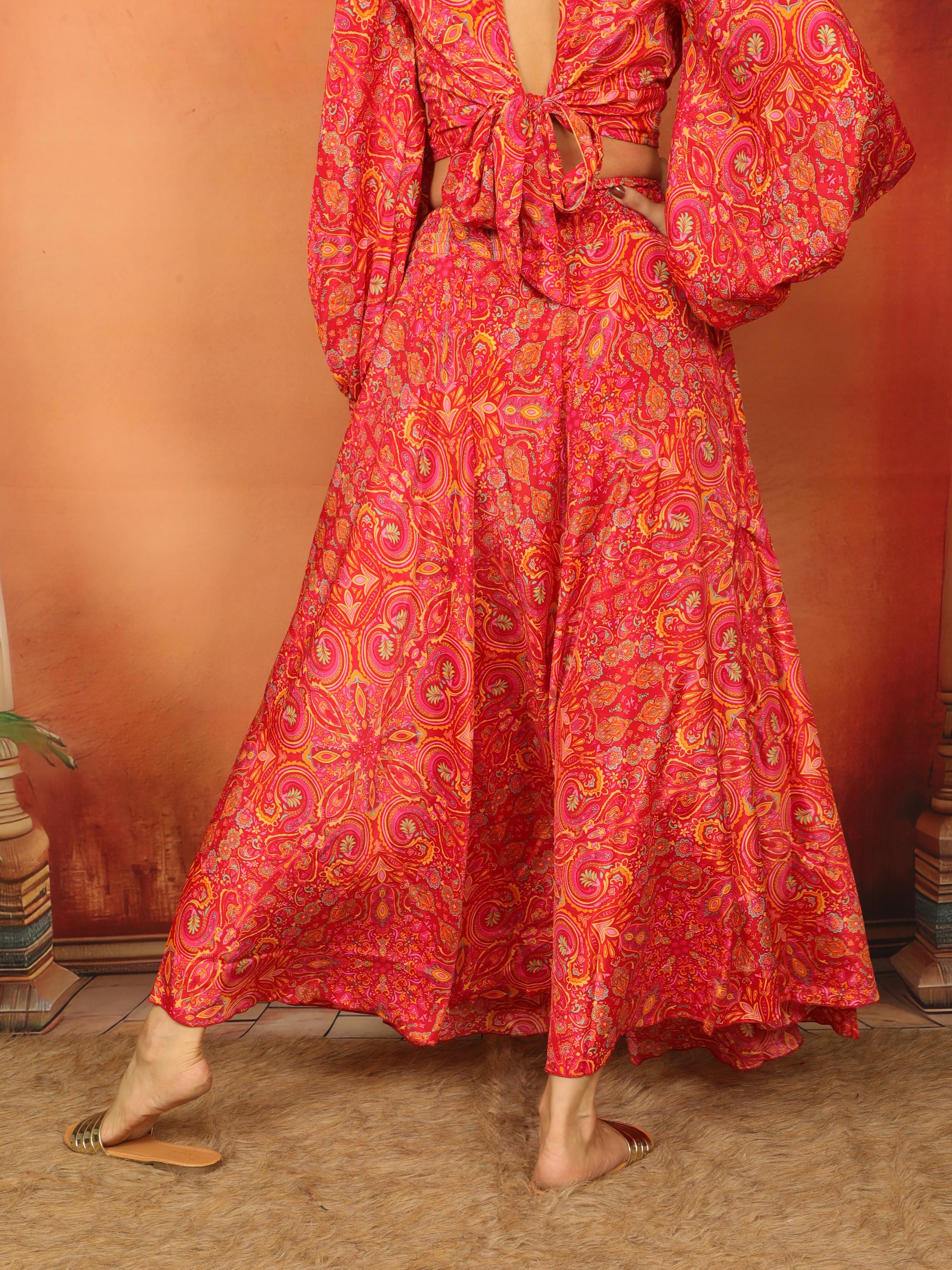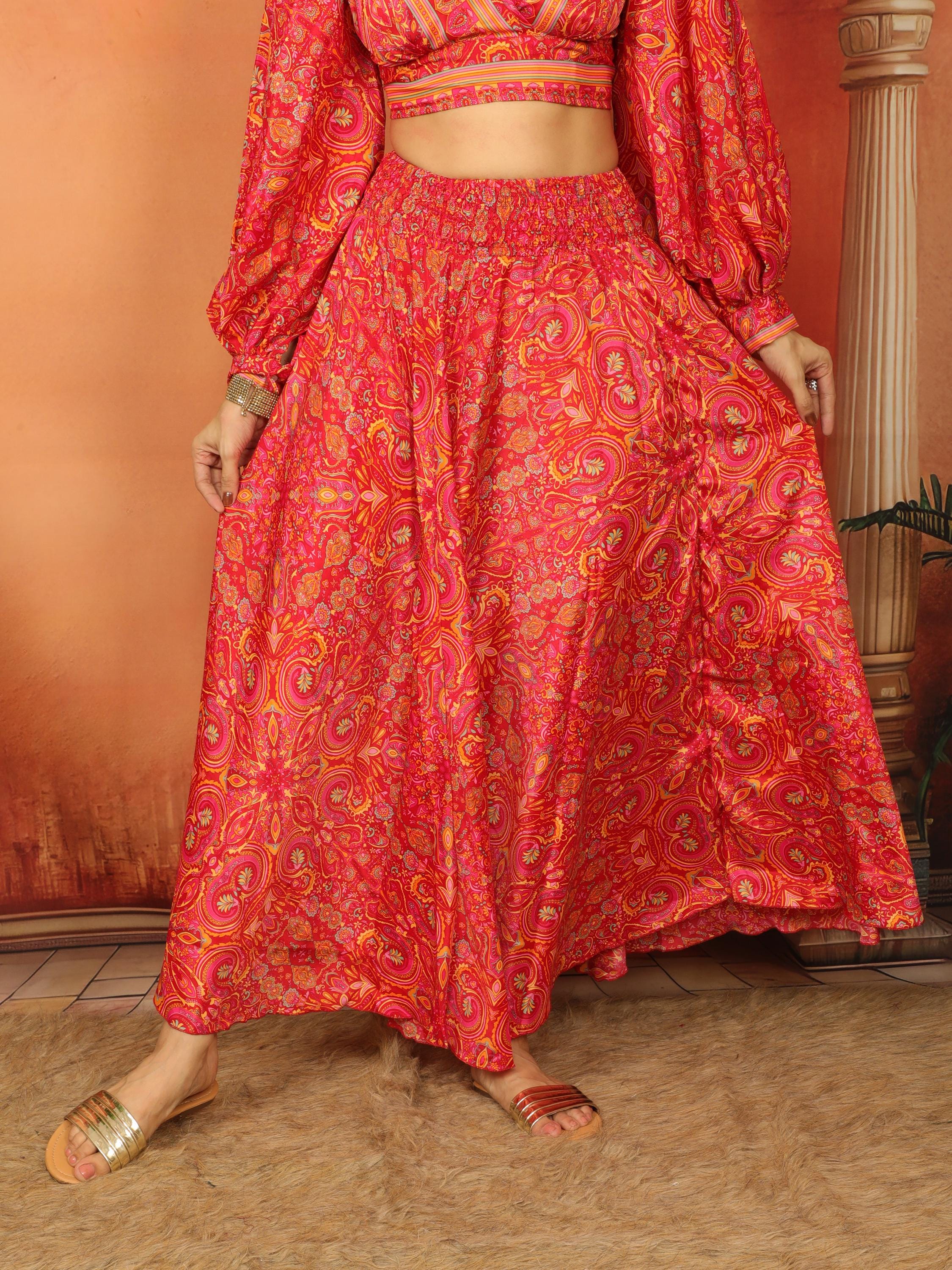 Experience ultimate comfort and style with our Paisley Red Long Bohemian Skirt.
