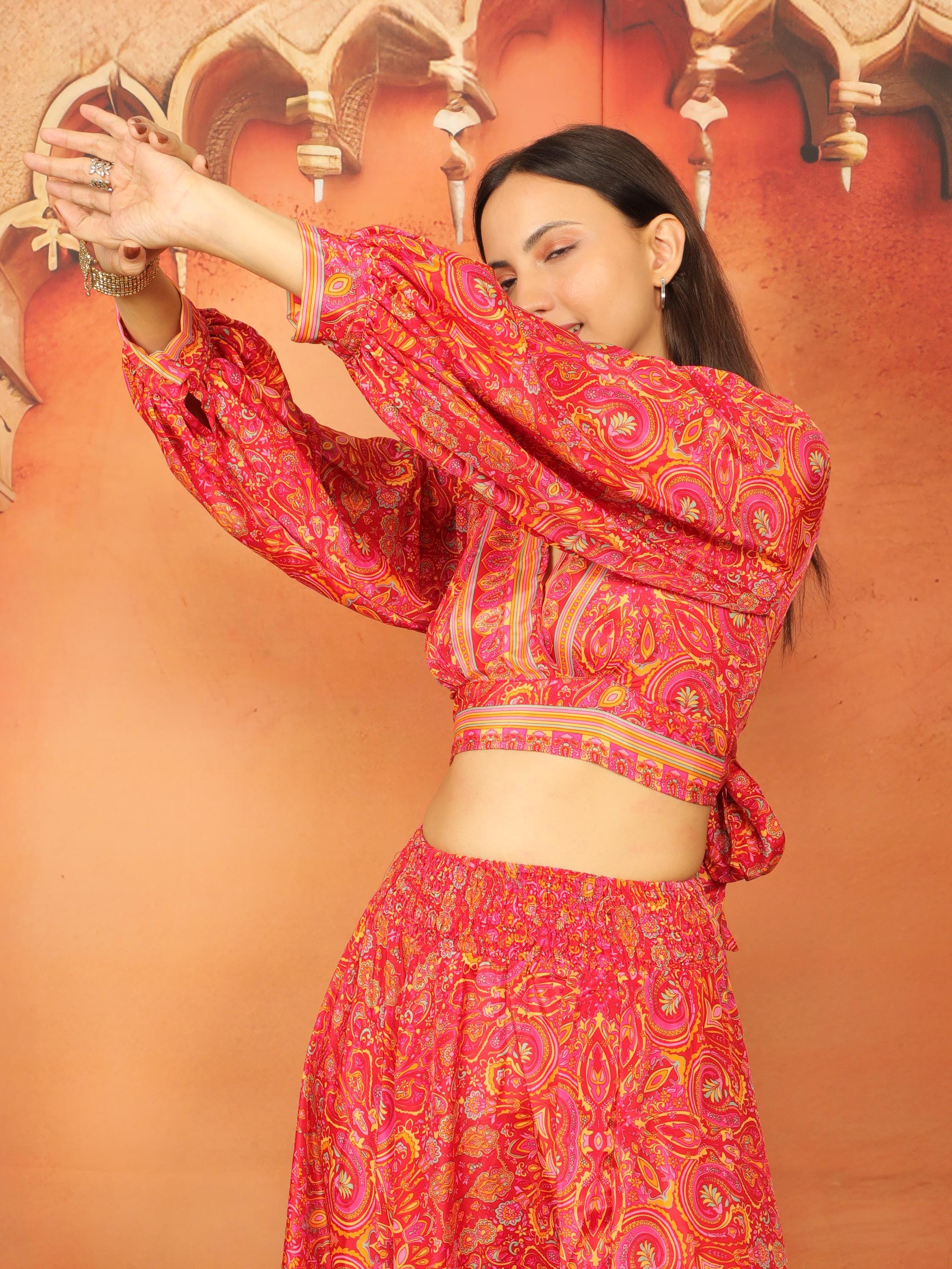 Turn heads in our stunning red Boho Crop Top. Crafted from lightweight polyester, this top boasts a captivating Paisley Print that exudes bohemian charm.