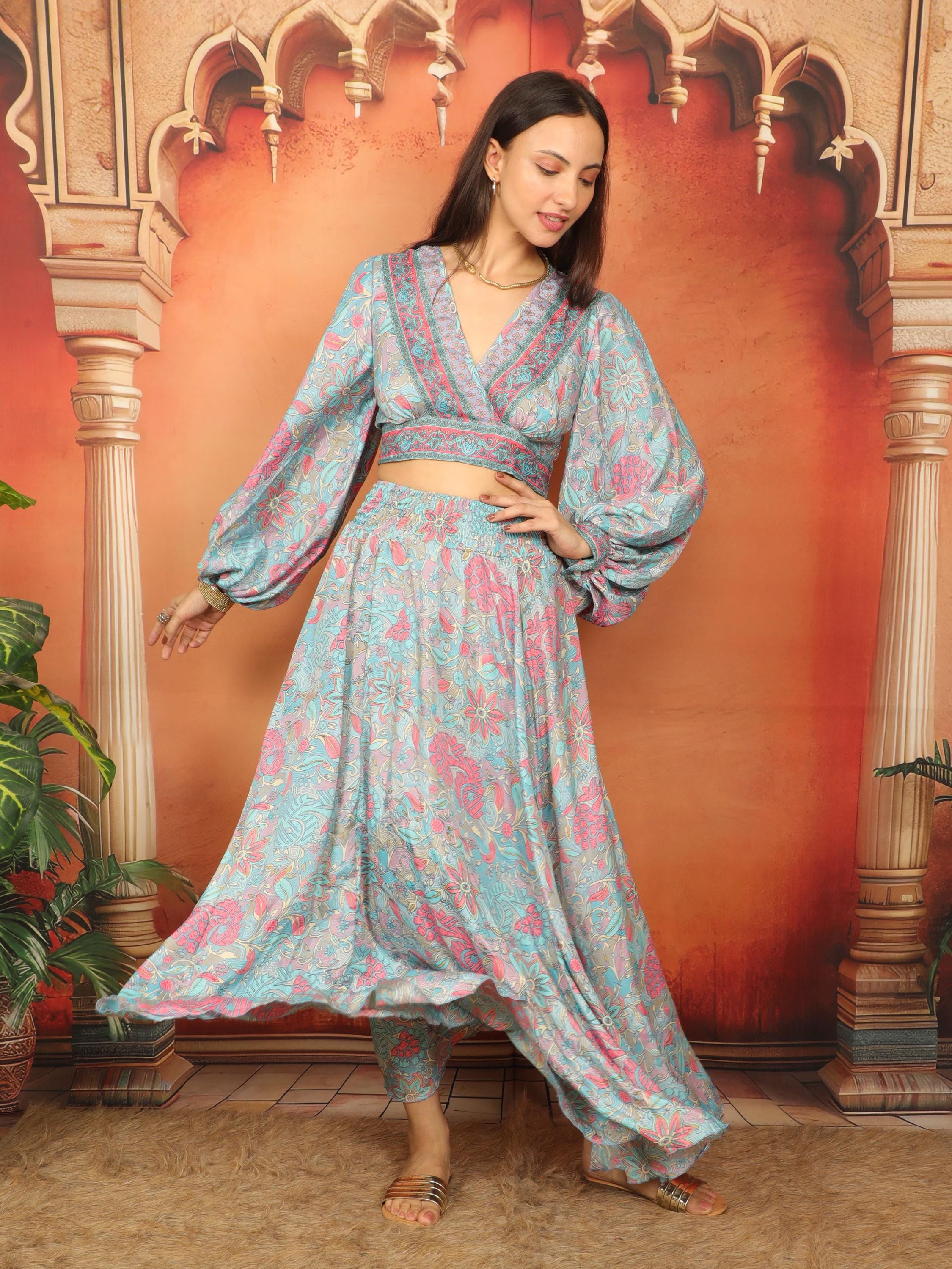 Turn heads in our stunning light blue Boho Crop Top. Crafted from lightweight polyester, this top boasts a captivating floral Print that exudes bohemian charm.