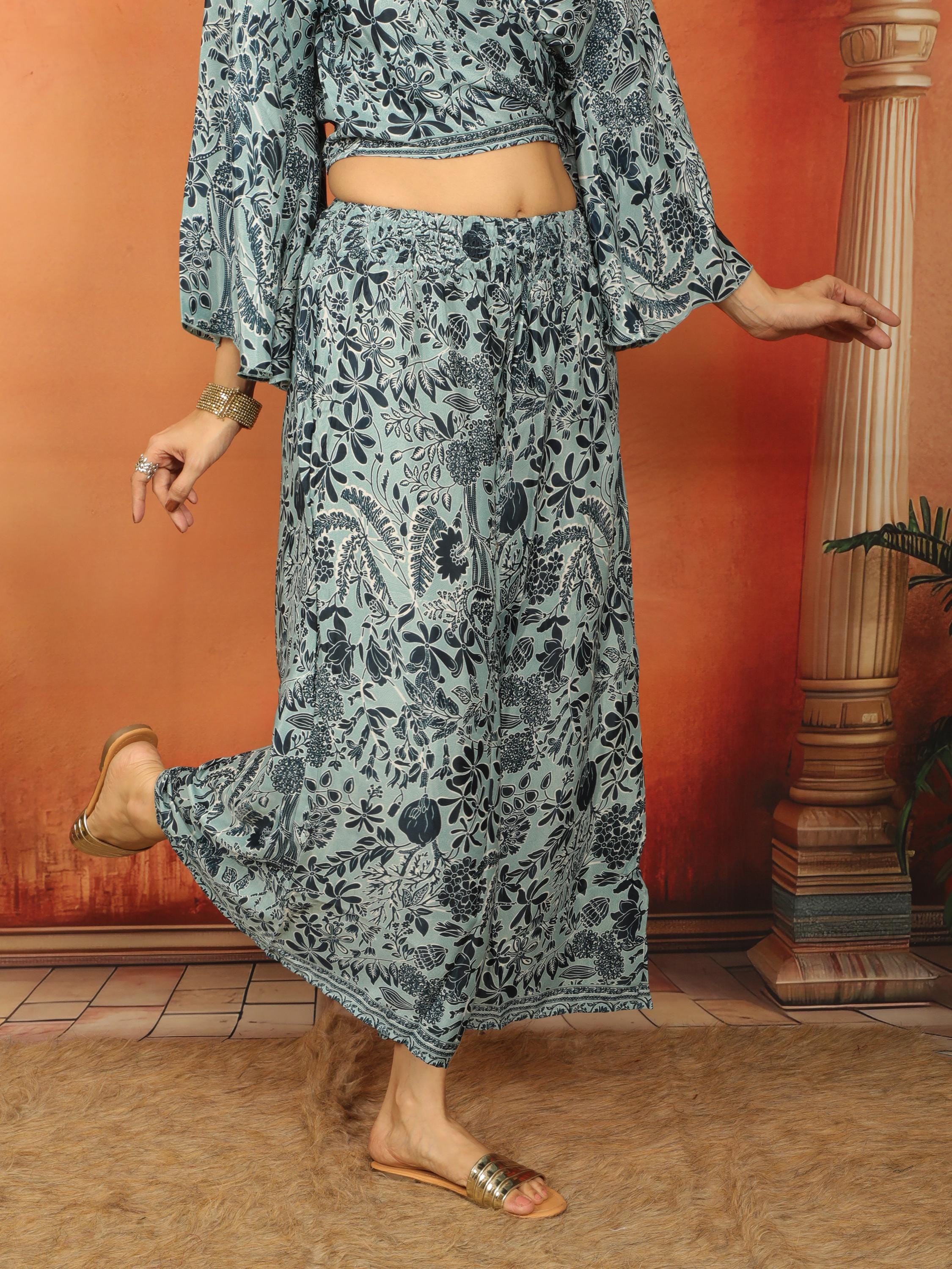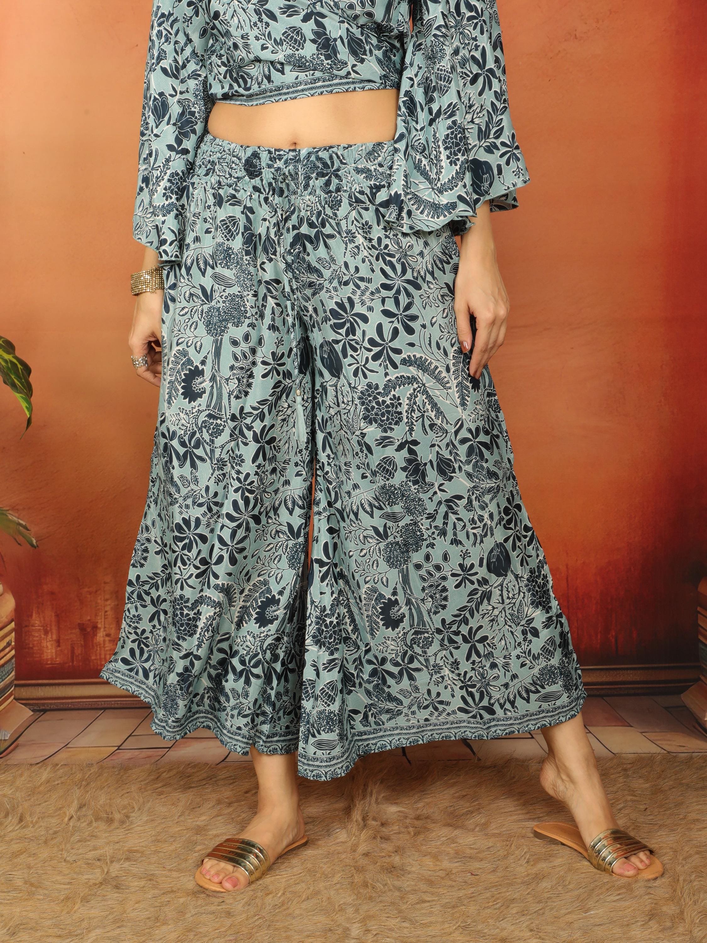 Step into spring with these enchanting Celadon Blue Wide Bohemian Pants.