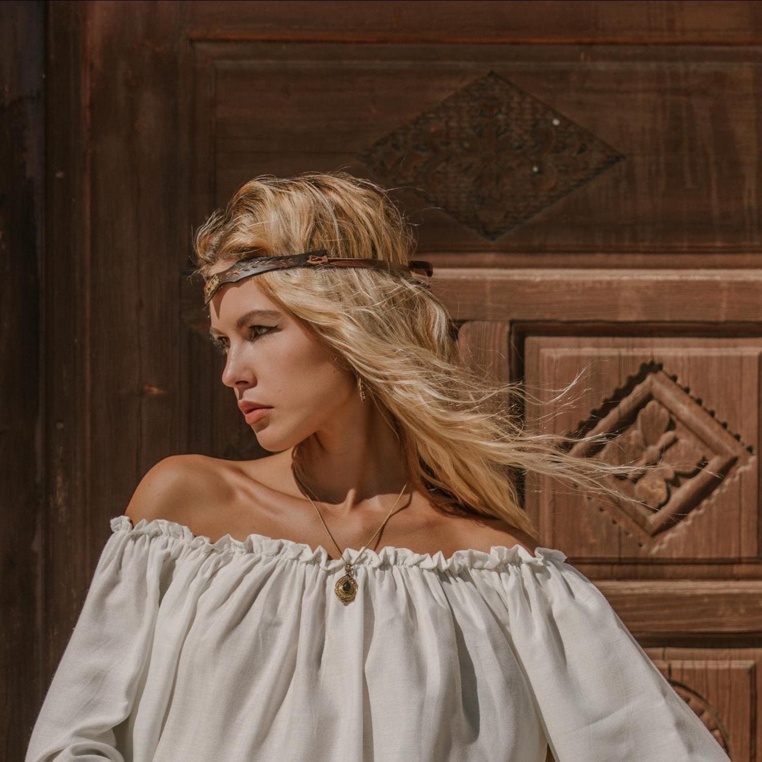 Enter the realms of fantasy and mythology with our exquisite Viking Leather Gemstone Tiara.