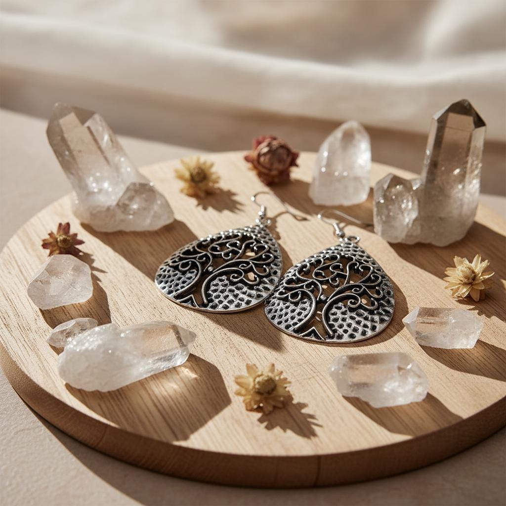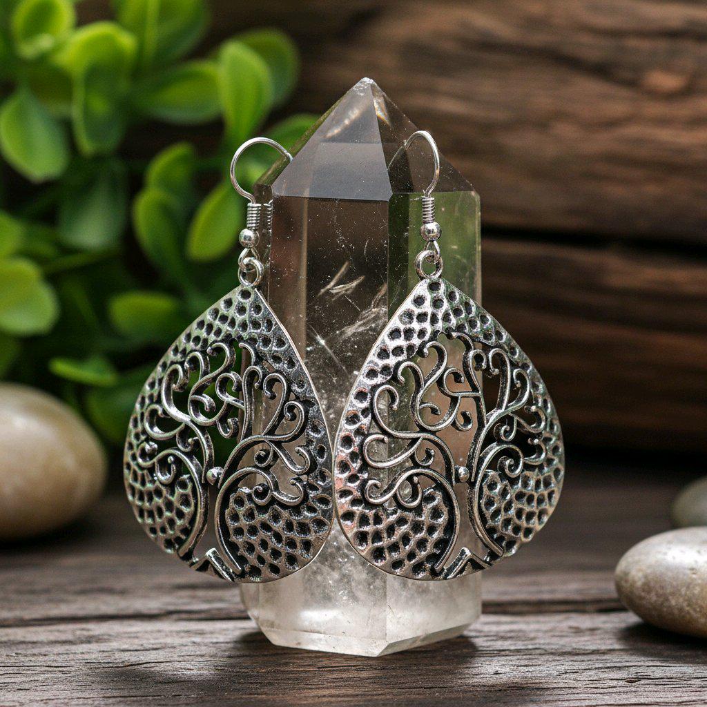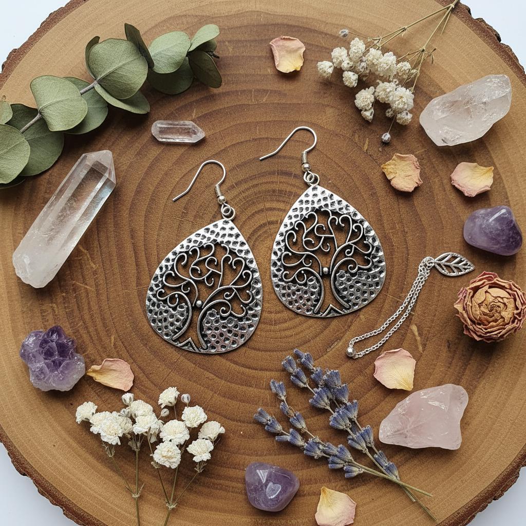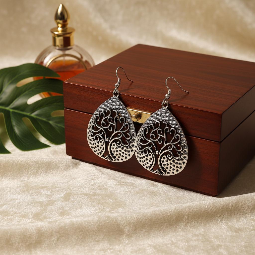 Celebrate nature and spiritual symbolism with these bohemian Tree of Life earrings, handcrafted in silver tone brass with an intricate openwork design. The Tree of Life motif represents growth, strength, and balance, making these earrings both meaningful and stylish.