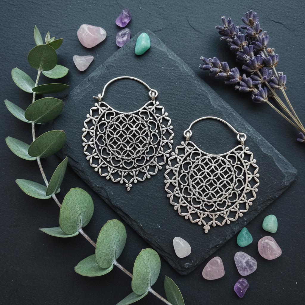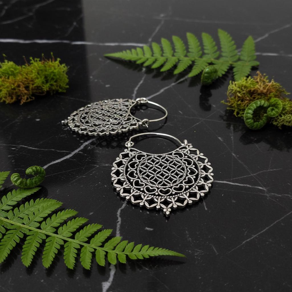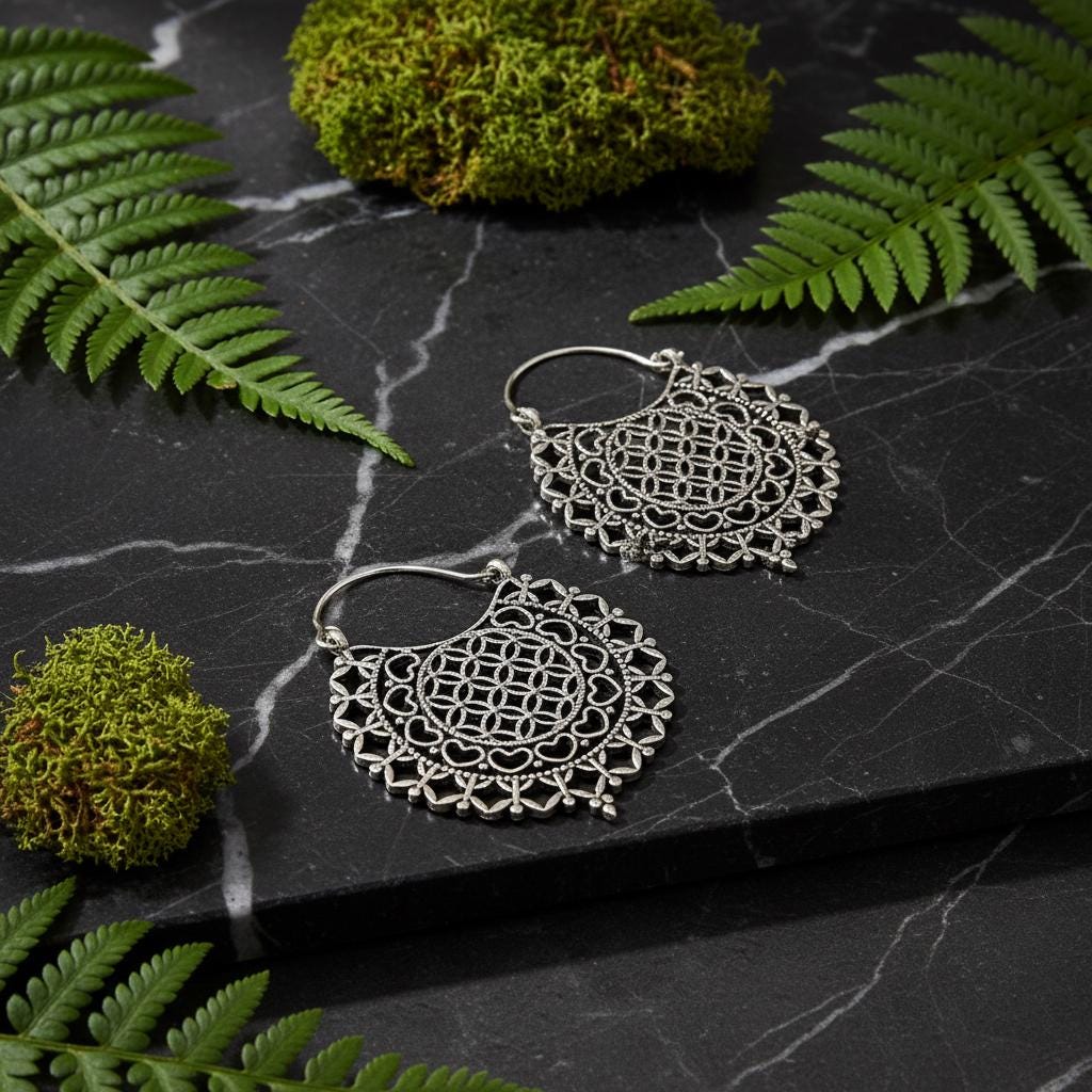 Made from brass and finished in your choice of gold tone or silver tone, these earrings reflect light beautifully while maintaining a timeless, handcrafted aesthetic. The circular mandala pattern is inspired by sacred geometry, symbolizing harmony, creation, and interconnectedness—ideal for those drawn to spiritual, boho, or mindful jewelry.