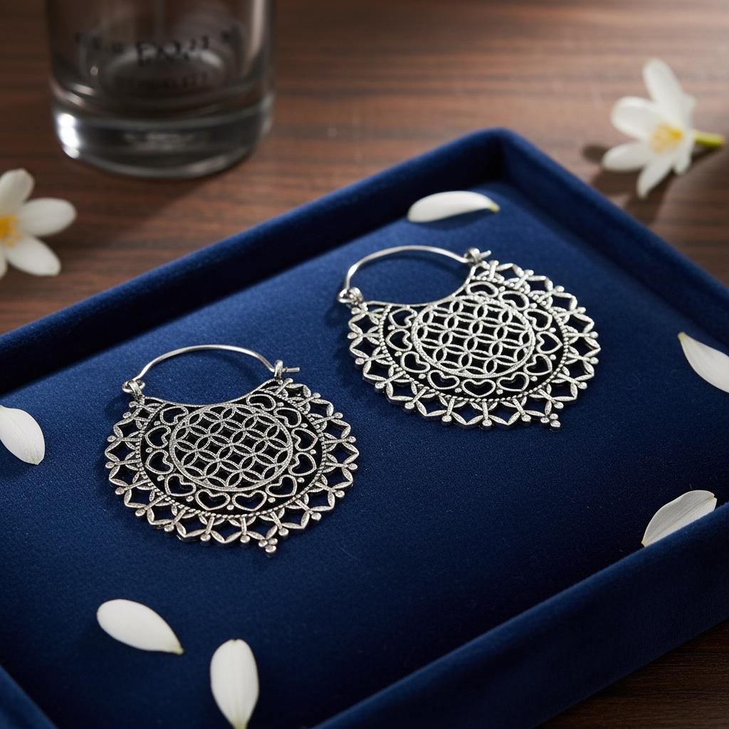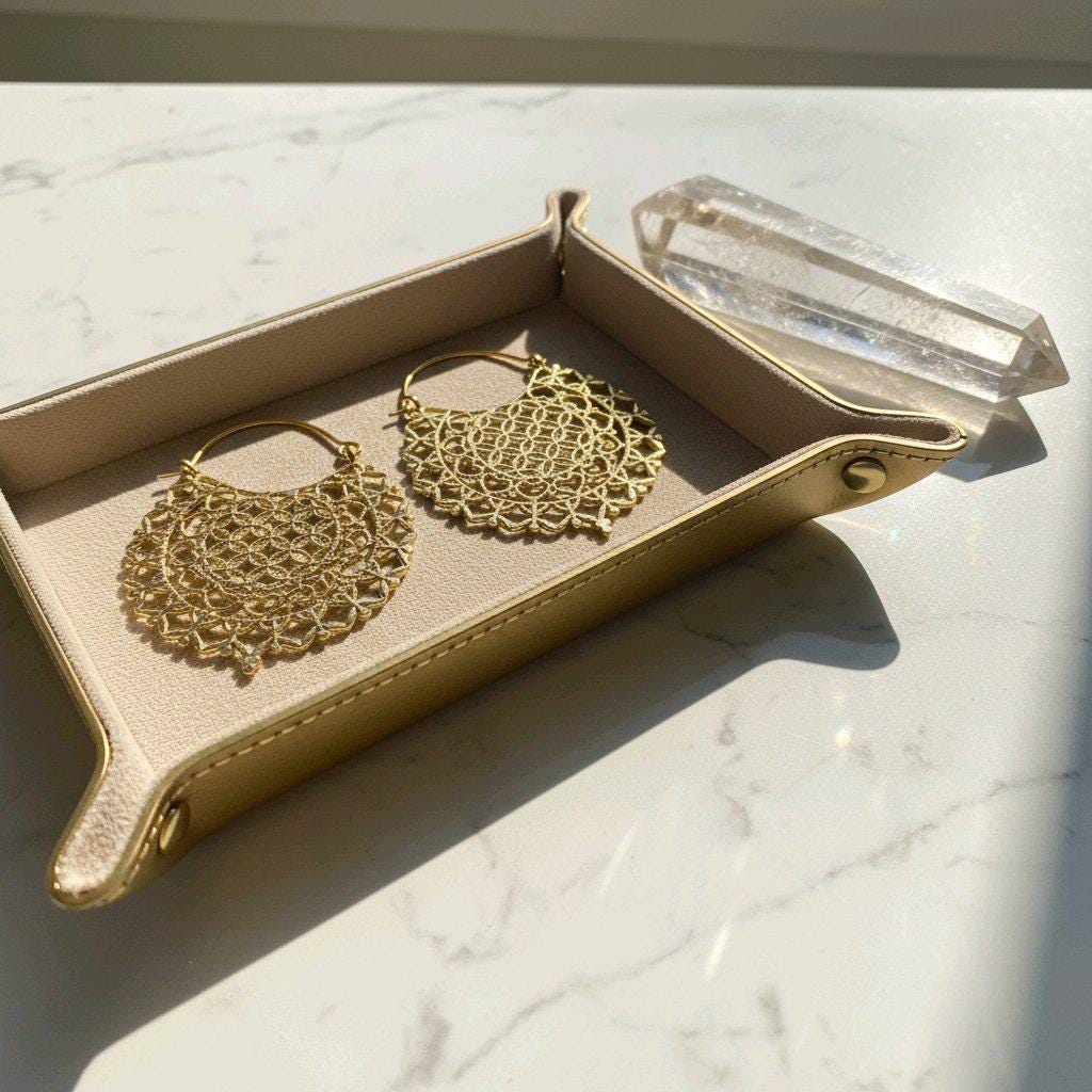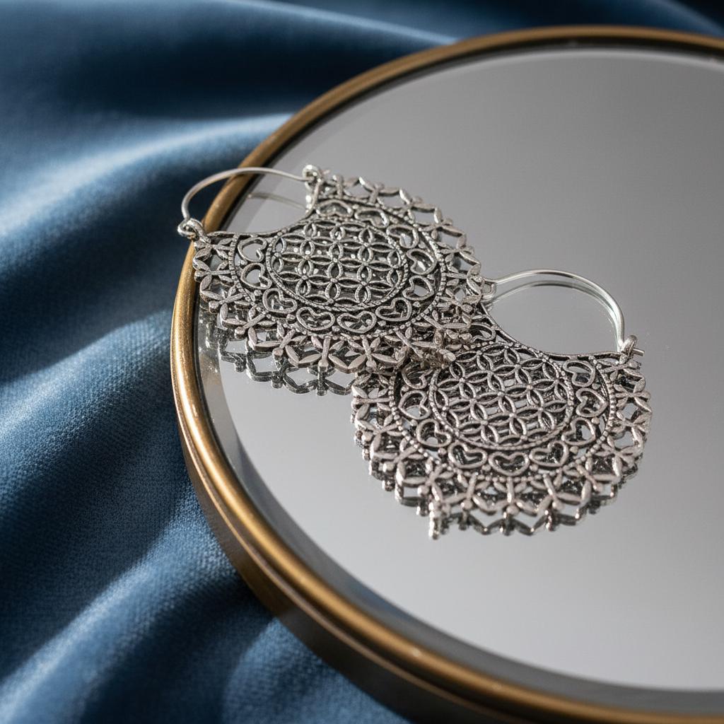 Made from brass and finished in your choice of gold tone or silver tone, these earrings reflect light beautifully while maintaining a timeless, handcrafted aesthetic. The circular mandala pattern is inspired by sacred geometry, symbolizing harmony, creation, and interconnectedness—ideal for those drawn to spiritual, boho, or mindful jewelry.