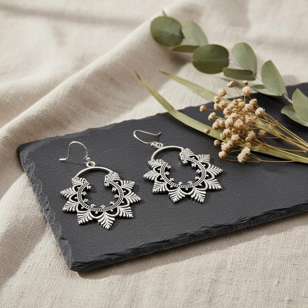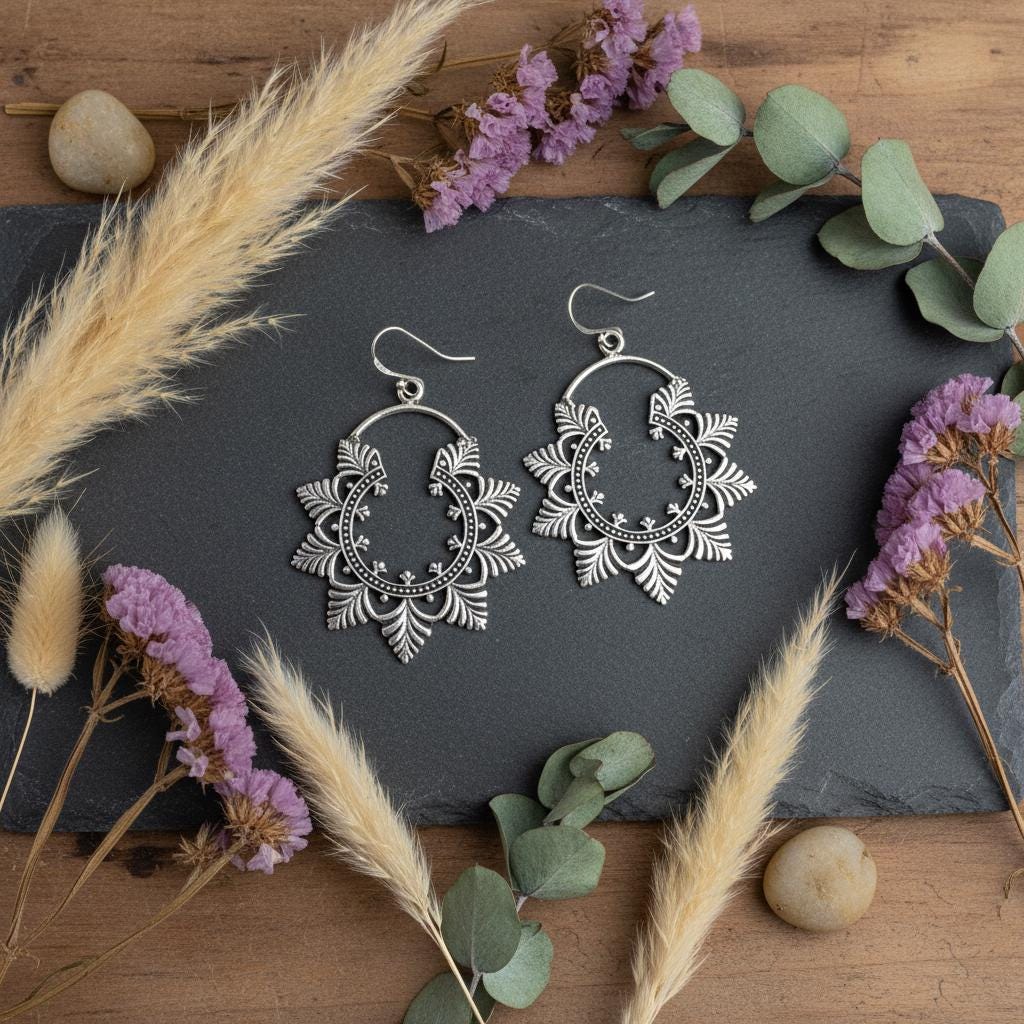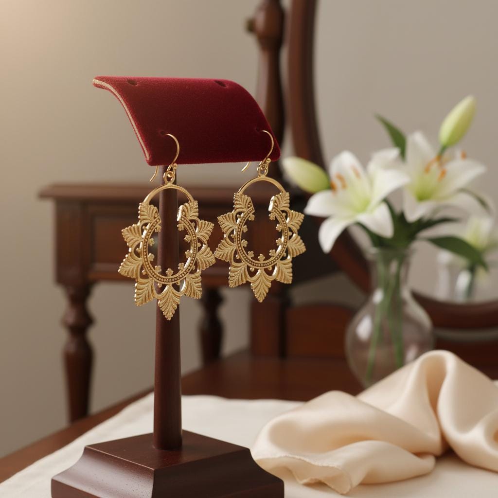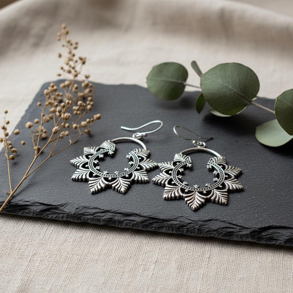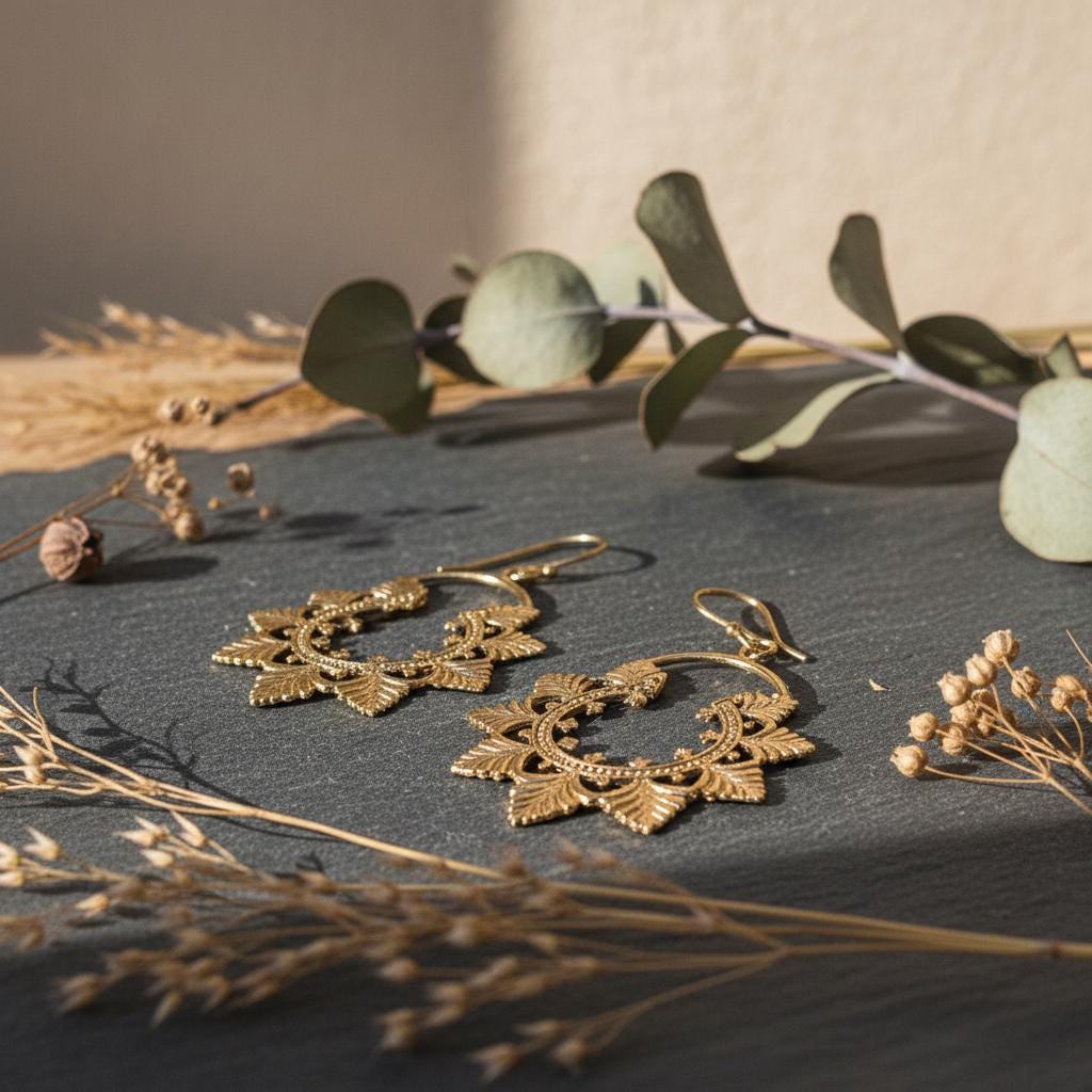 Available in golden or silver tone, they pair beautifully with bohemian outfits, natural fabrics, and vintage-inspired looks. A timeless piece for women drawn to ethnic craftsmanship and nature-inspired brass jewelry.