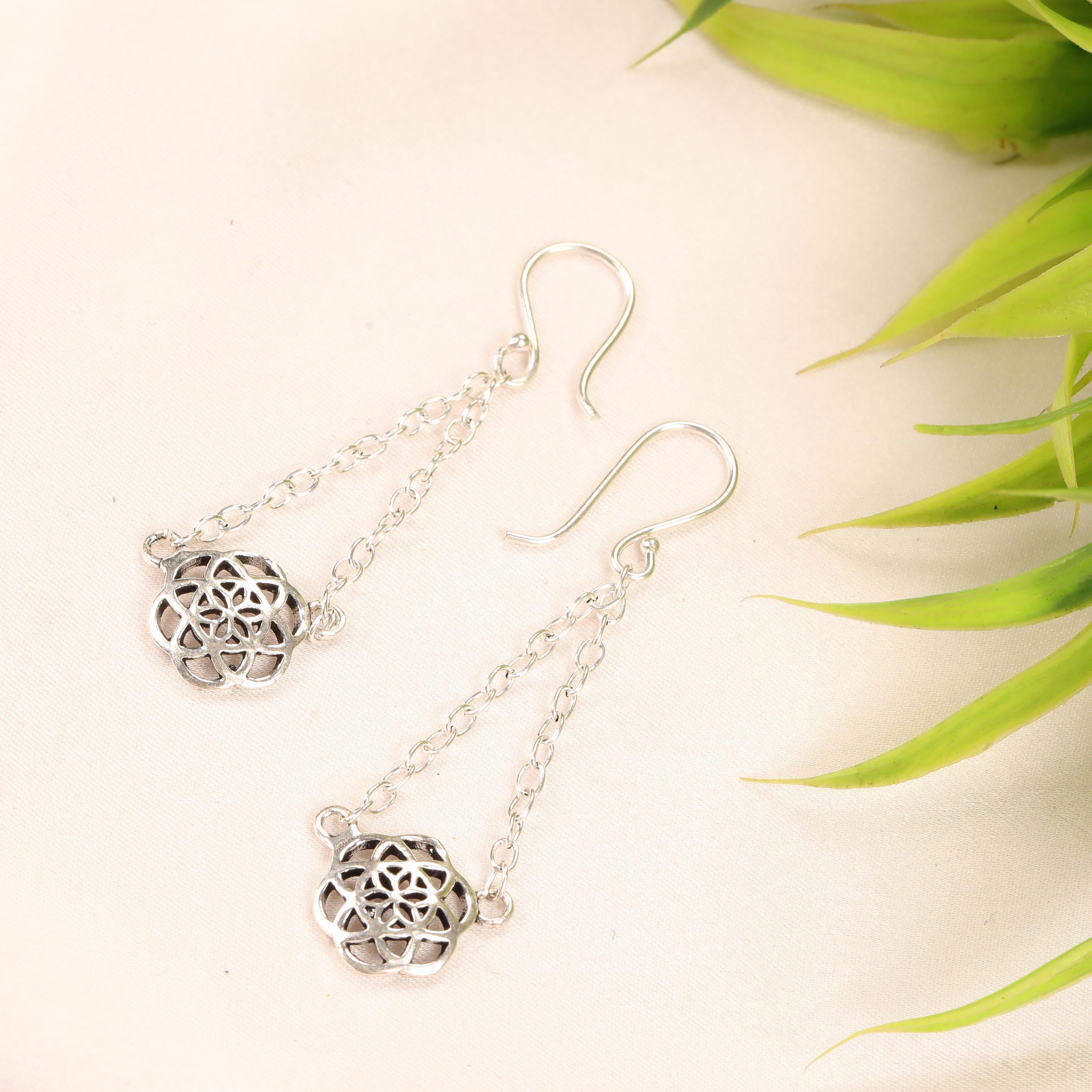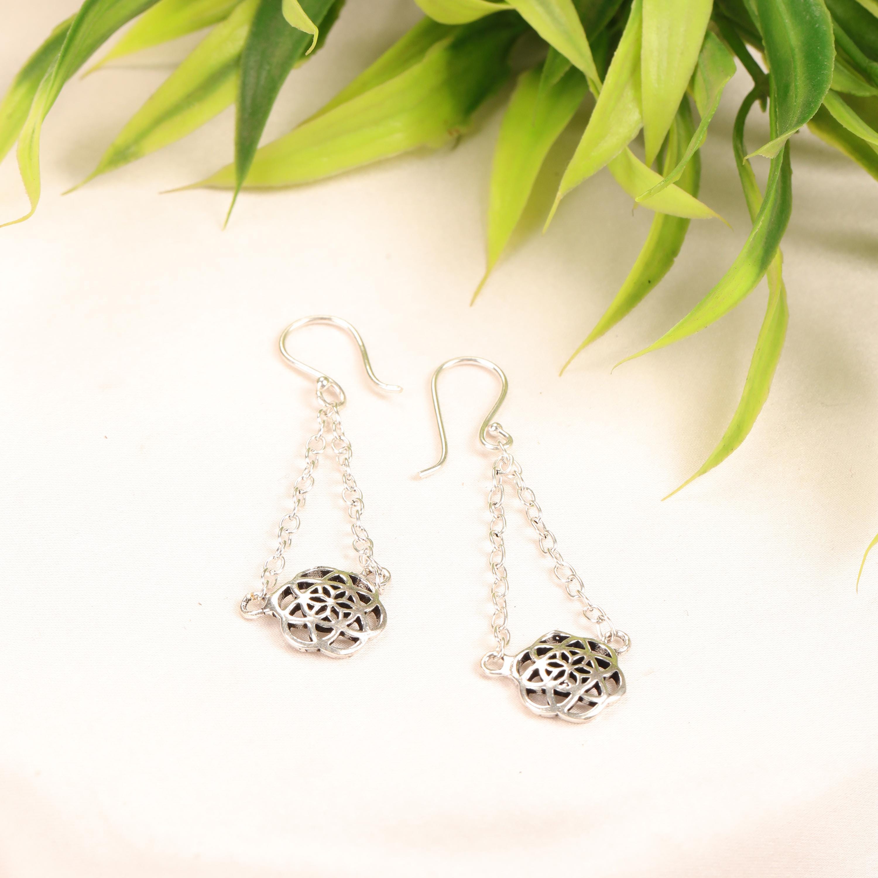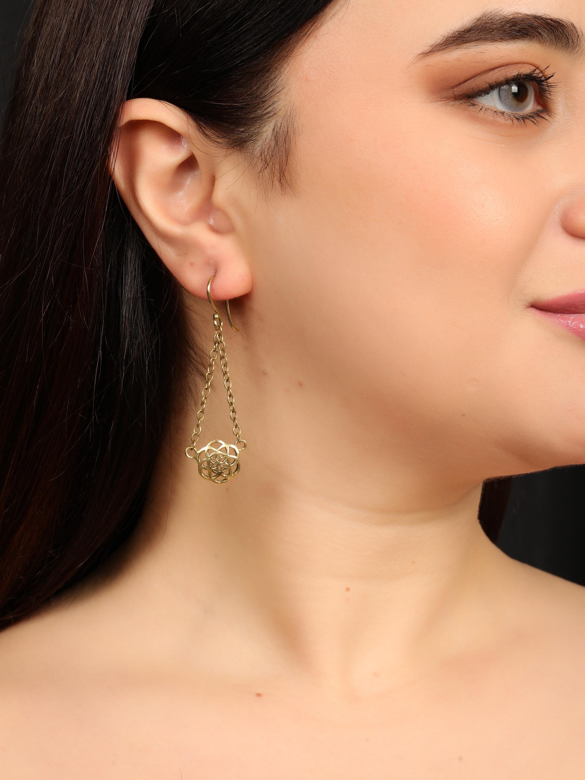 These bohemian sacred geometry earrings are crafted entirely from solid brass and designed for lovers of oriental, ethnic, and spiritual jewelry. Featuring an intricate mandala-inspired openwork pattern, these earrings embody harmony, balance, and sacred symbolism cherished in boho culture.