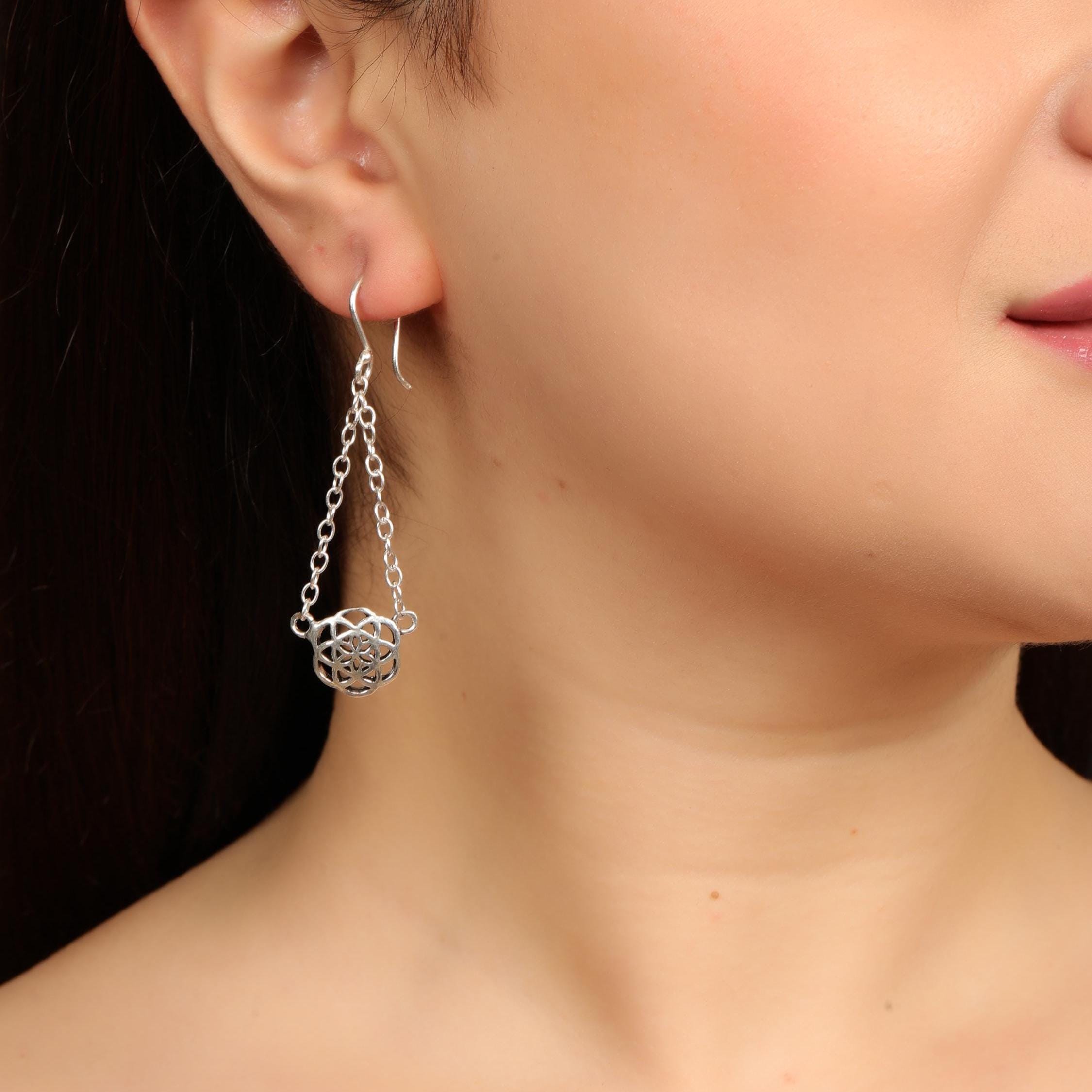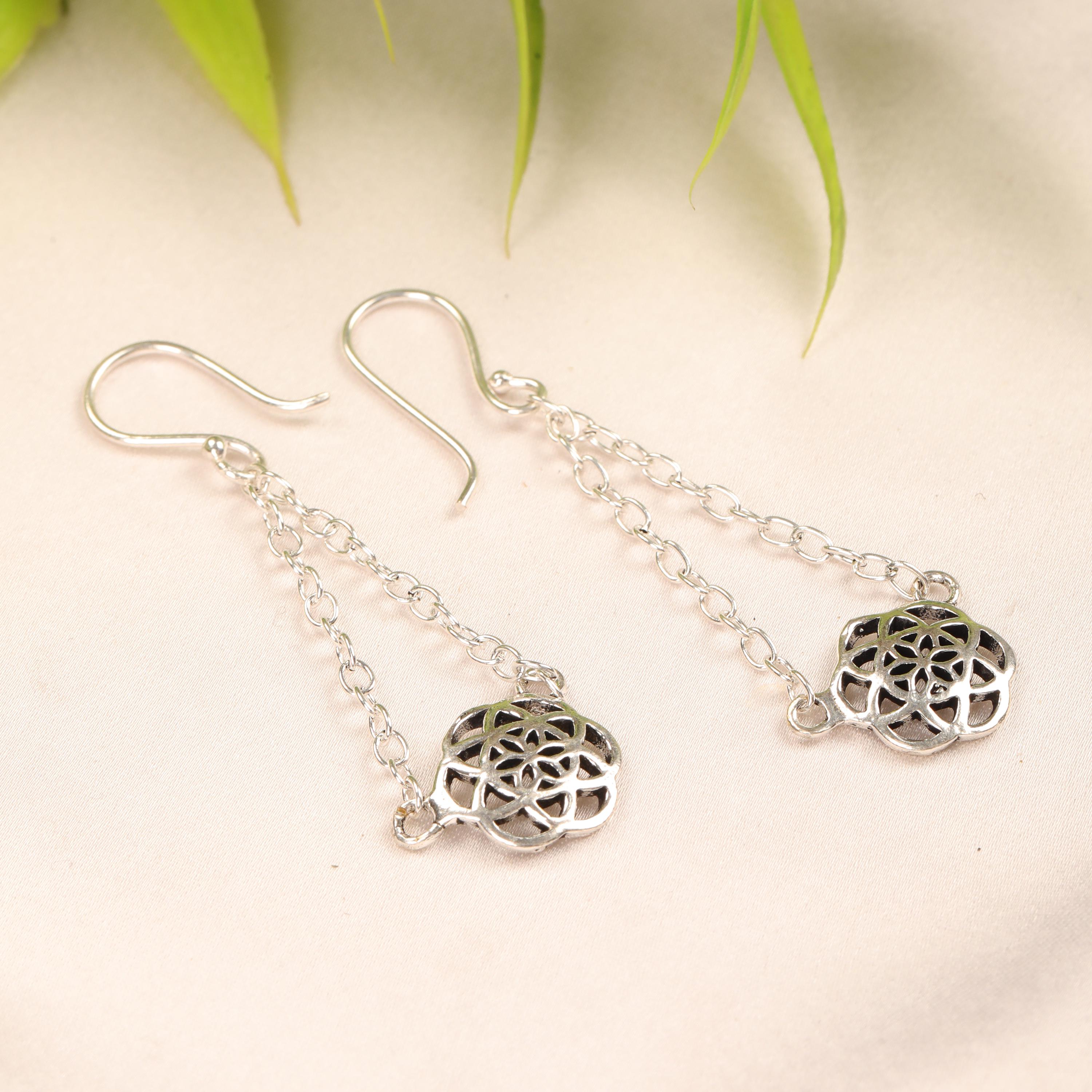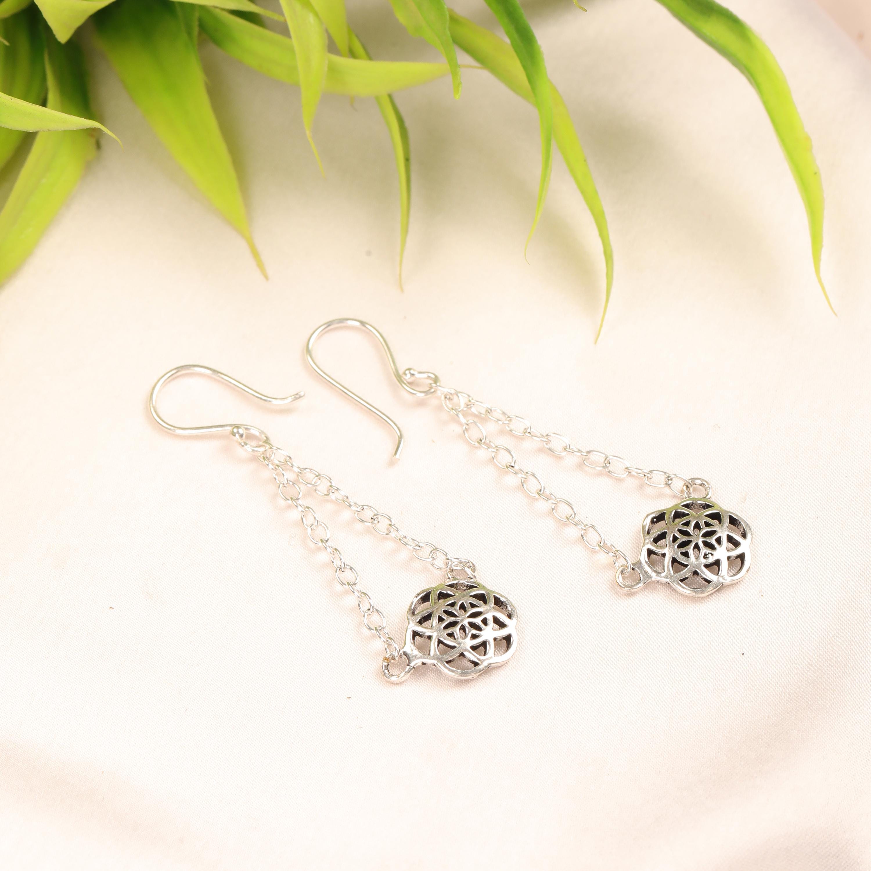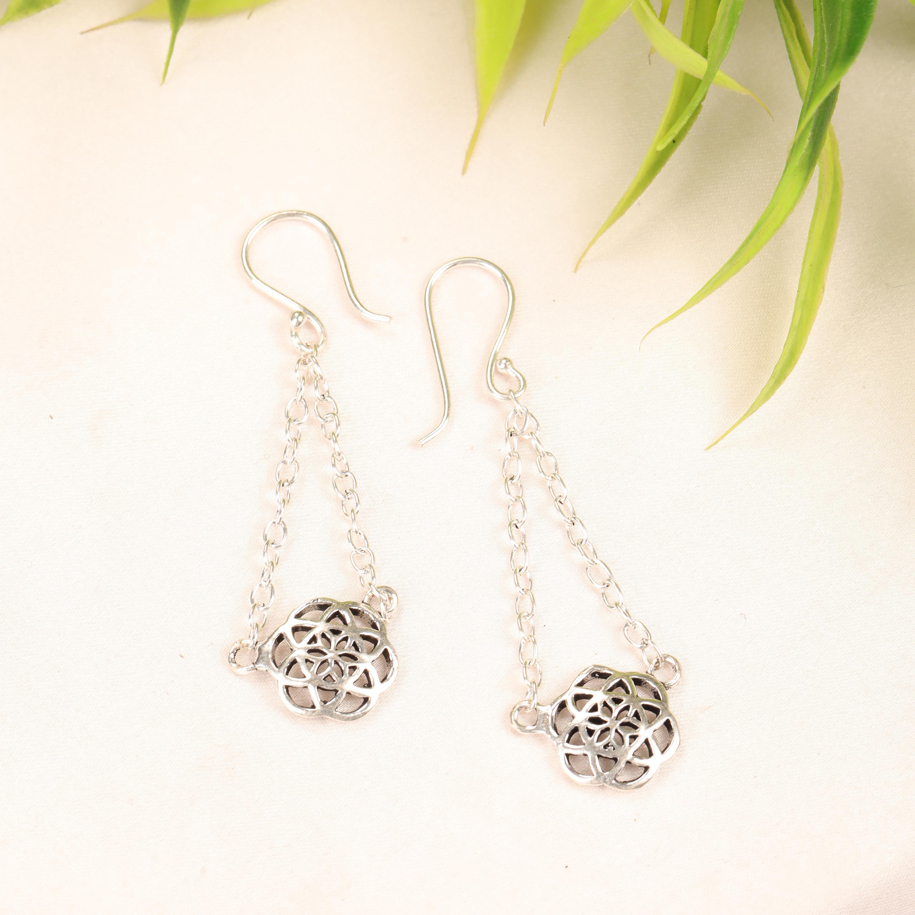 These bohemian sacred geometry earrings are crafted entirely from solid brass and designed for lovers of oriental, ethnic, and spiritual jewelry. Featuring an intricate mandala-inspired openwork pattern, these earrings embody harmony, balance, and sacred symbolism cherished in boho culture.