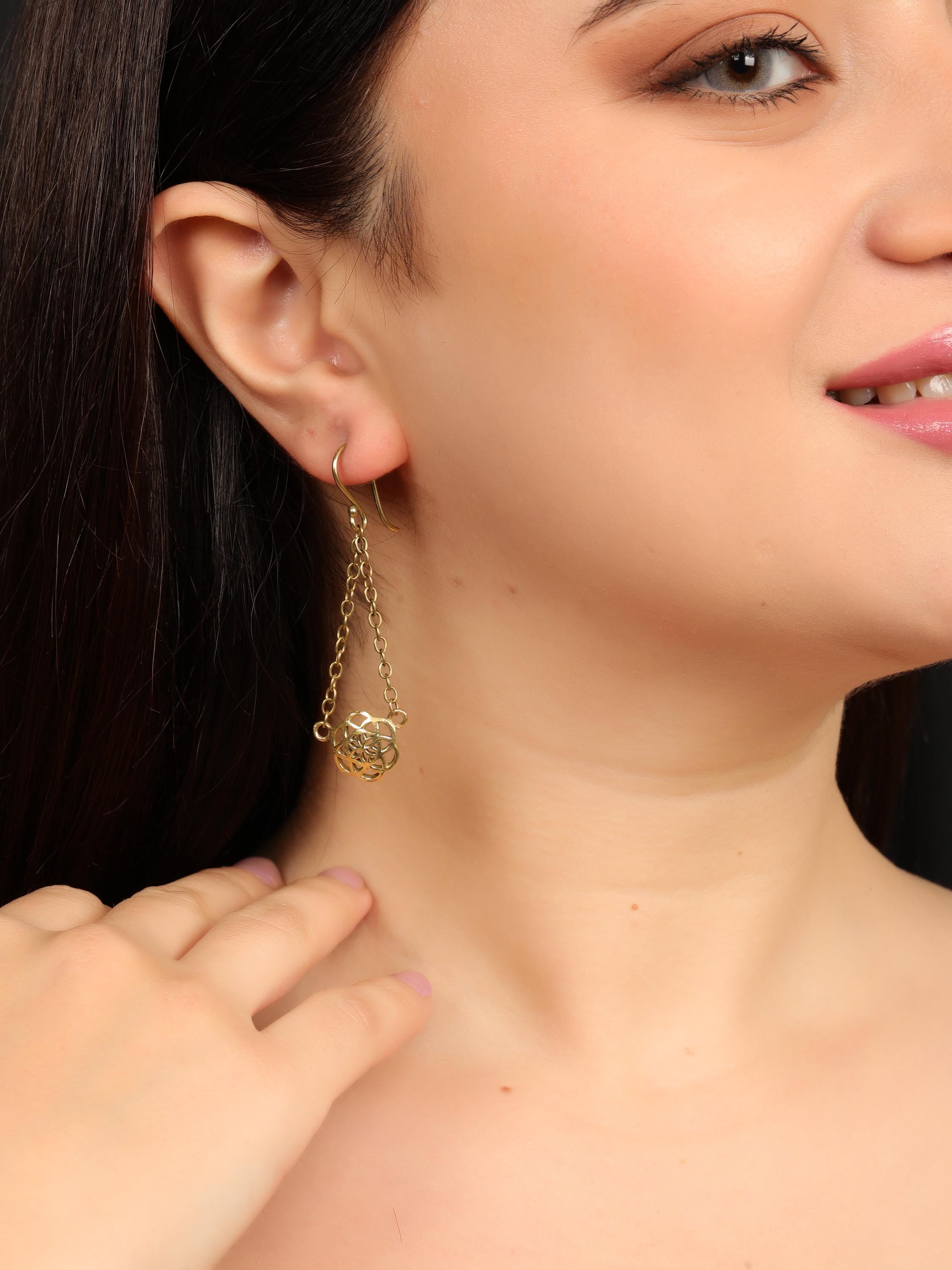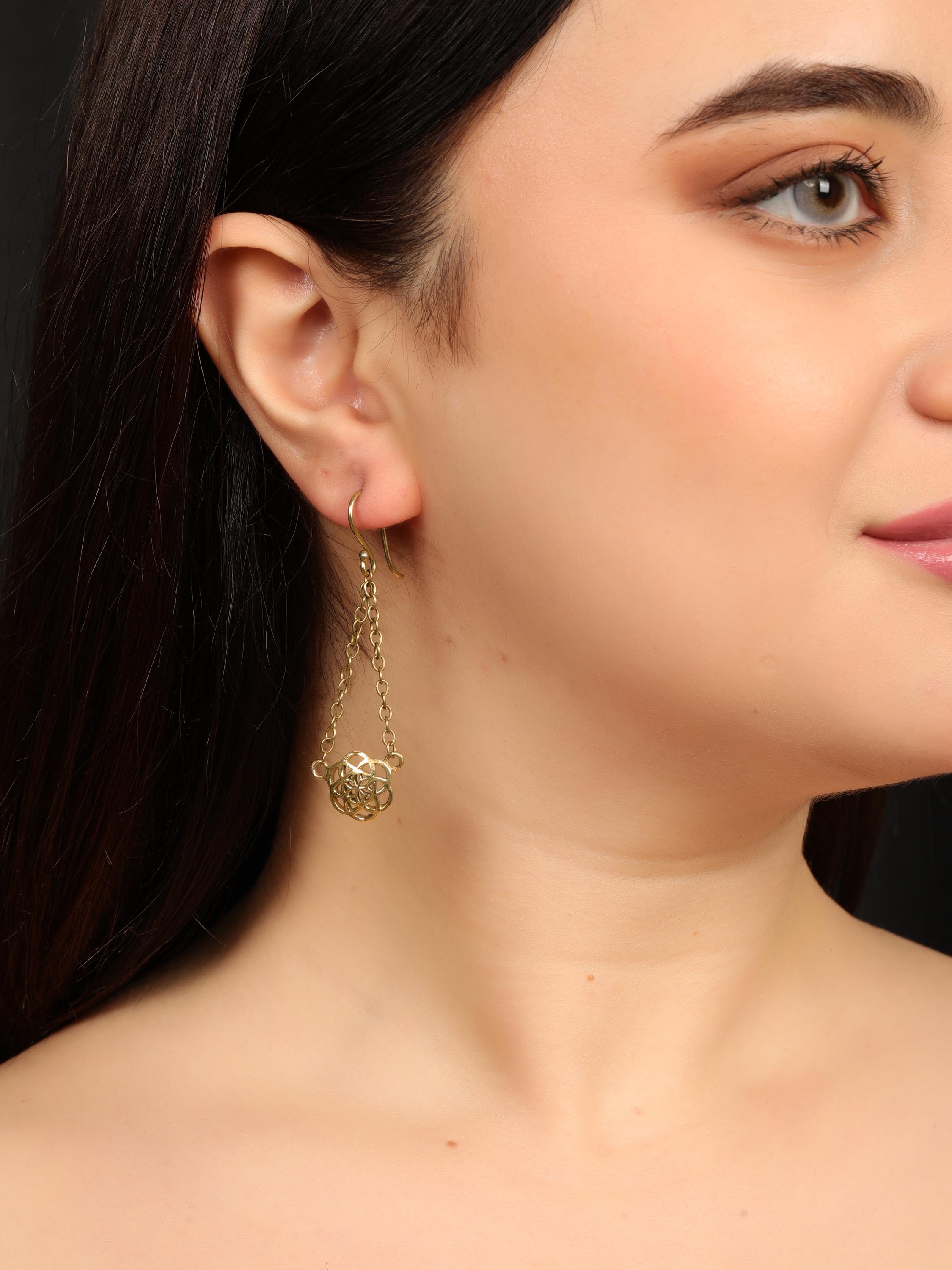 Suspended from delicate brass chains, the design creates elegant movement while remaining lightweight and comfortable. The earrings are finished with classic brass ear wire hooks, allowing them to hang naturally and flow with every step.