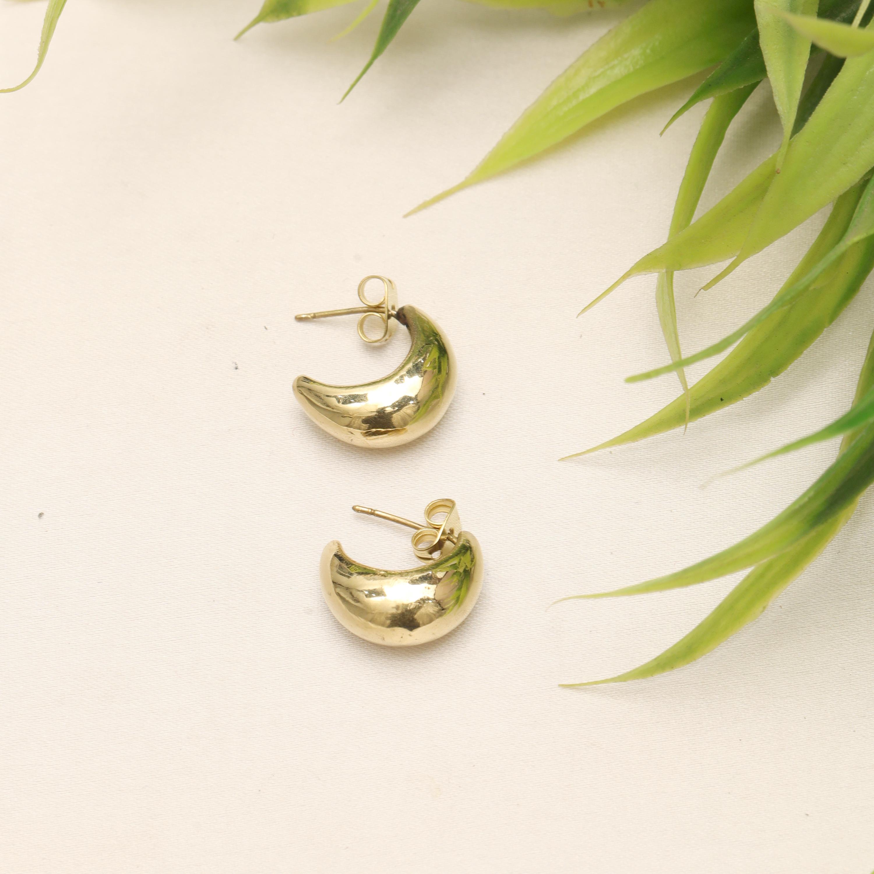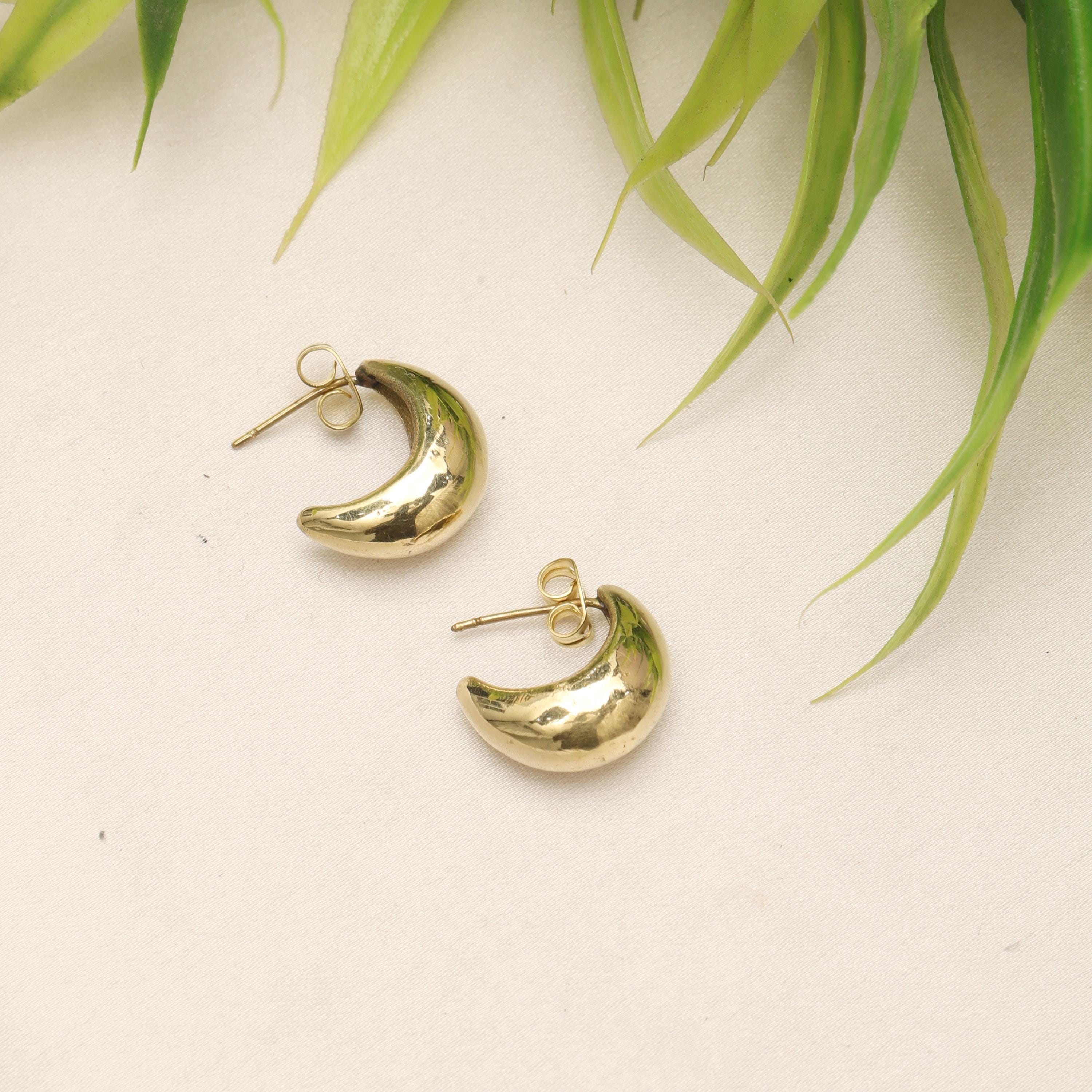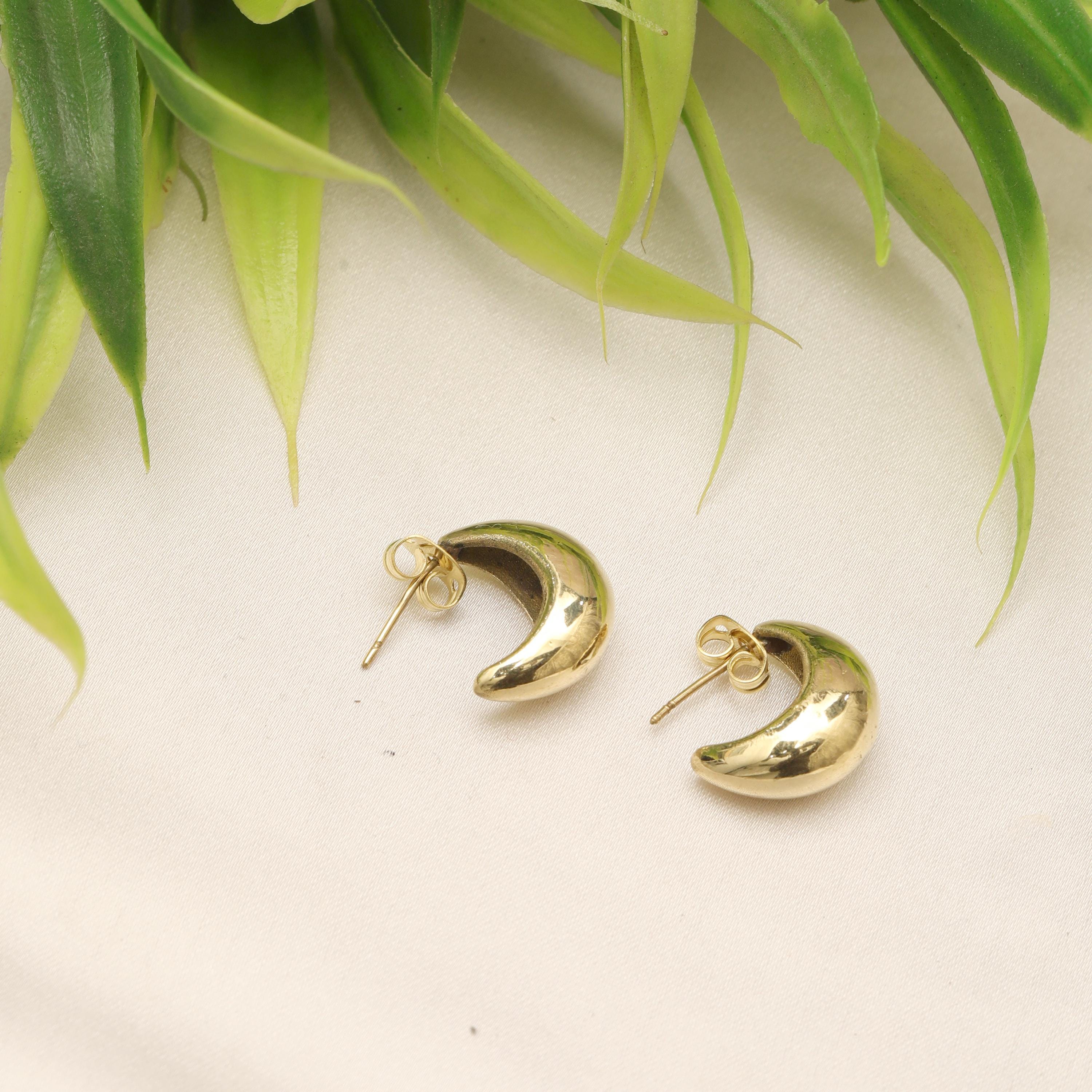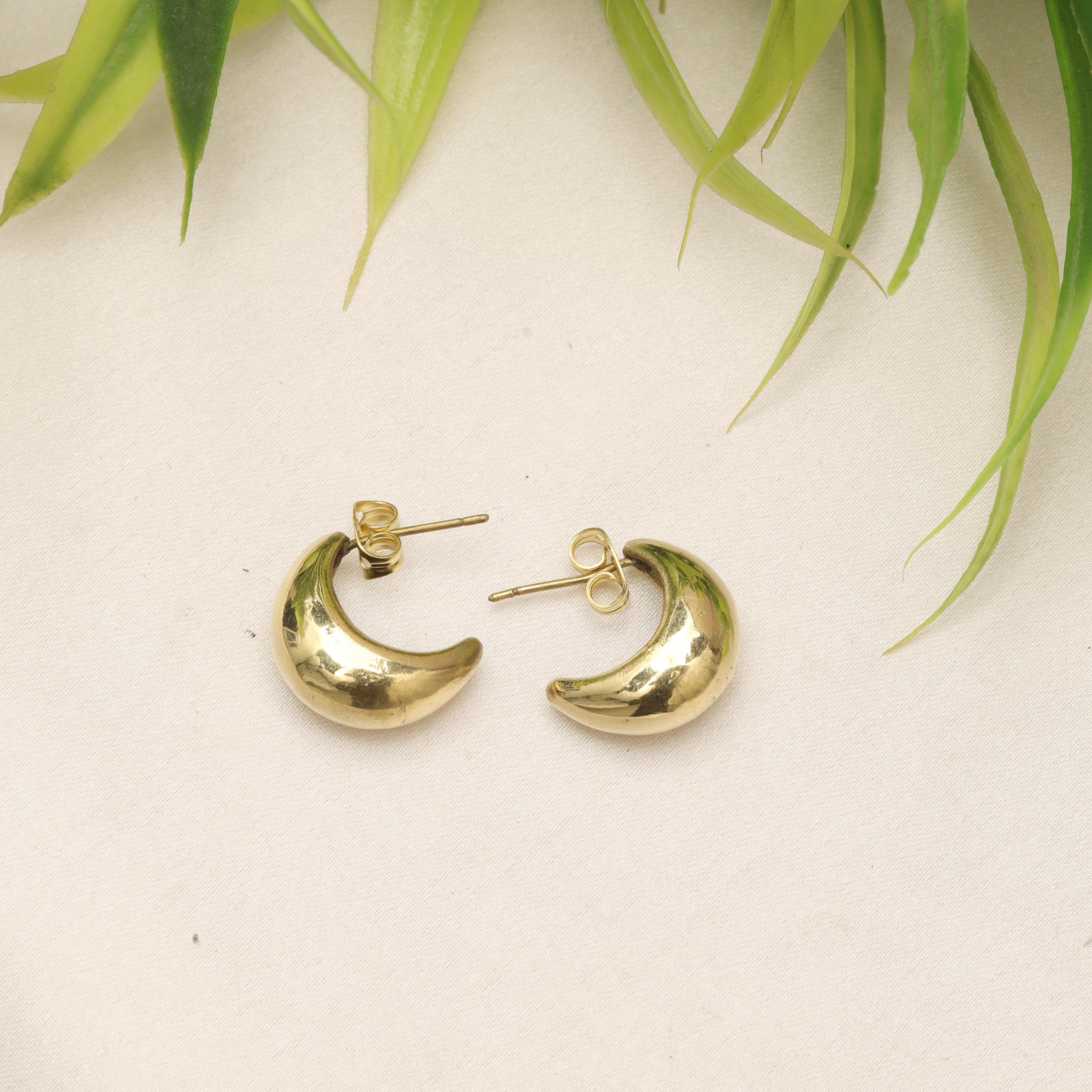 These brass crescent moon stud earrings are designed with a modern minimalist aesthetic, offering clean lines, smooth curves, and understated elegance. The softly rounded crescent form creates a contemporary silhouette that feels refined, sculptural, and effortlessly stylish.
