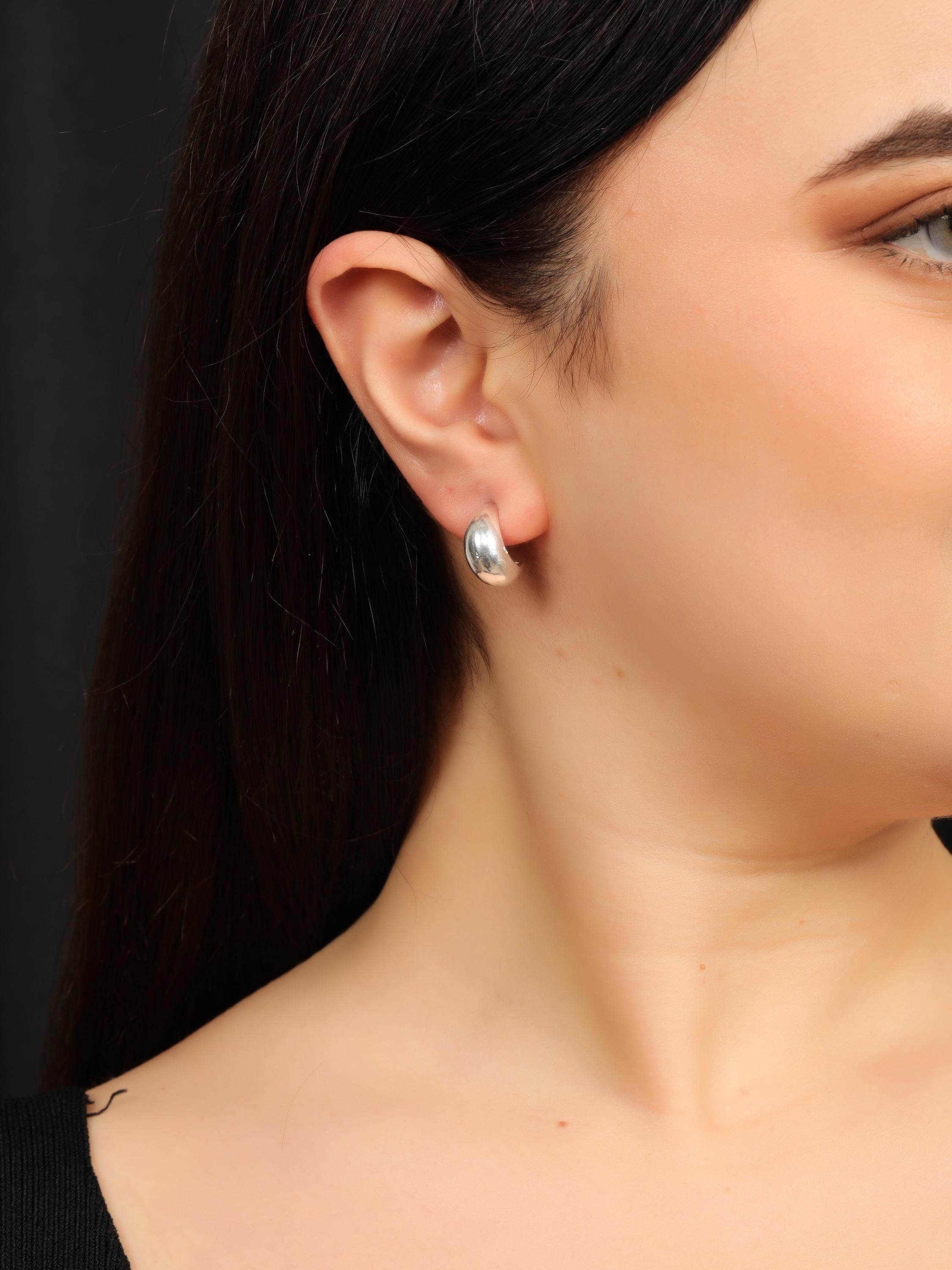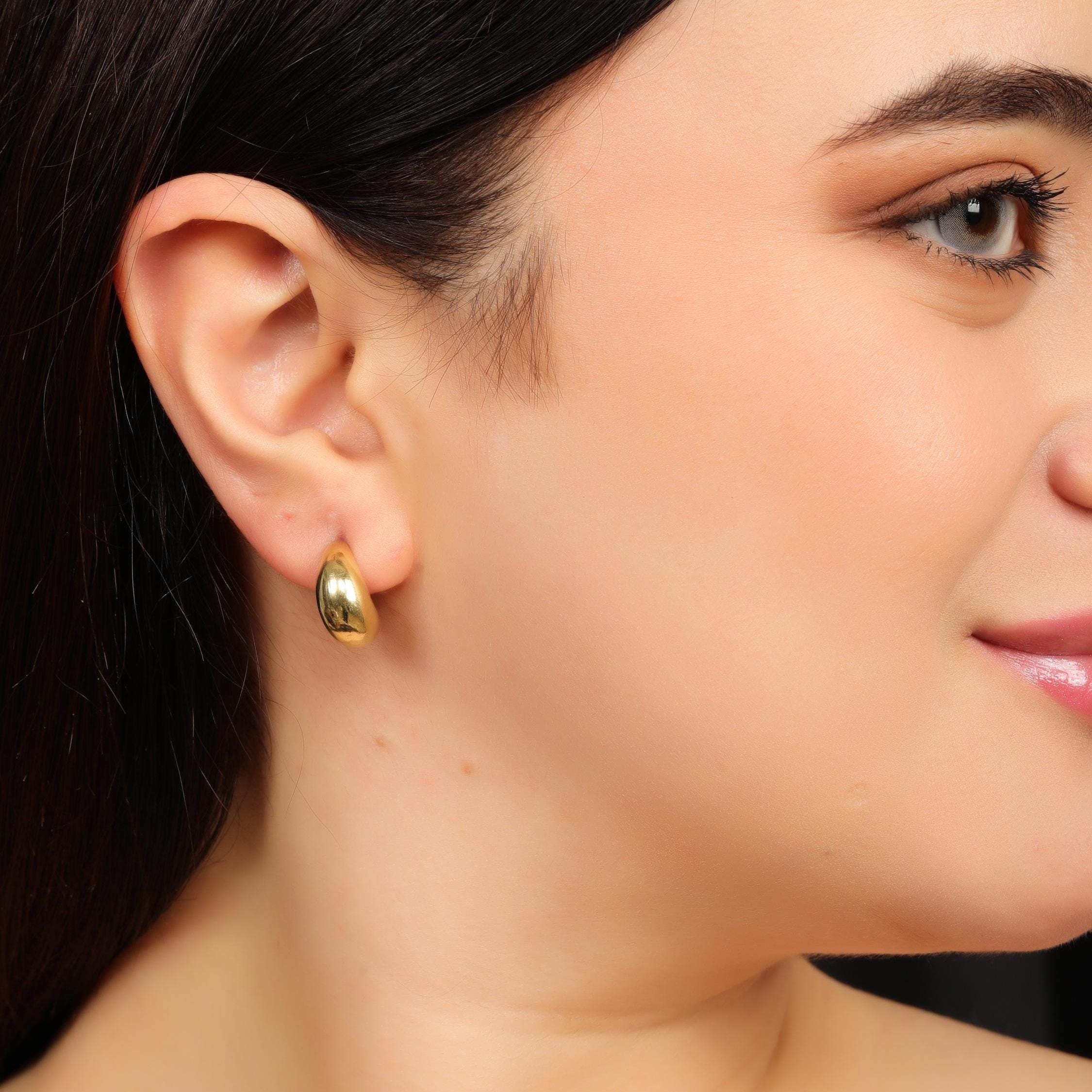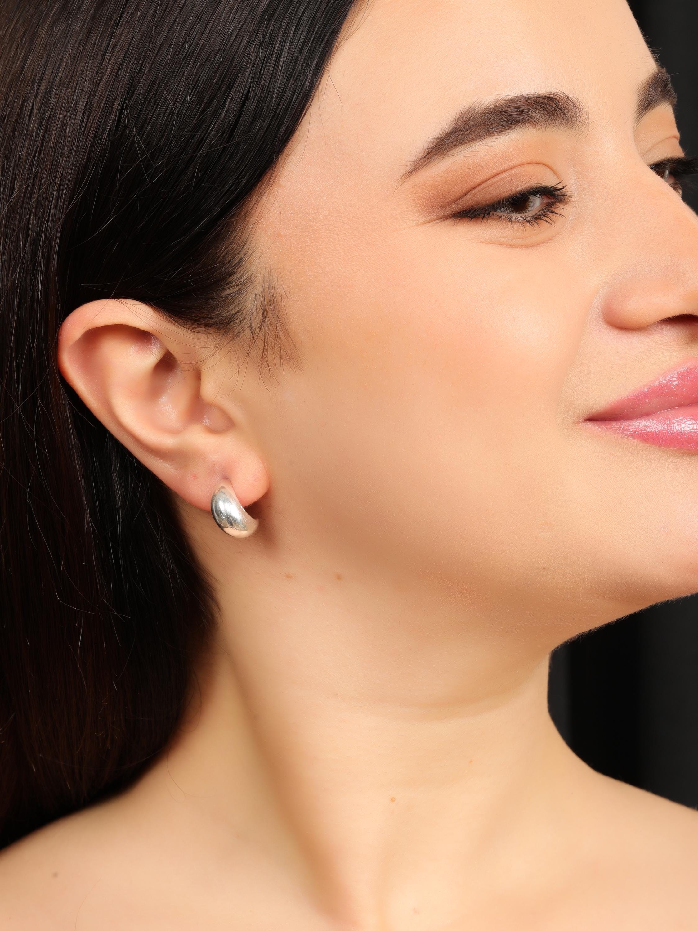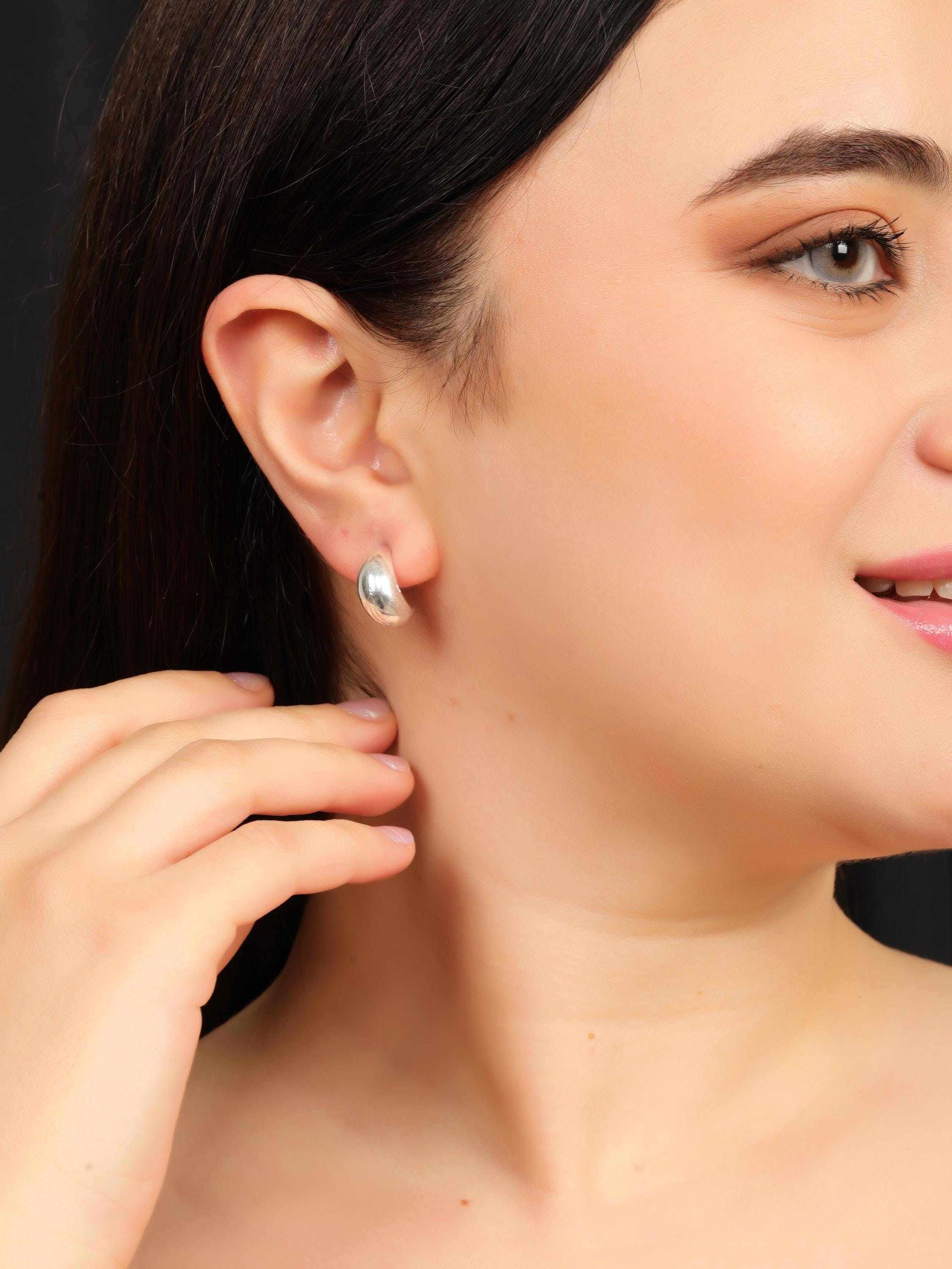 Made from brass, these earrings are available in gold tone and silver tone finishes, allowing you to choose between warm or cool minimal styling. The high-polish surface reflects light subtly, adding sophistication without overpowering your look. Their compact size and stud backing make them ideal for everyday wear, office styling, and minimalist wardrobes.