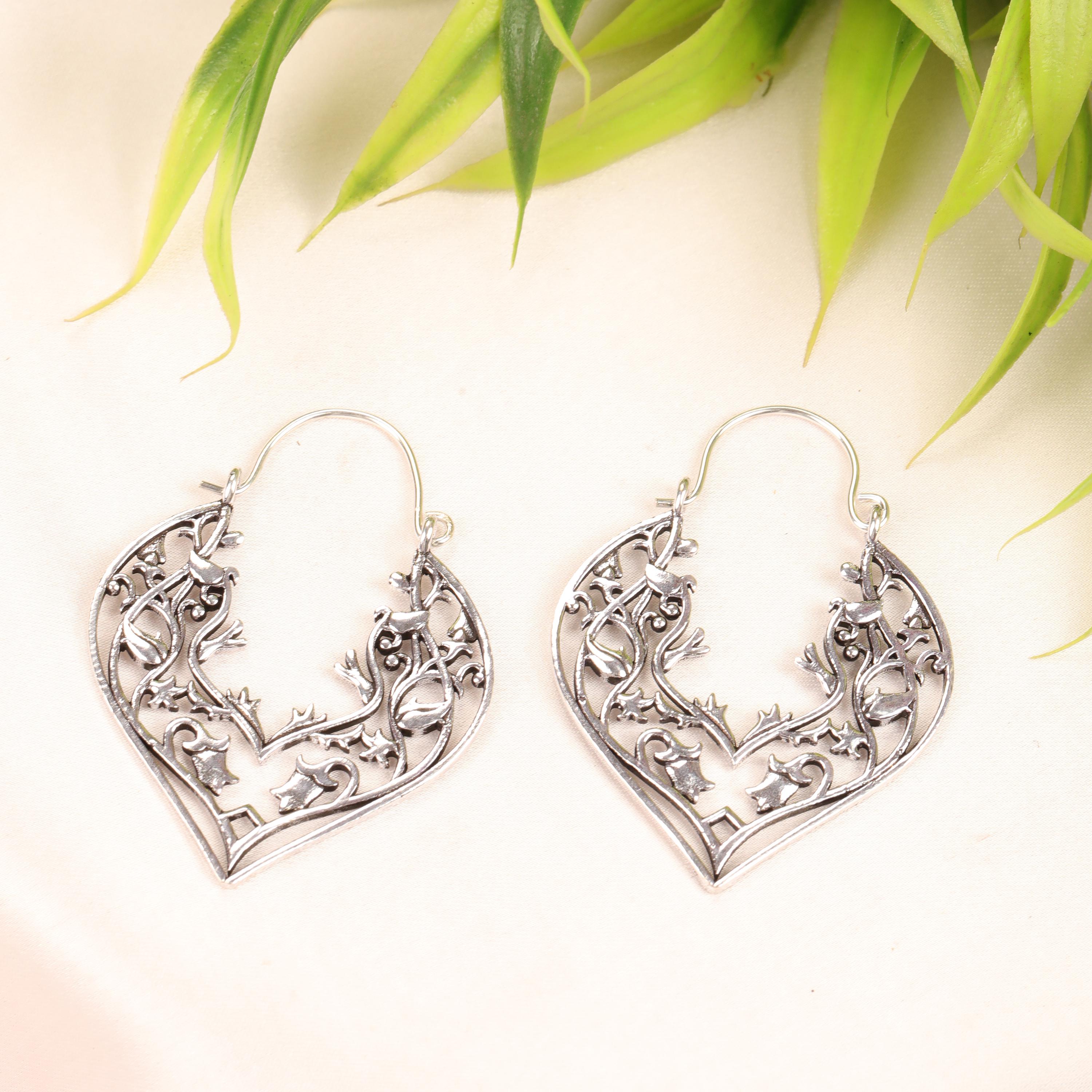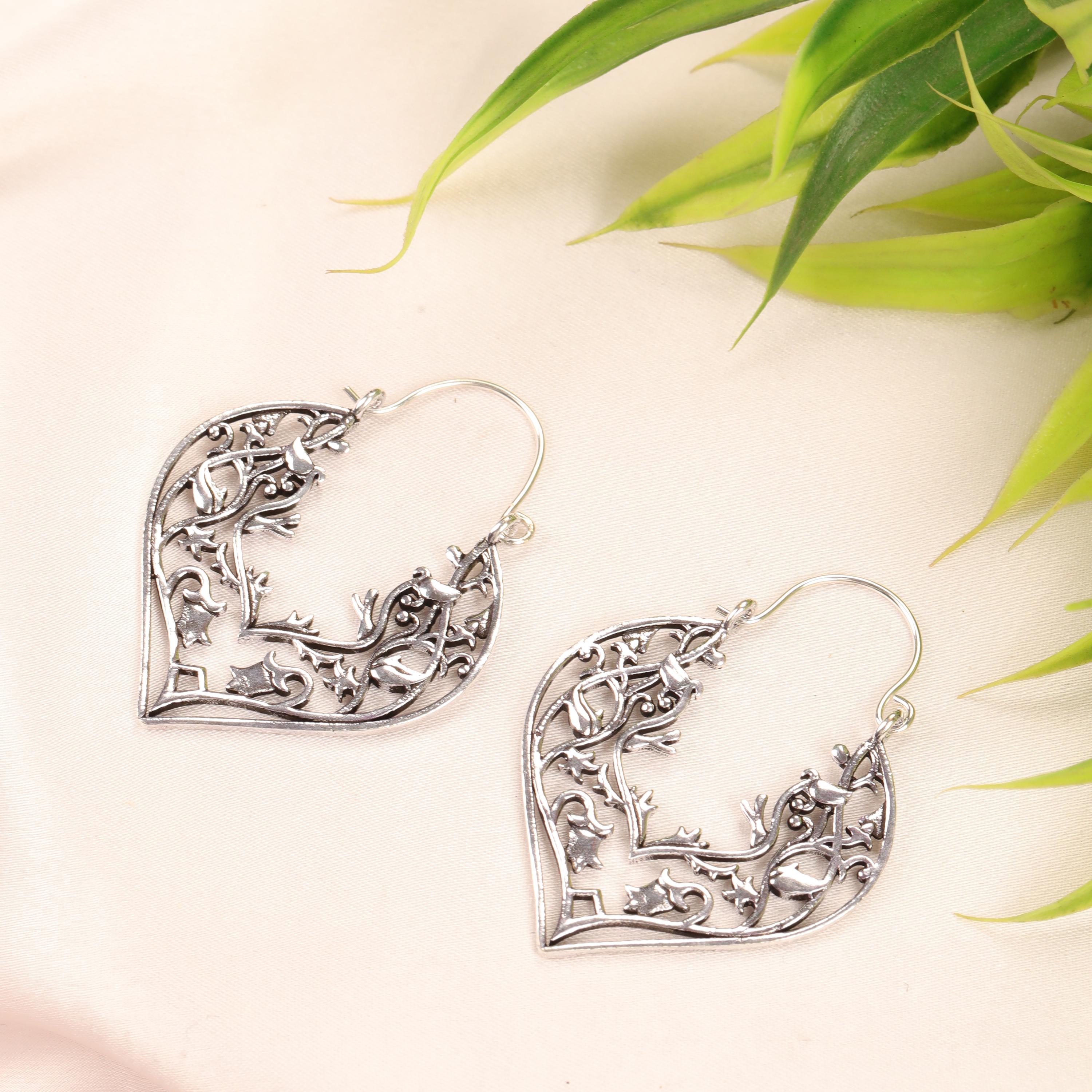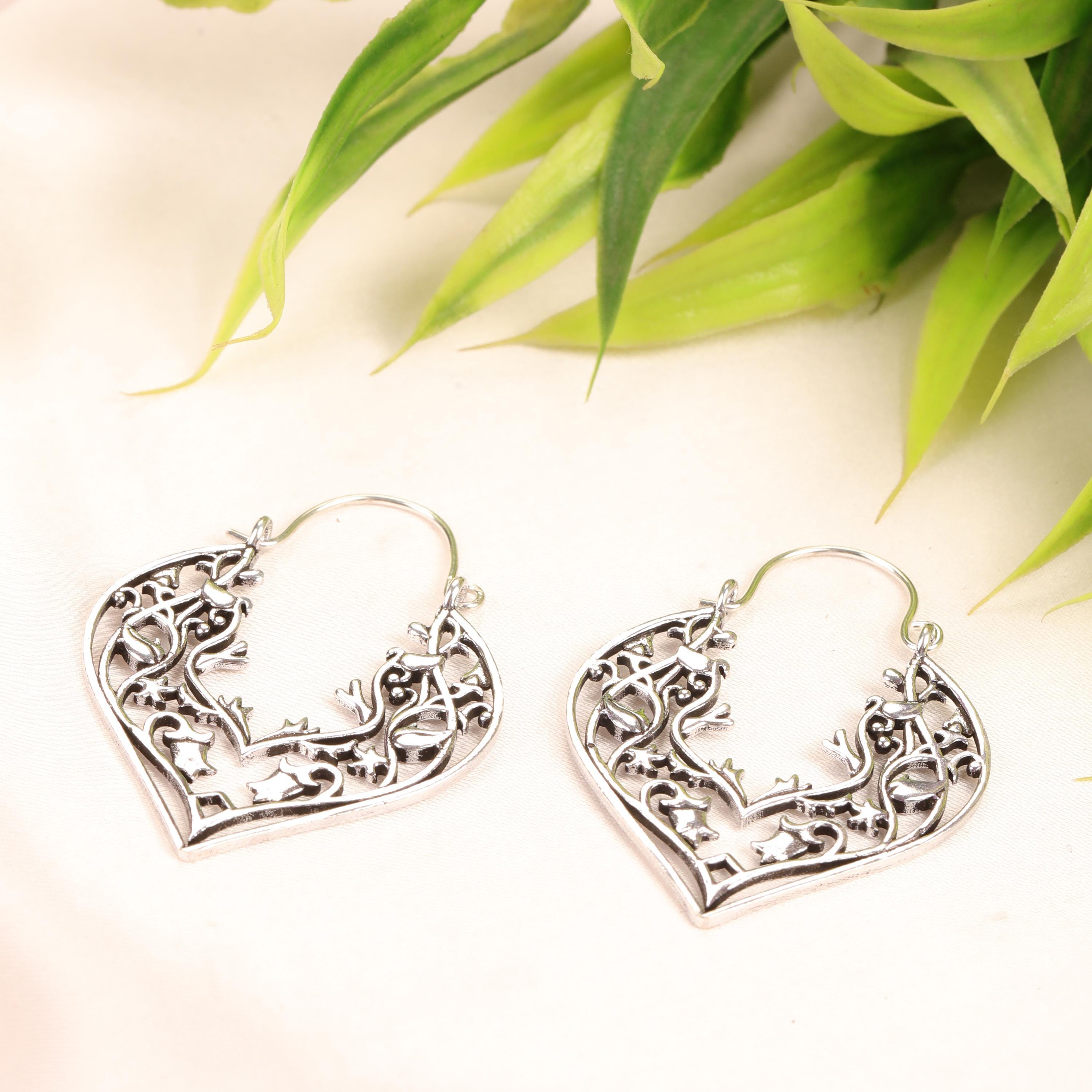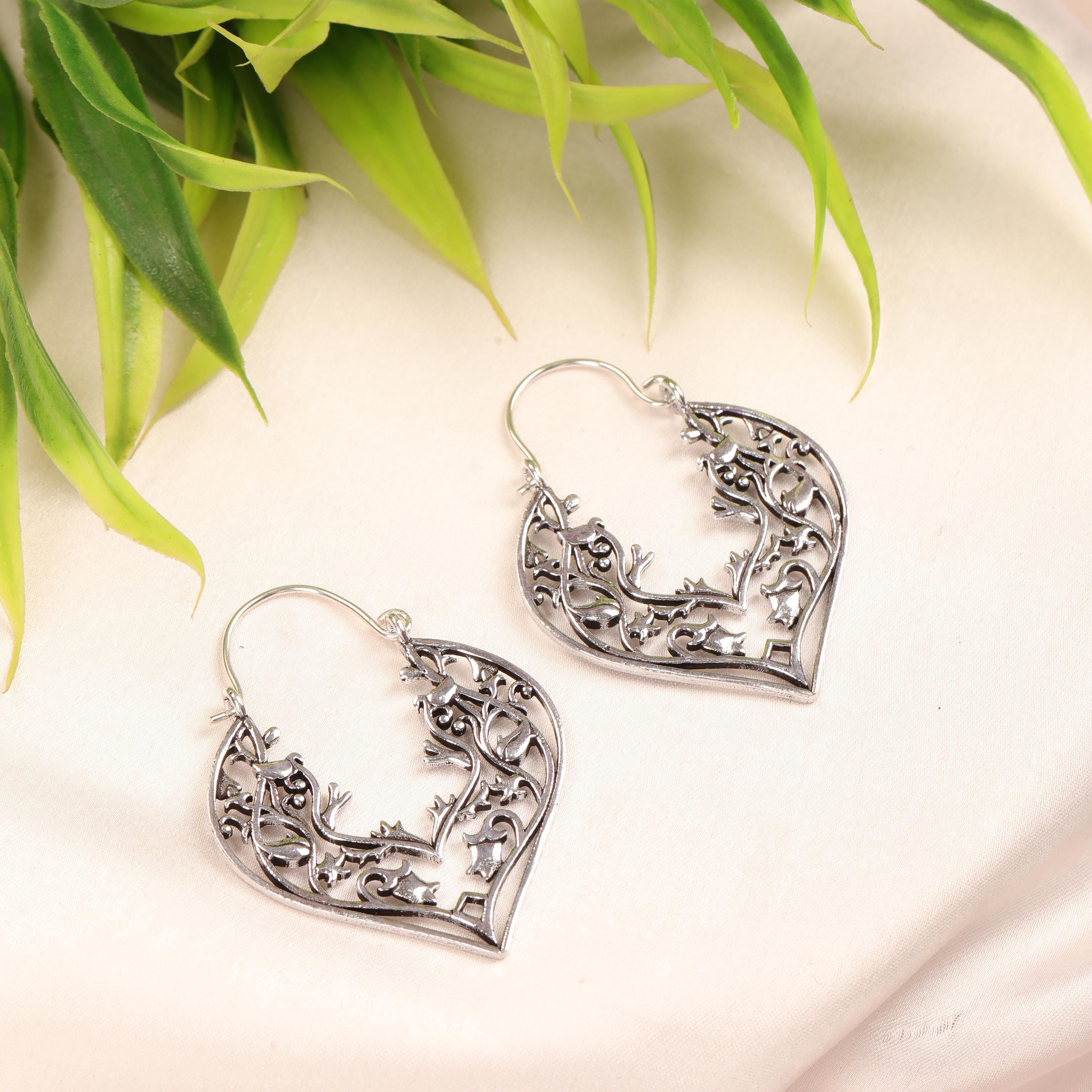 These handcrafted brass heart earrings feature an elegant openwork design inspired by romantic symbolism and vintage metal artistry. Shaped into graceful heart silhouettes, each earring is adorned with intricate filigree floral detailing that creates depth, texture, and visual movement.