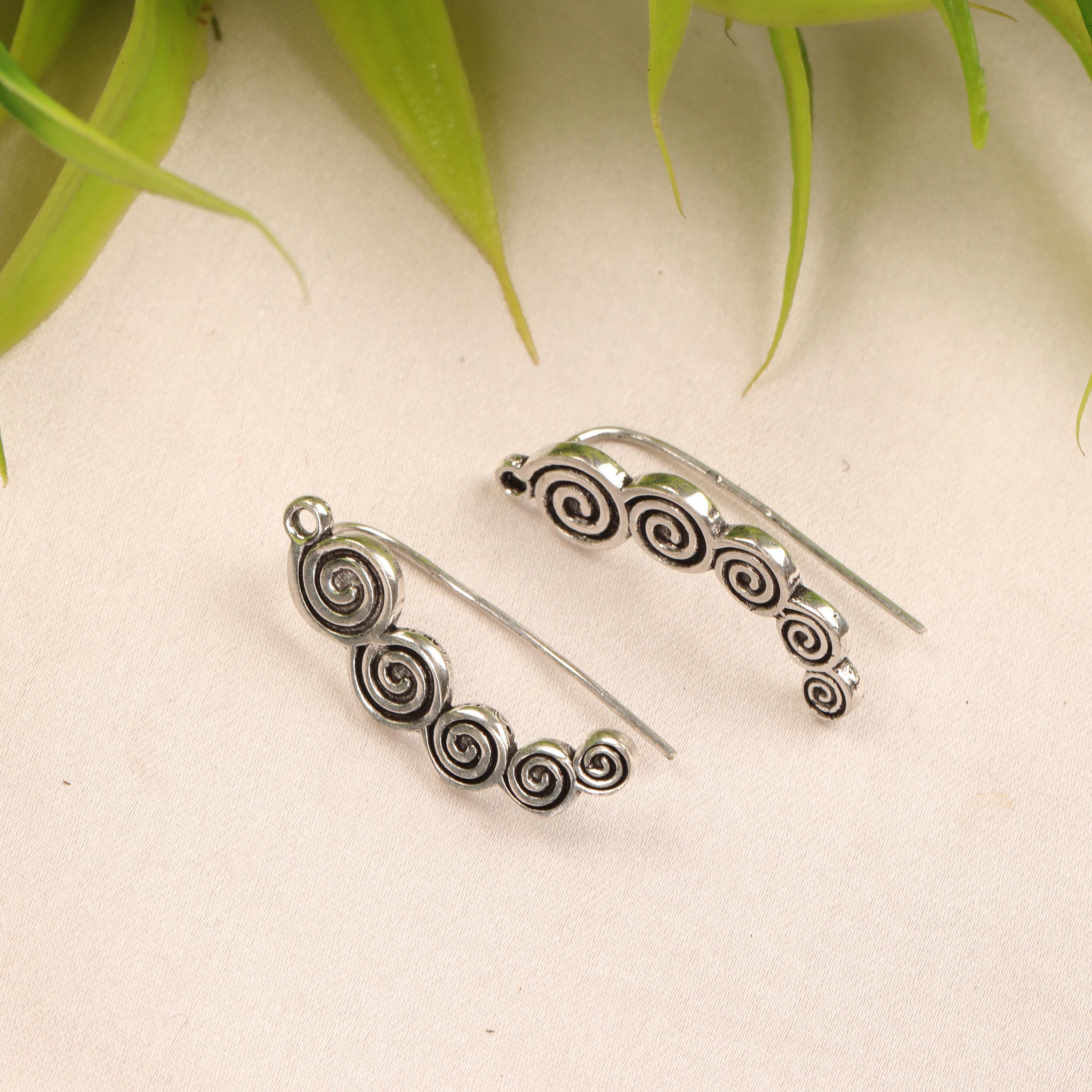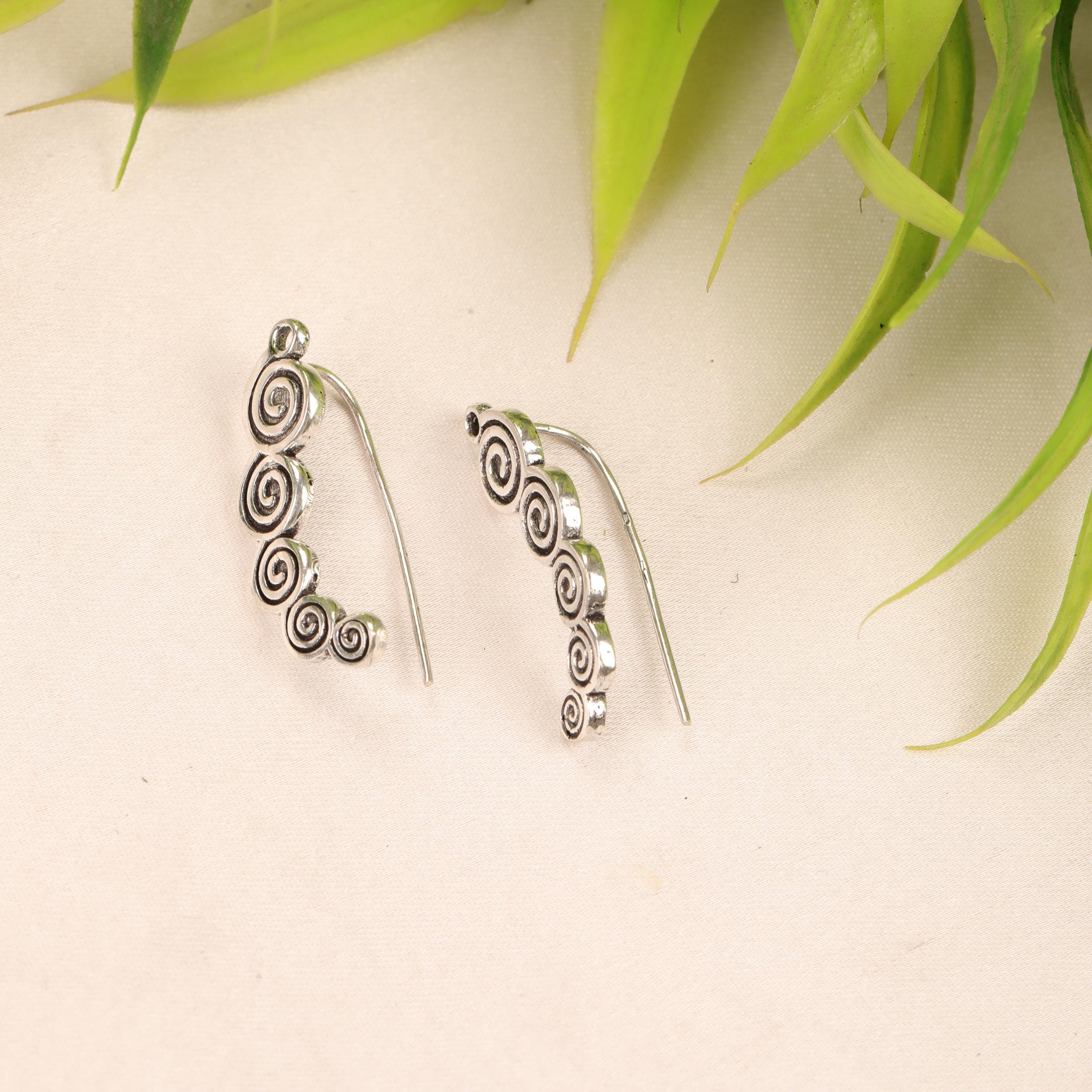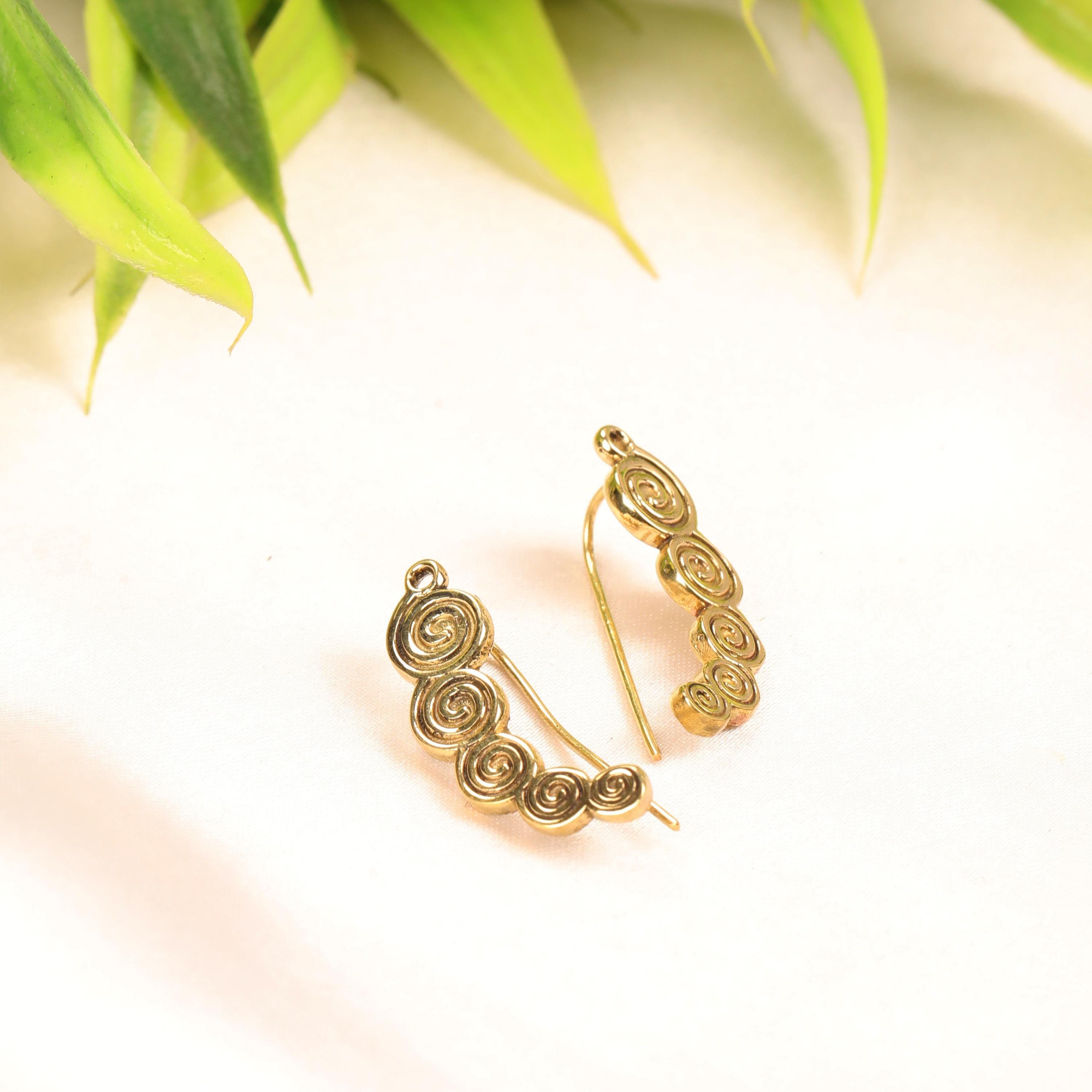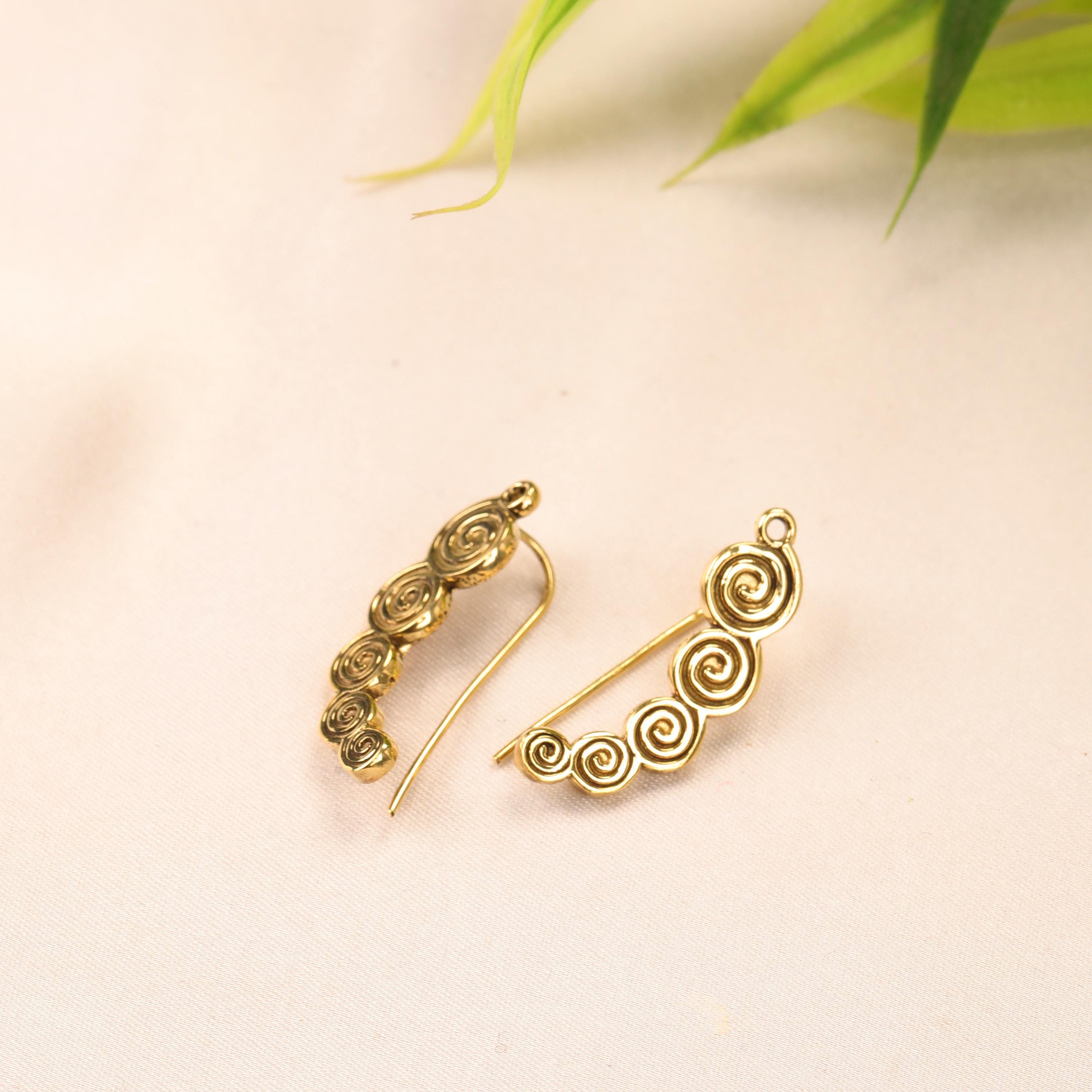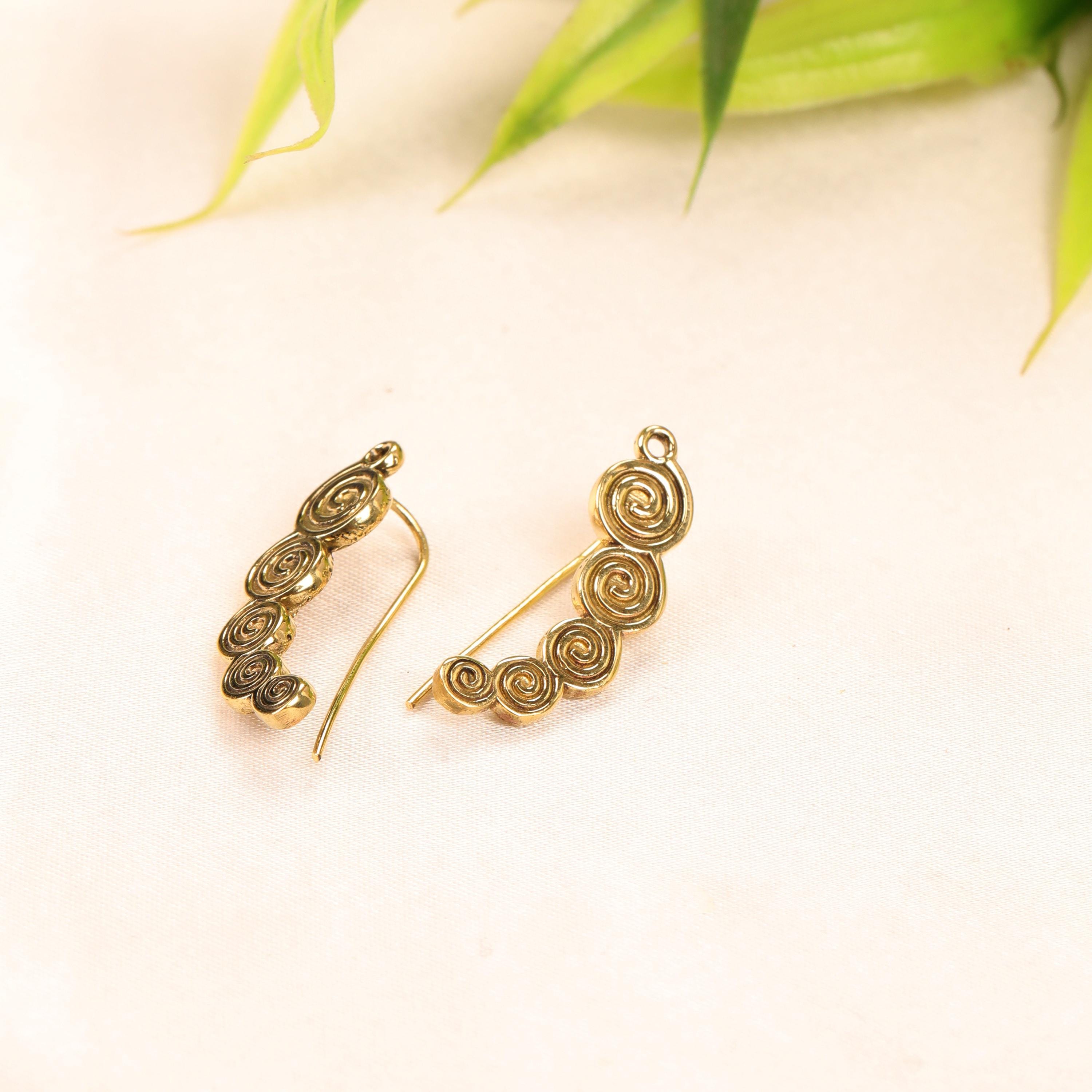 These boho spiral ear climber earrings combine minimalist design with ancient tribal symbolism. Crafted from solid brass, they feature a flowing spiral motif that gently follows the curve of the ear, creating a refined yet expressive look.