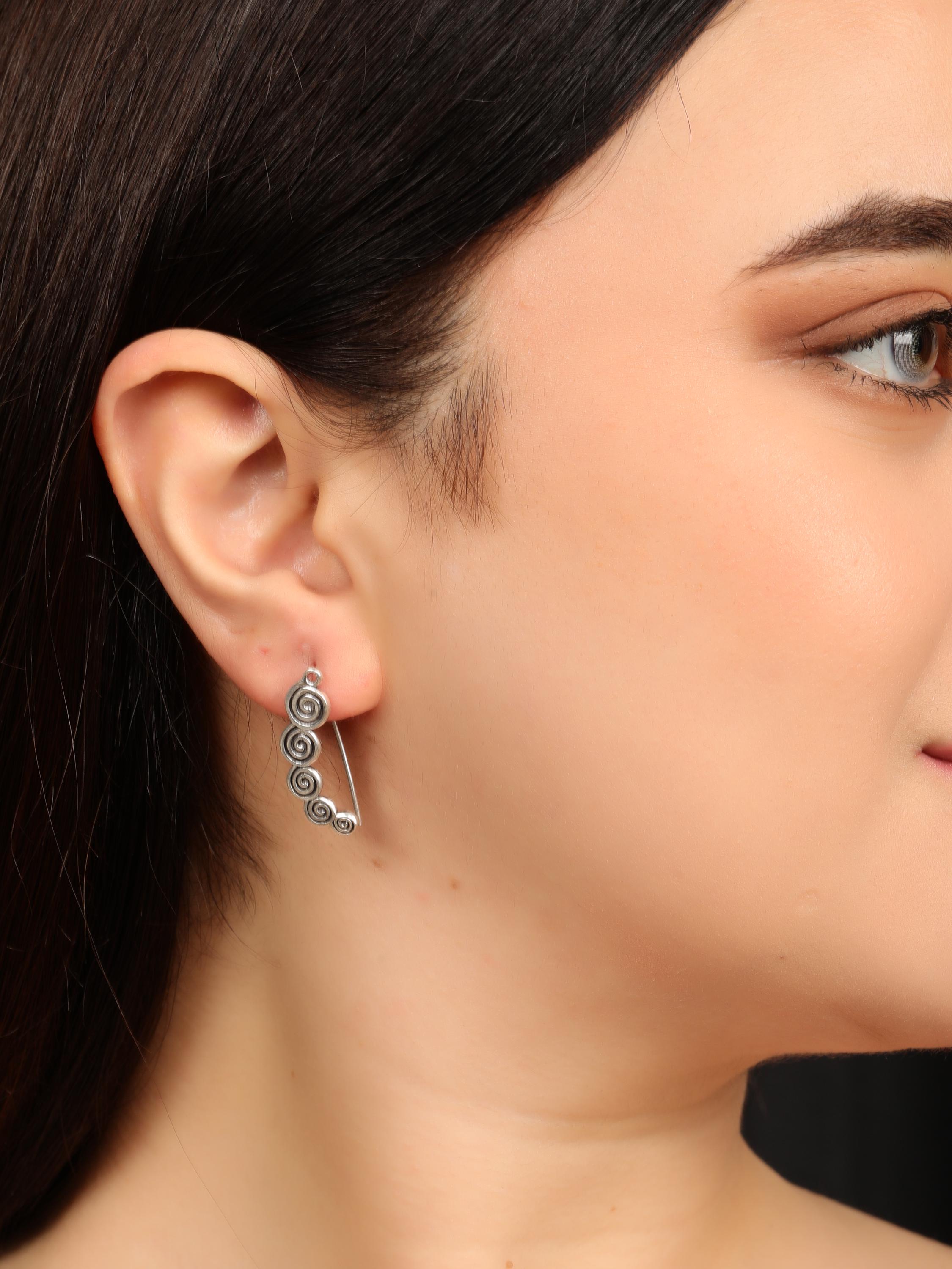 Inspired by nomadic and bohemian aesthetics, the spiral represents continuity, movement, and natural harmony. The design is lightweight and comfortable, making these ear crawlers perfect for everyday wear while still standing out as a statement piece.