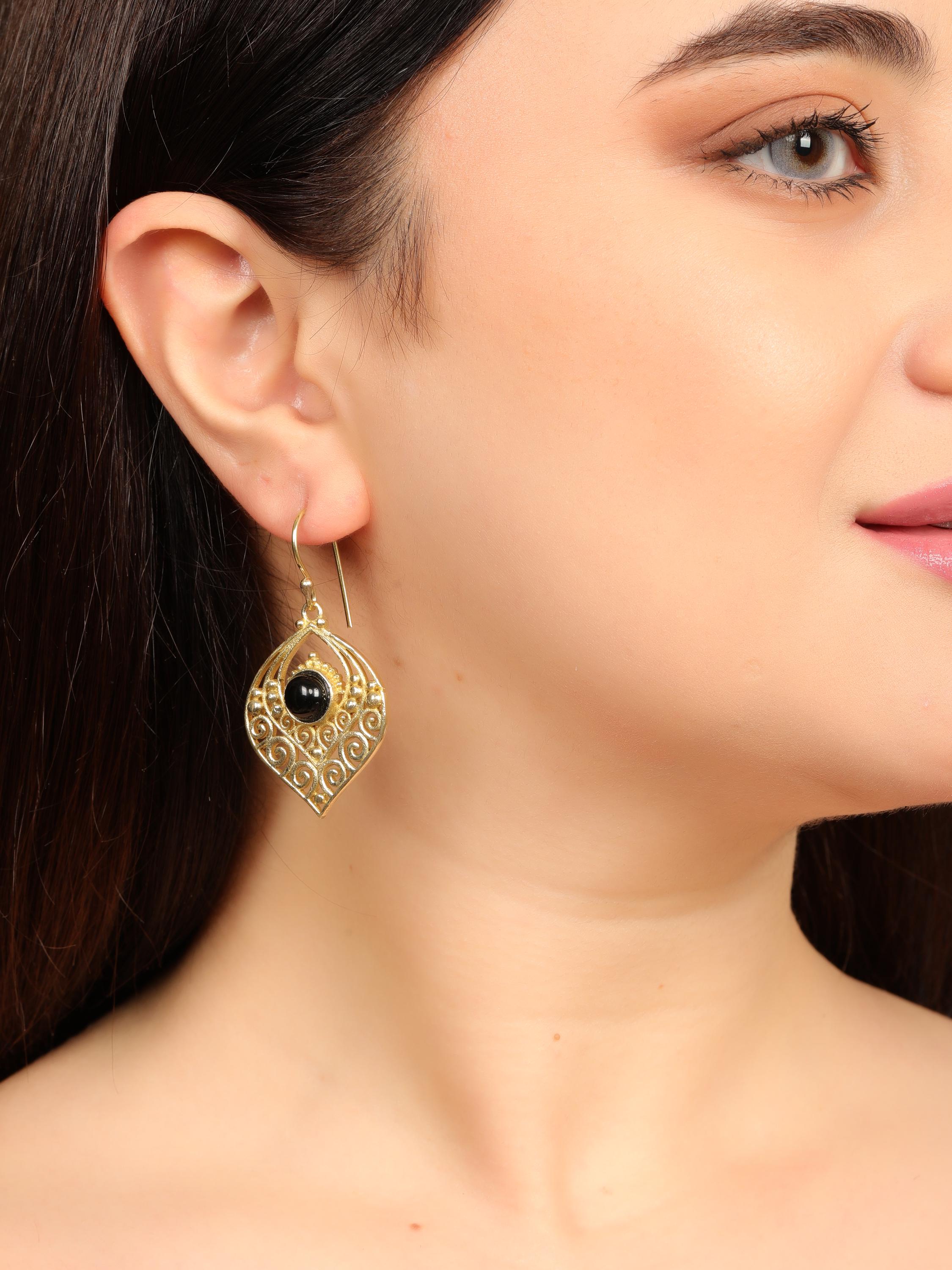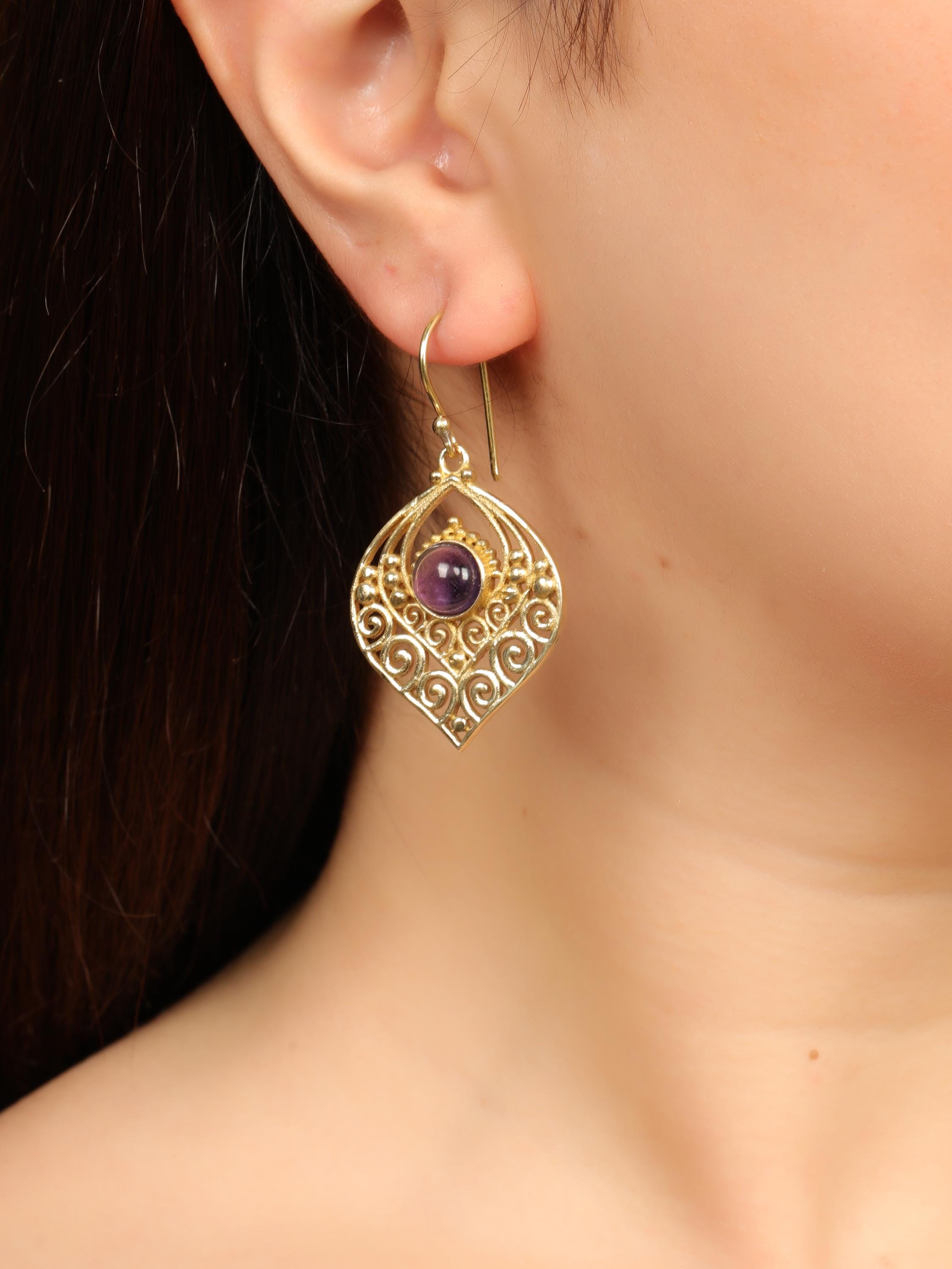 Celebrate timeless ethnic tribal boho design with these beautifully handcrafted brass earrings. Featuring an ornate open teardrop silhouette, these earrings are inspired by ancient tribal motifs and traditional artisan metalwork. The intricate scroll and granulated detailing reflects cultural heritage while offering a bold yet elegant statement.