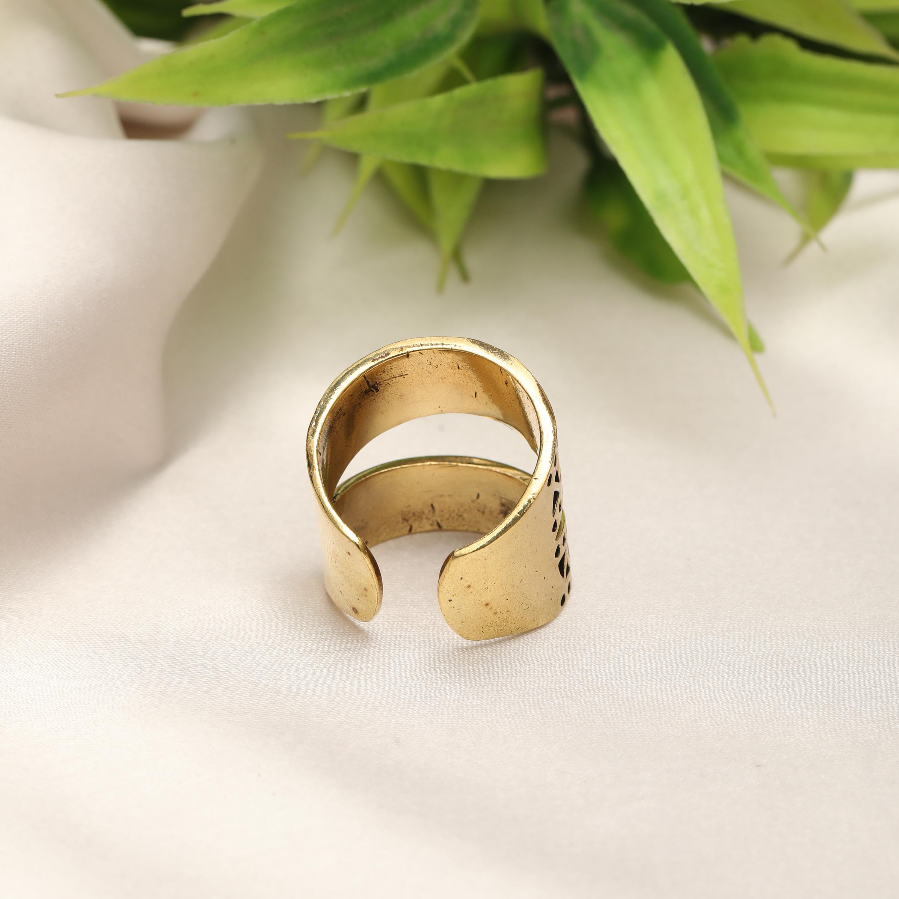 Designed as an open adjustable ring, it offers a comfortable fit and adapts easily to different finger sizes. This piece works beautifully as a statement ring, yet remains understated enough for everyday wear. Its balanced geometry makes it ideal for modern, boho, ethnic, and minimalist styles.