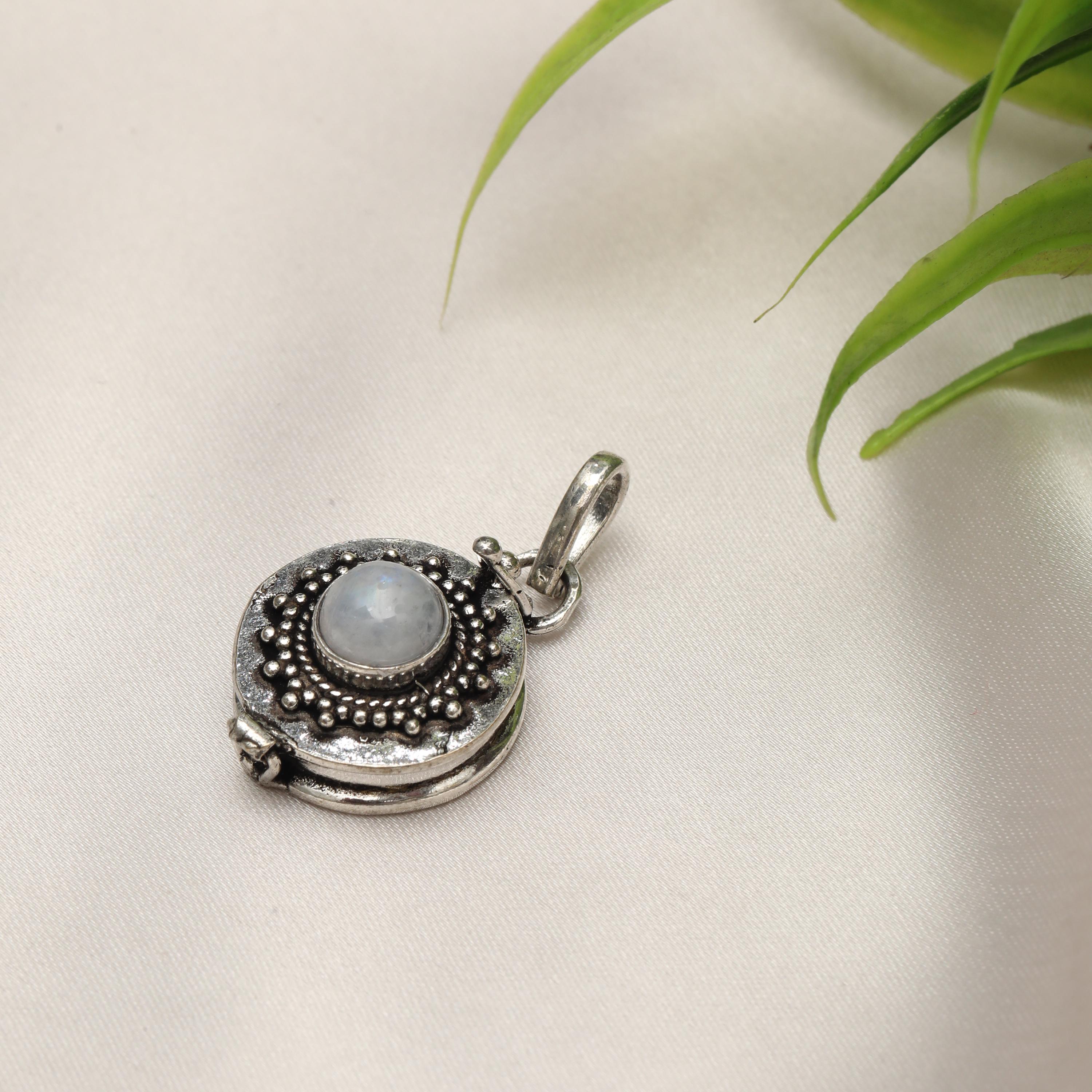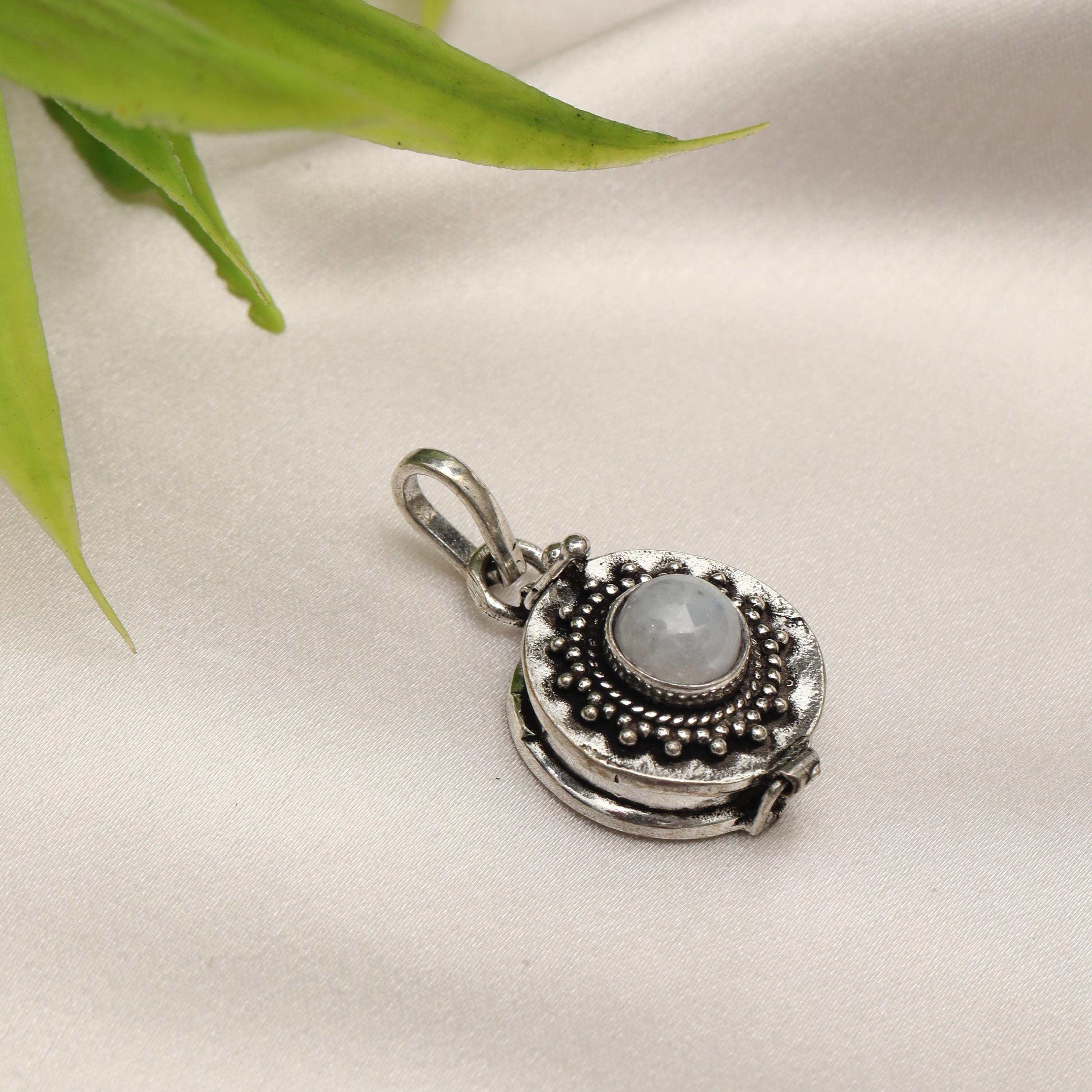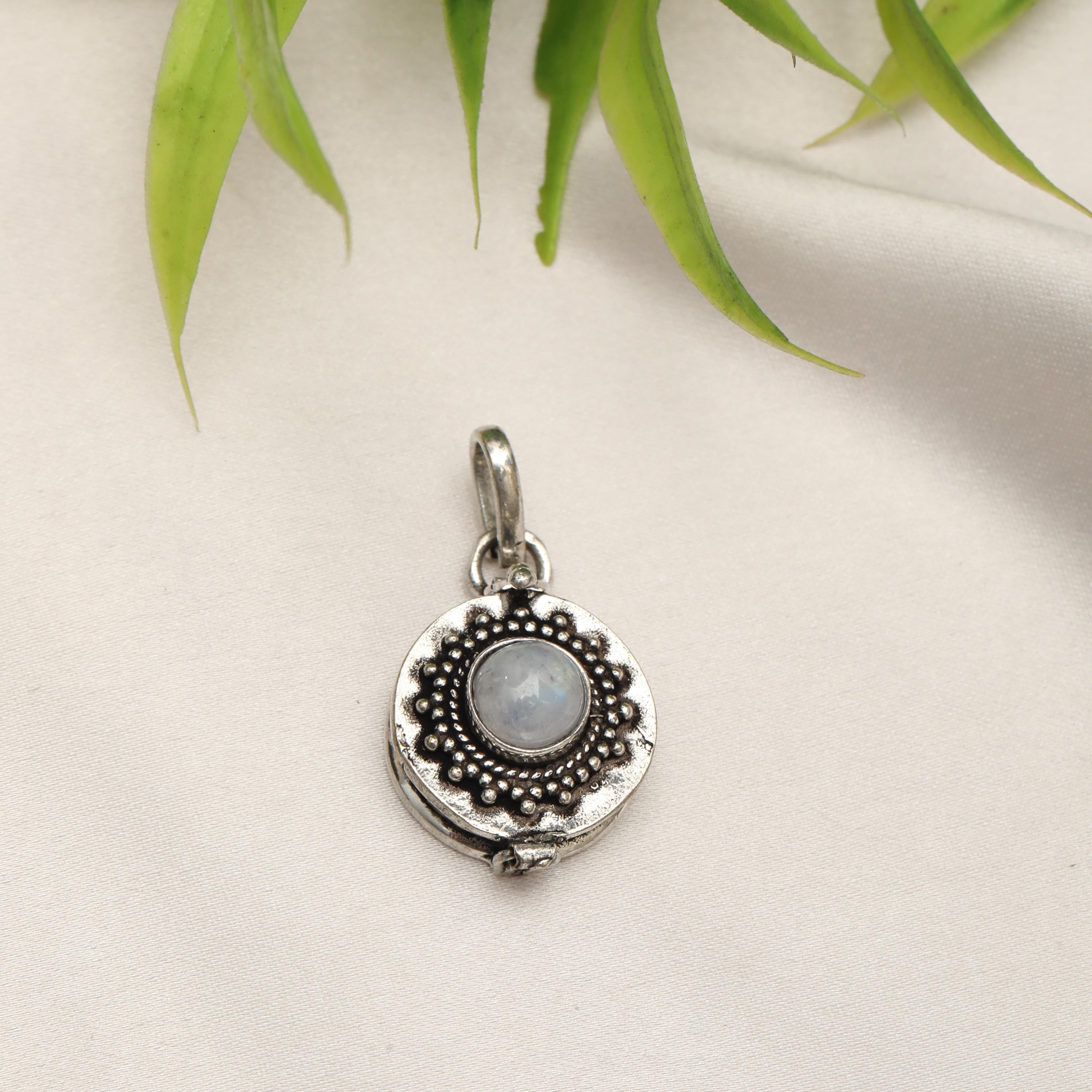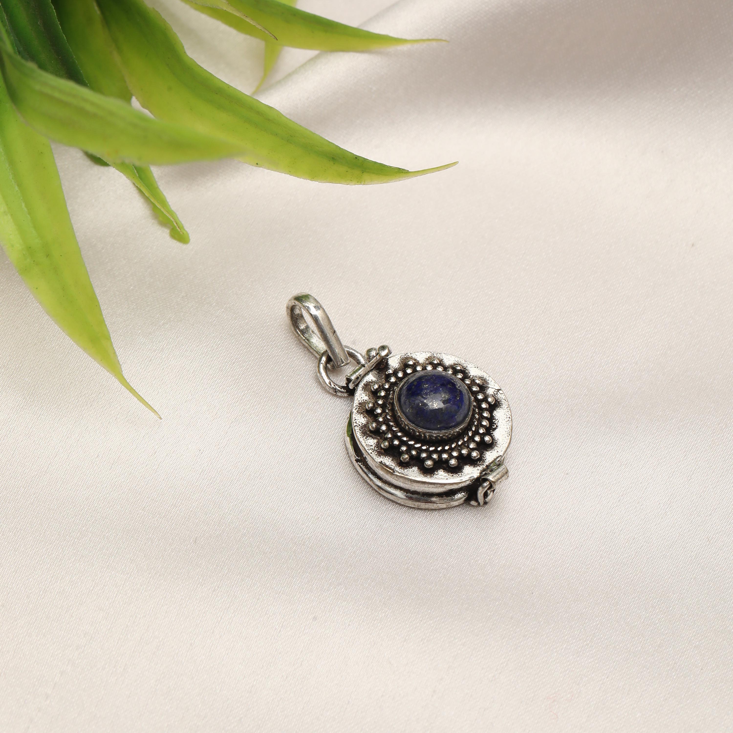This silver tone box pendant is a statement piece inspired by ancient tribal adornments and traditional artisan metalwork. Crafted from solid brass and finished in an oxidized silver tone, it features a round, structured form that opens into a small box or locket, blending functionality with symbolic beauty.