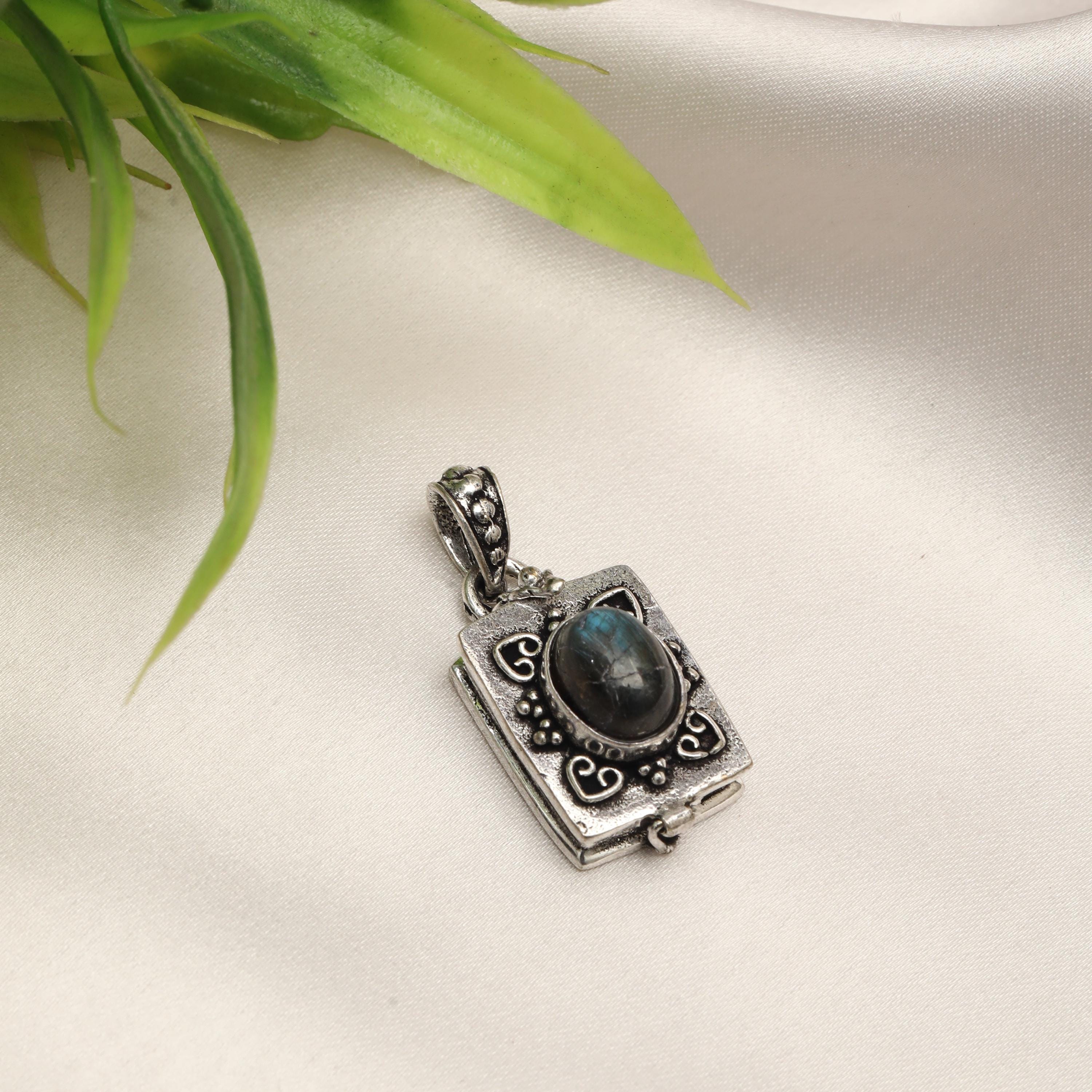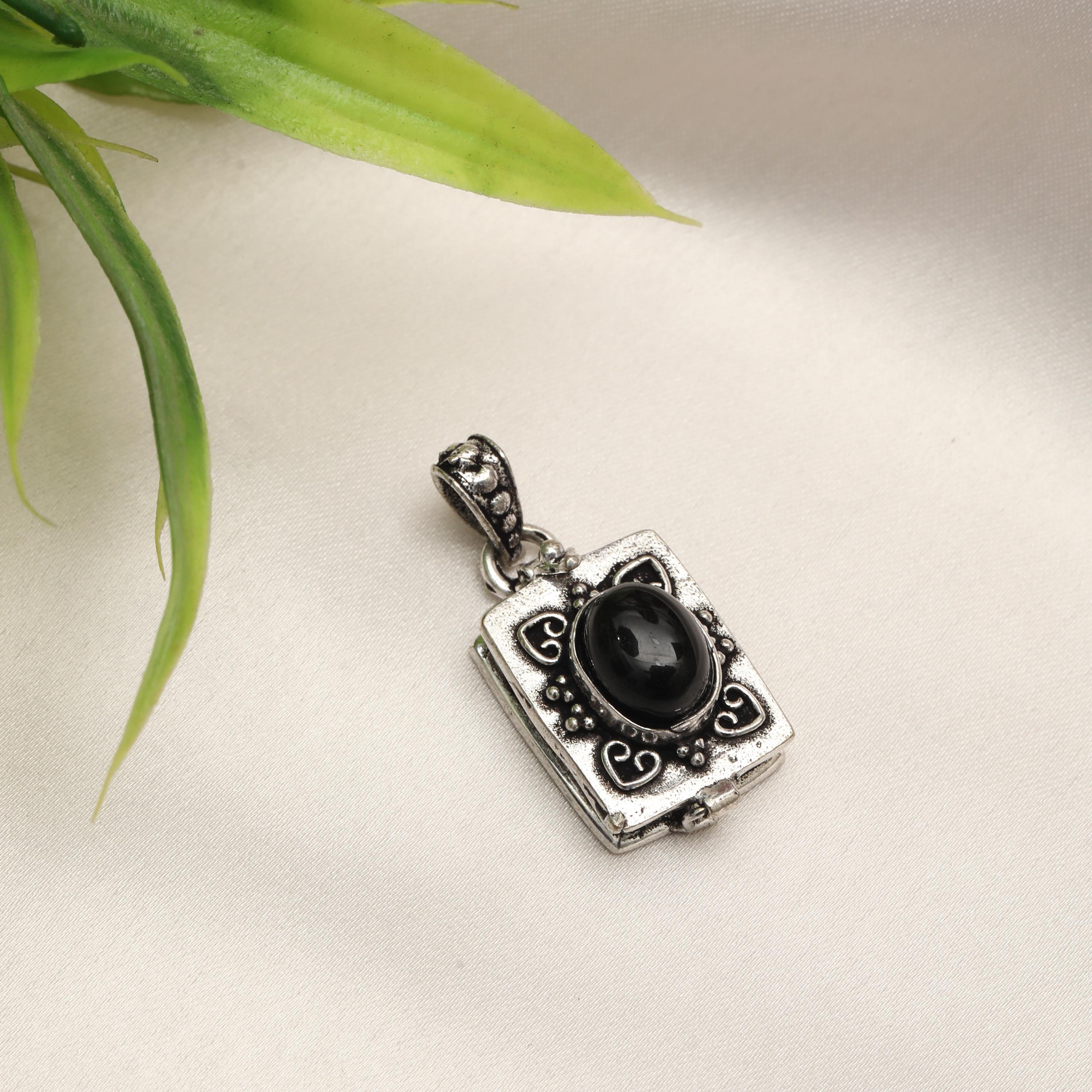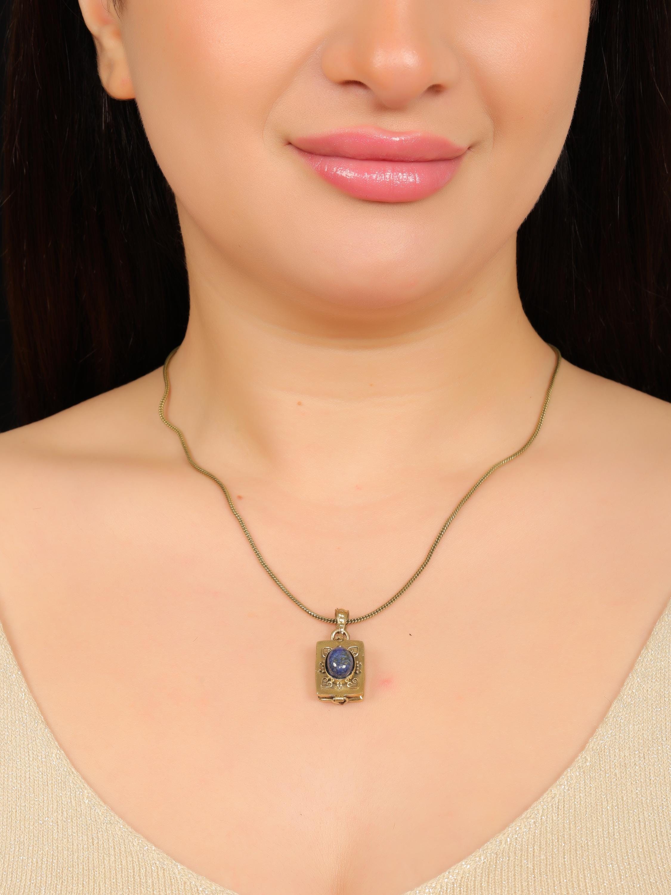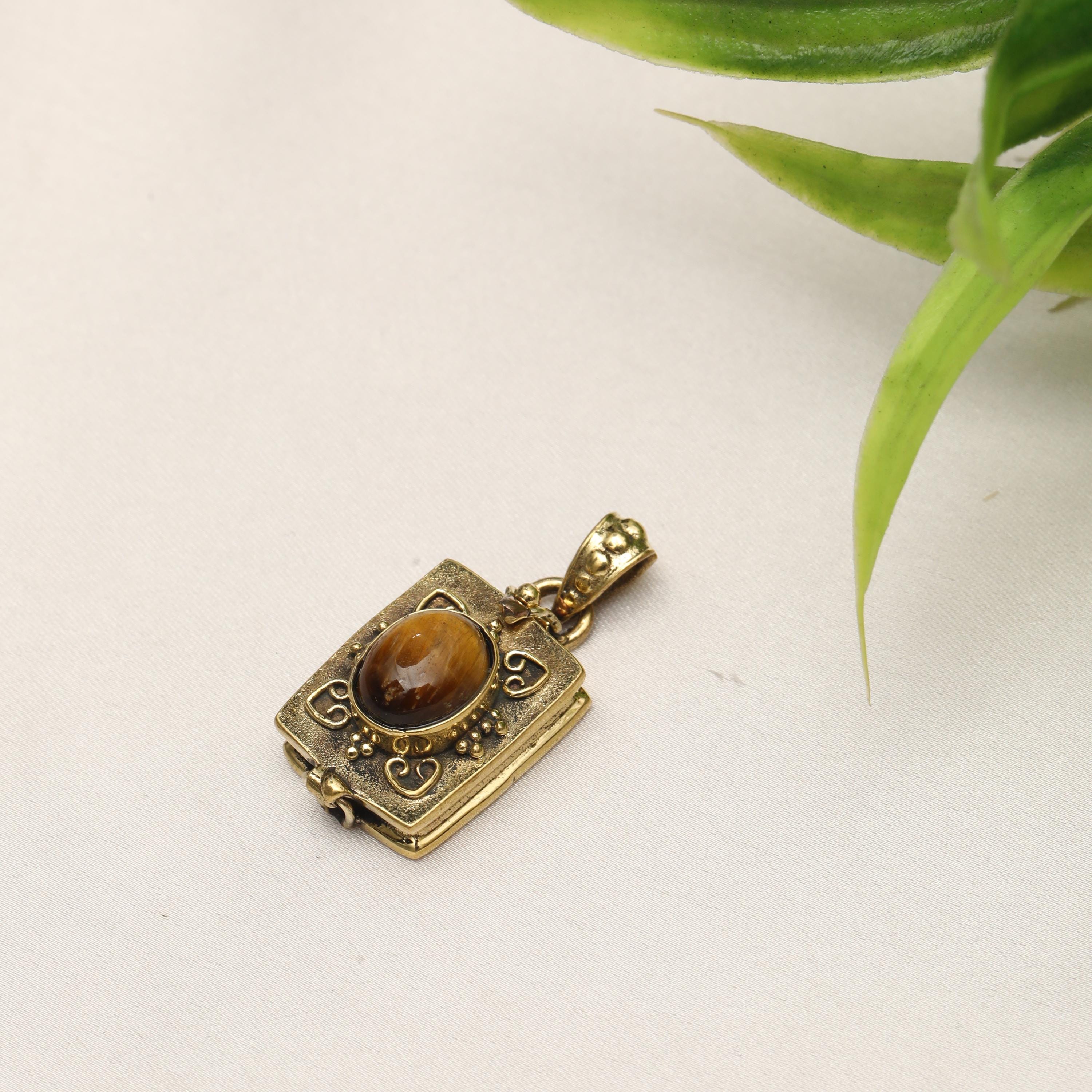 Made from solid brass, this pendant is available in both gold-tone brass and silver-tone brass, allowing easy styling with different outfits and other jewelry pieces. The locket-style construction opens discreetly, adding both meaning and functionality to the design.