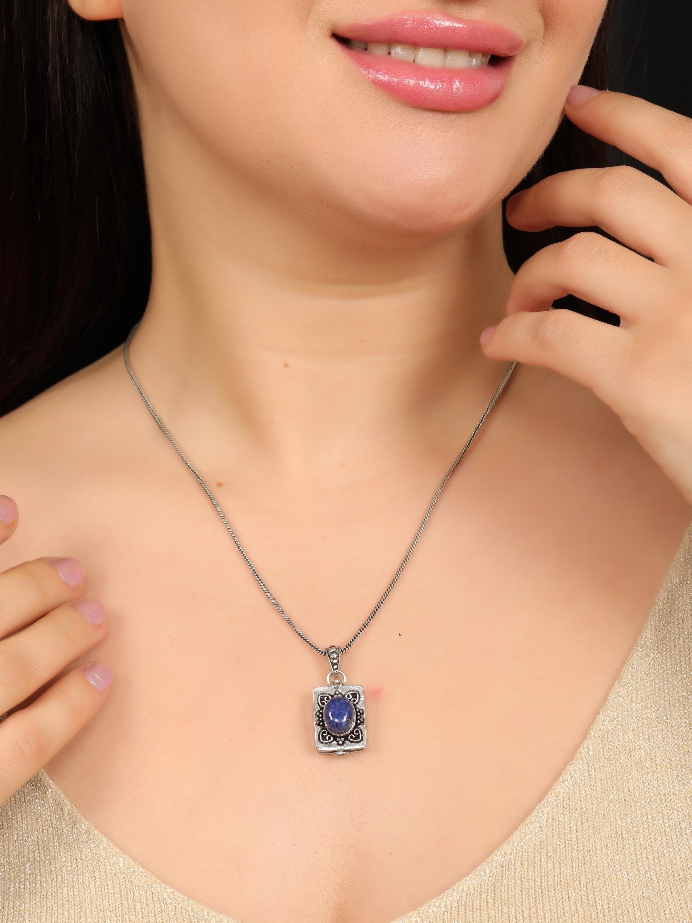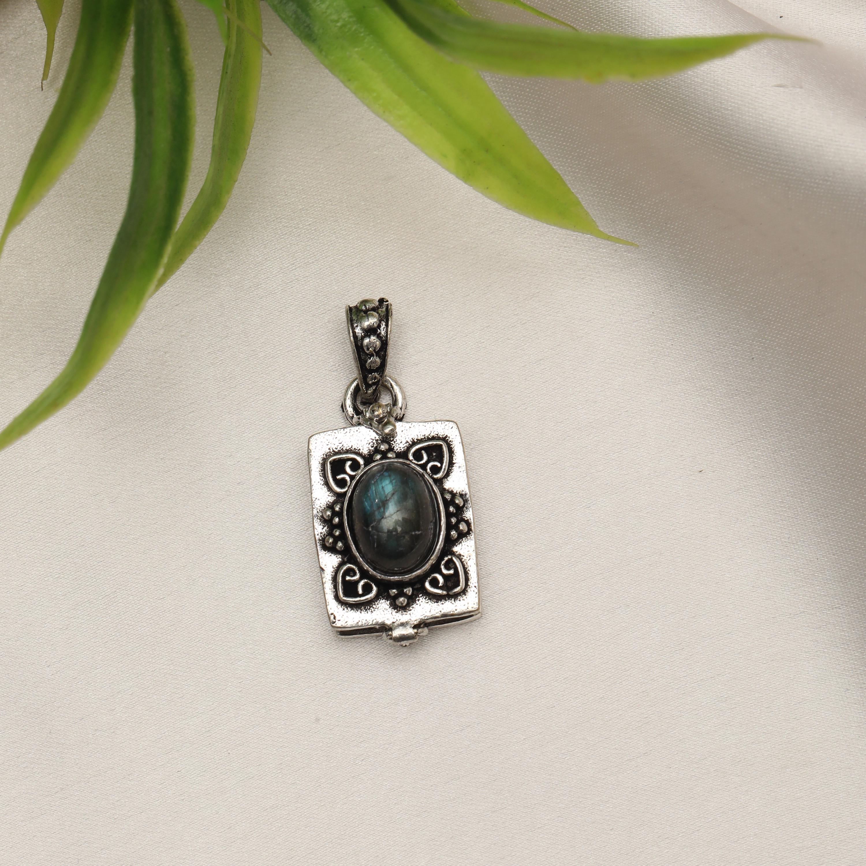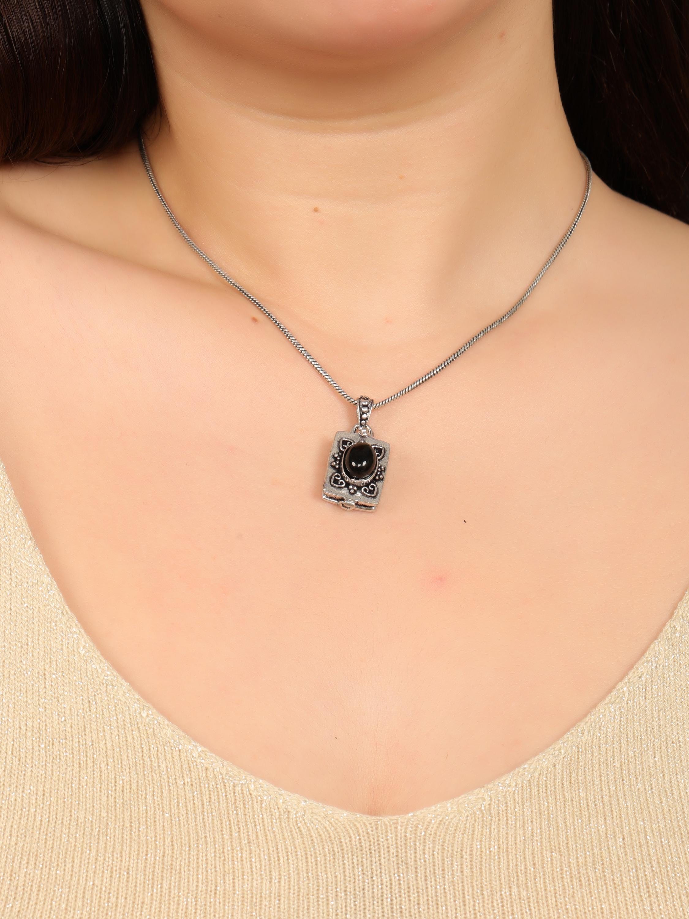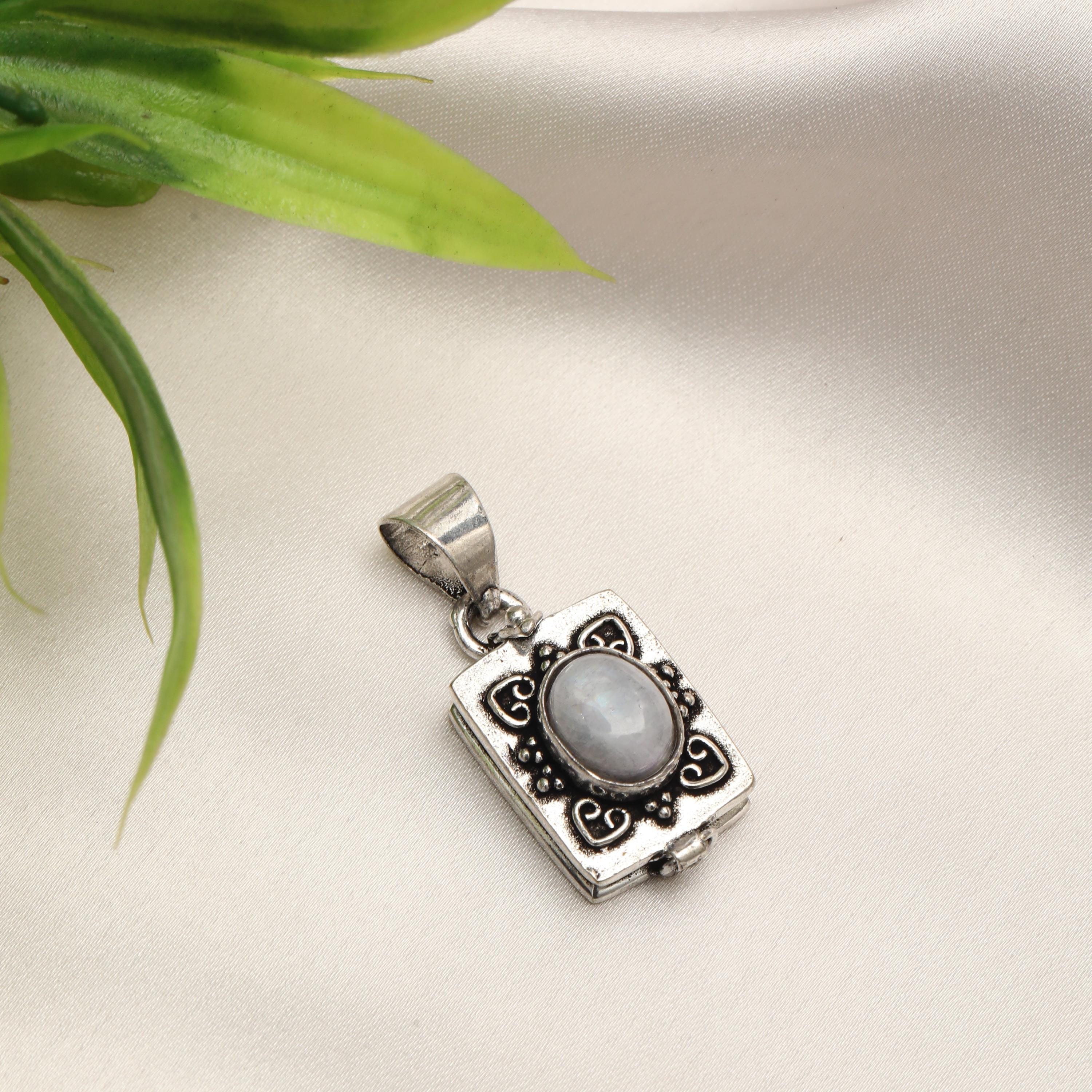 Made from solid brass, this pendant is available in both gold-tone brass and silver-tone brass, allowing easy styling with different outfits and other jewelry pieces. The locket-style construction opens discreetly, adding both meaning and functionality to the design.