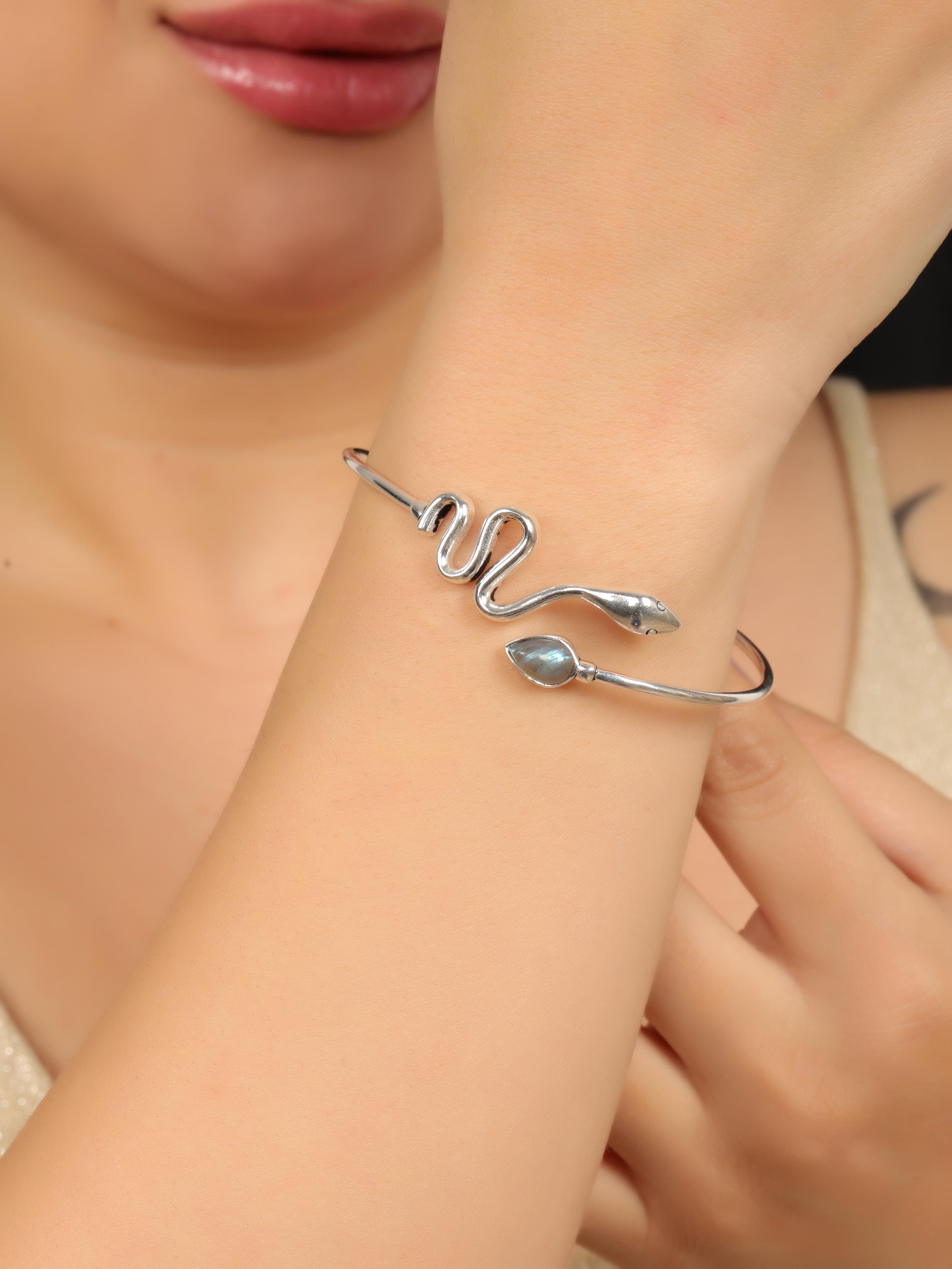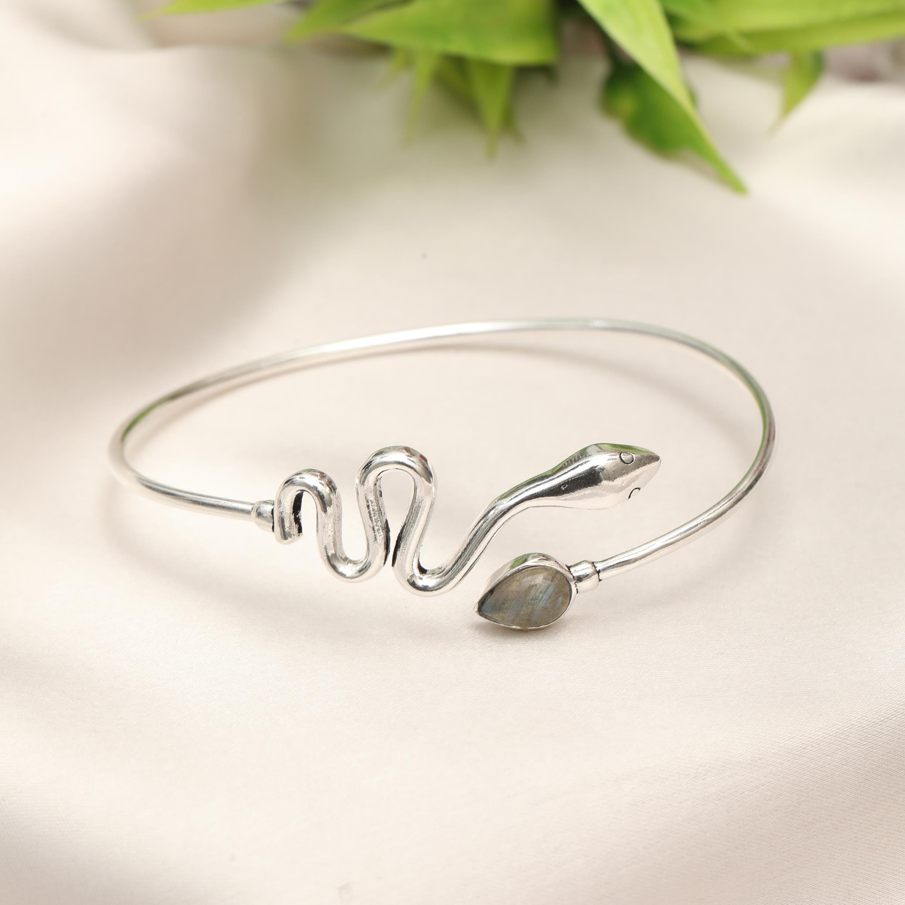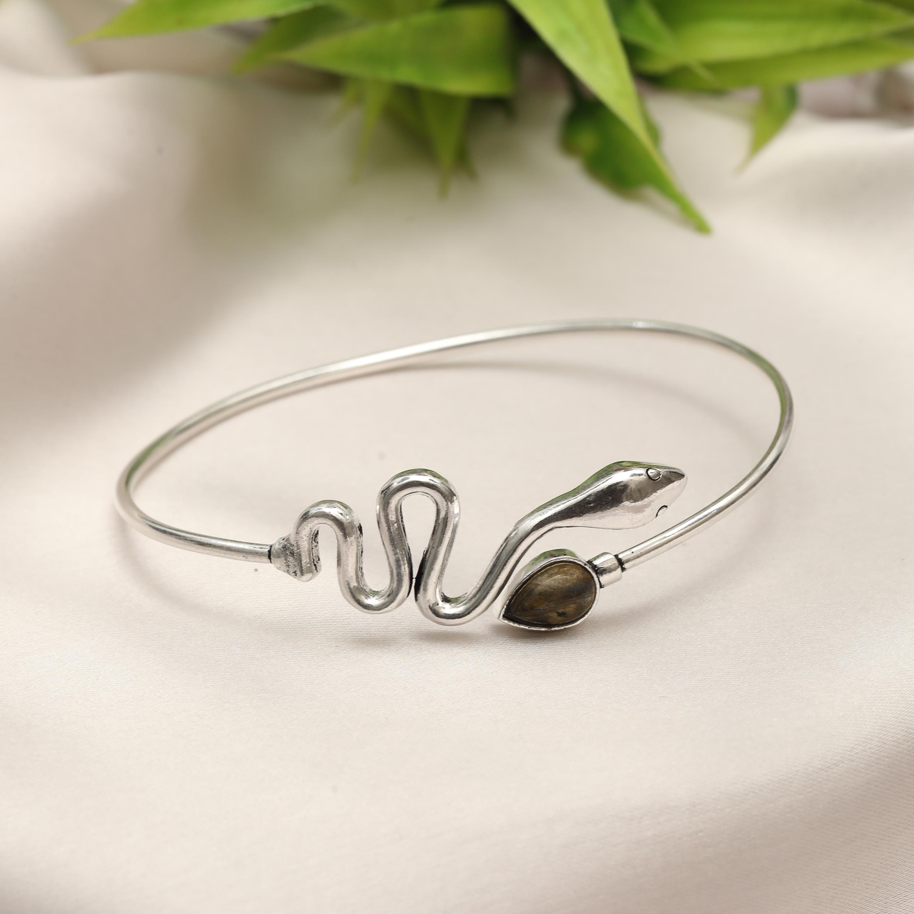 Available in multiple natural stone options, this bracelet allows you to choose a gemstone that reflects your personal style, spiritual meaning, or birthstone. Whether worn alone as a bold statement or layered with other bangles, this serpent cuff is perfect for boho, mystical, and nature-inspired jewelry lovers.