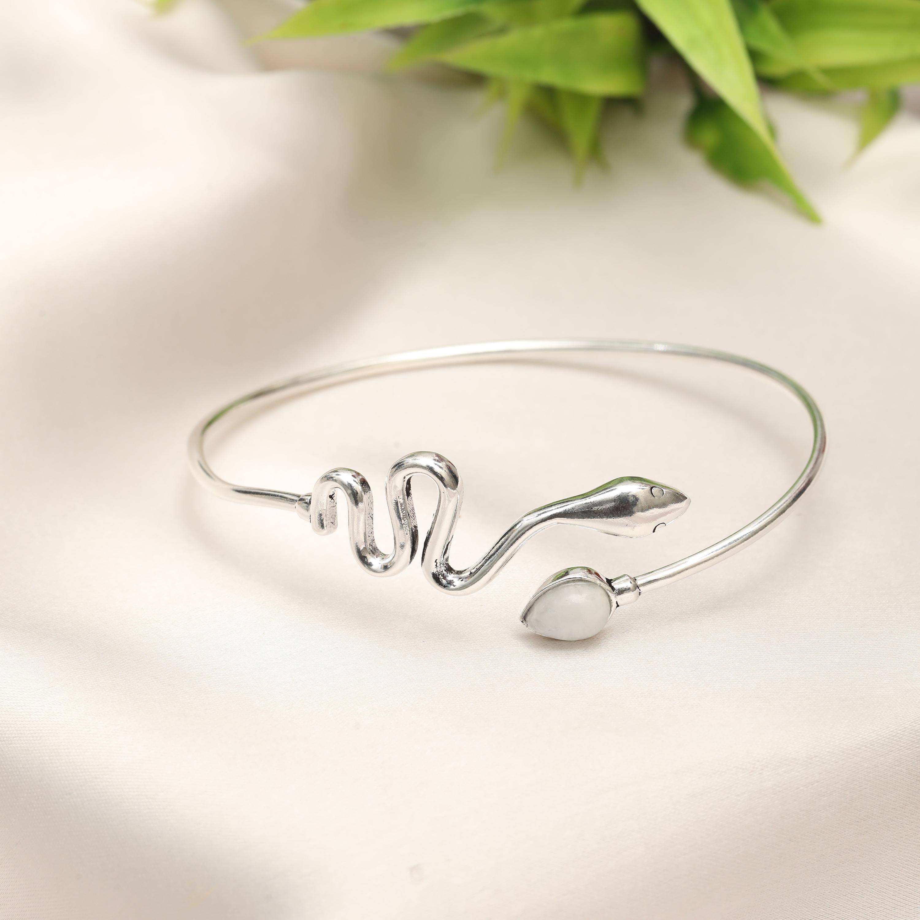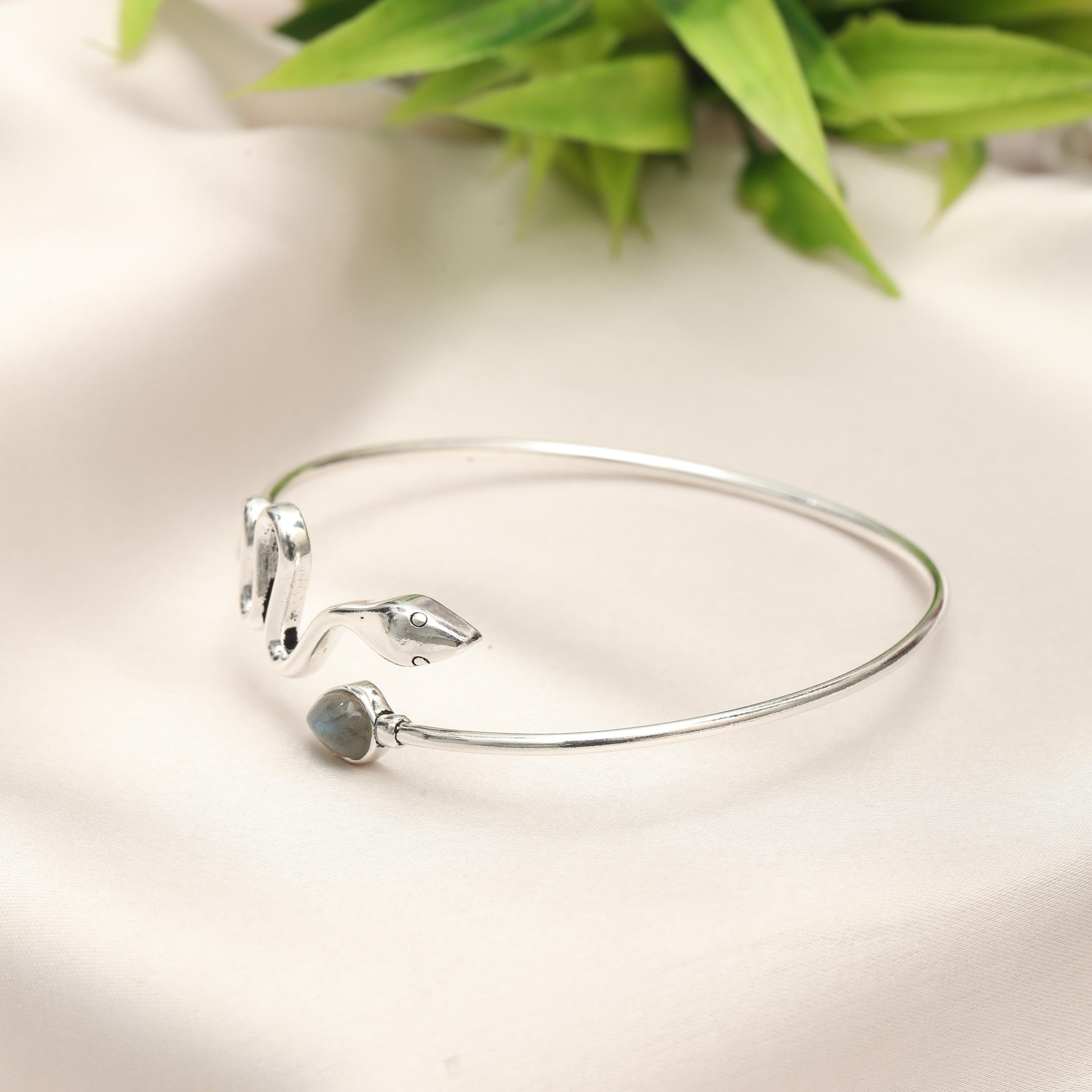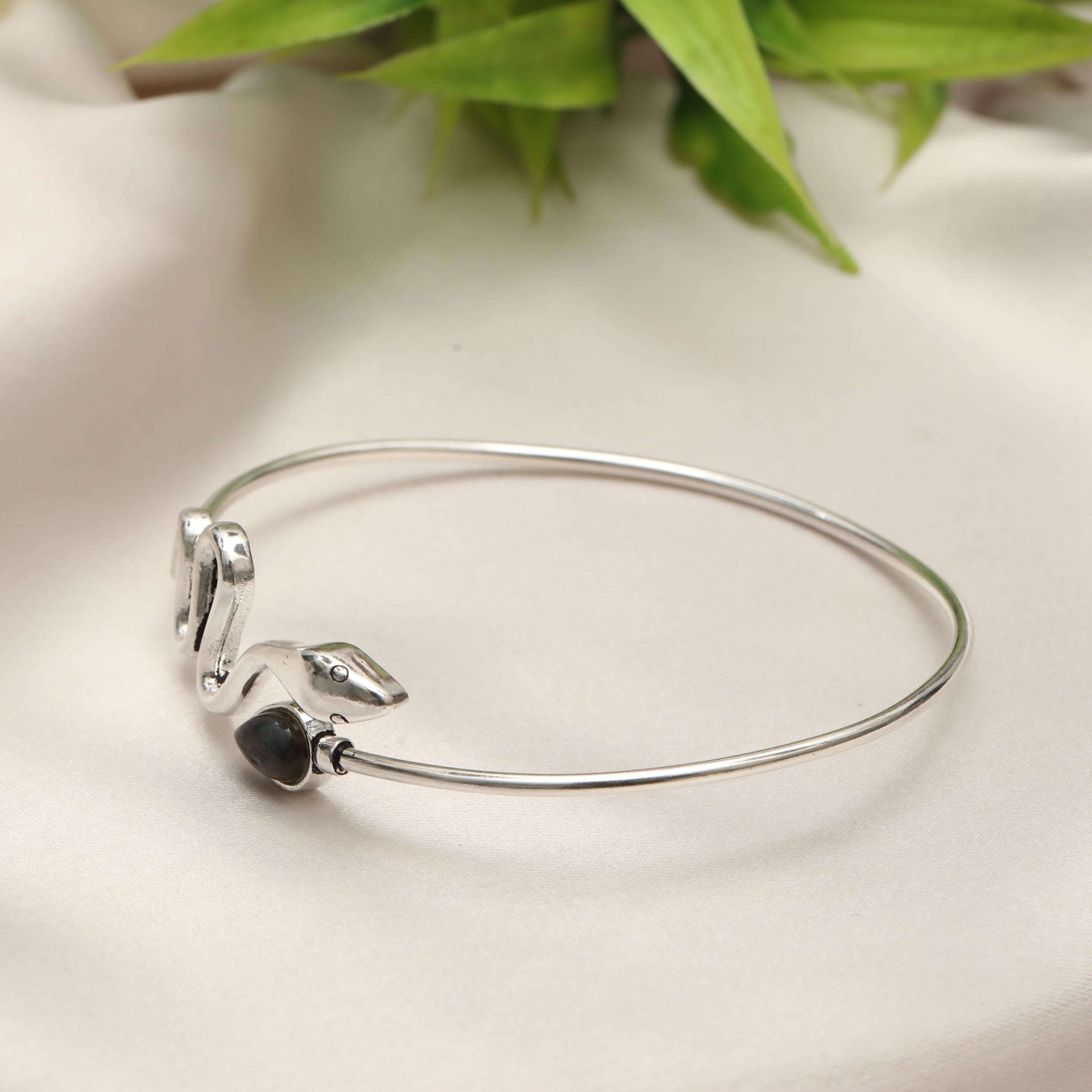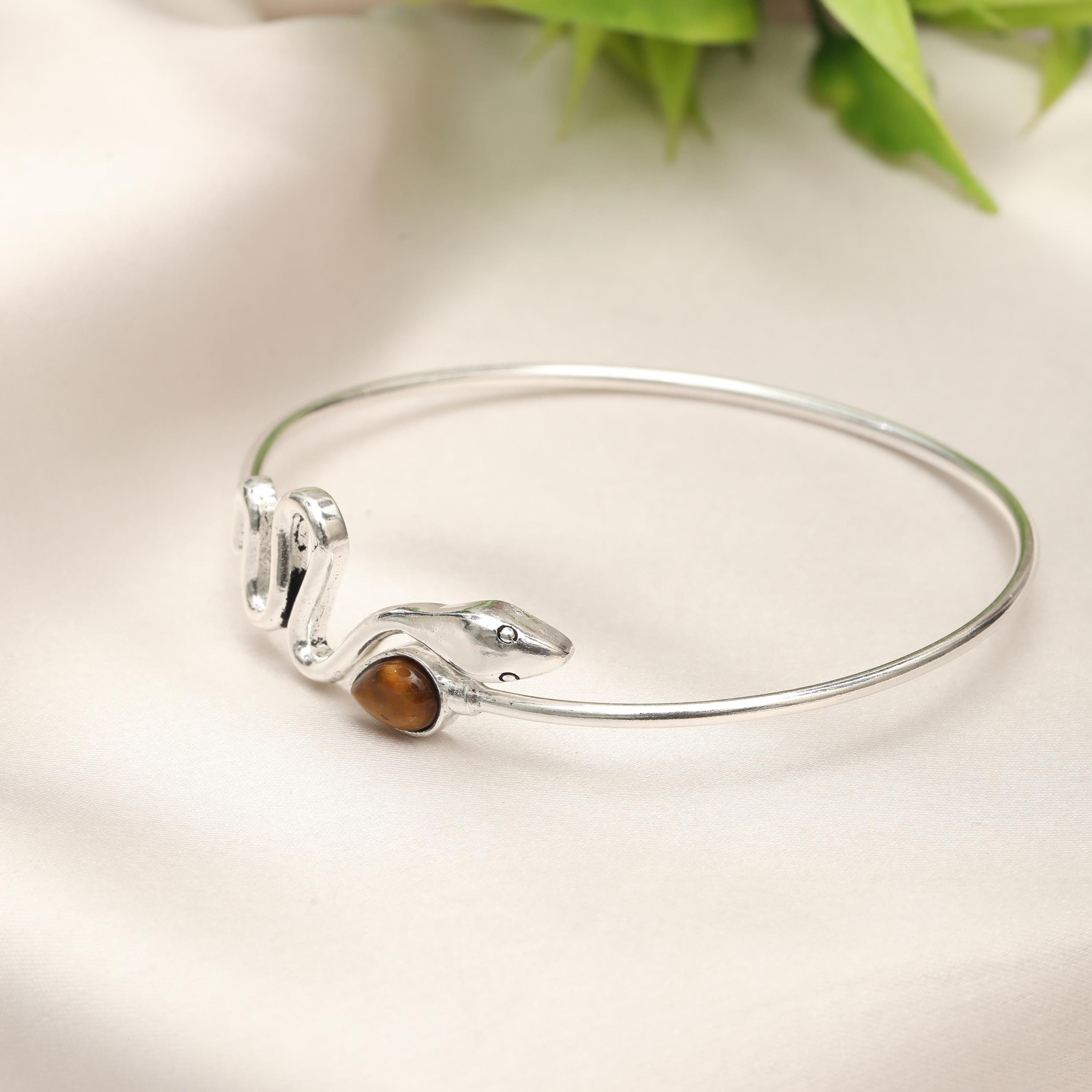 Available in multiple natural stone options, this bracelet allows you to choose a gemstone that reflects your personal style, spiritual meaning, or birthstone. Whether worn alone as a bold statement or layered with other bangles, this serpent cuff is perfect for boho, mystical, and nature-inspired jewelry lovers.