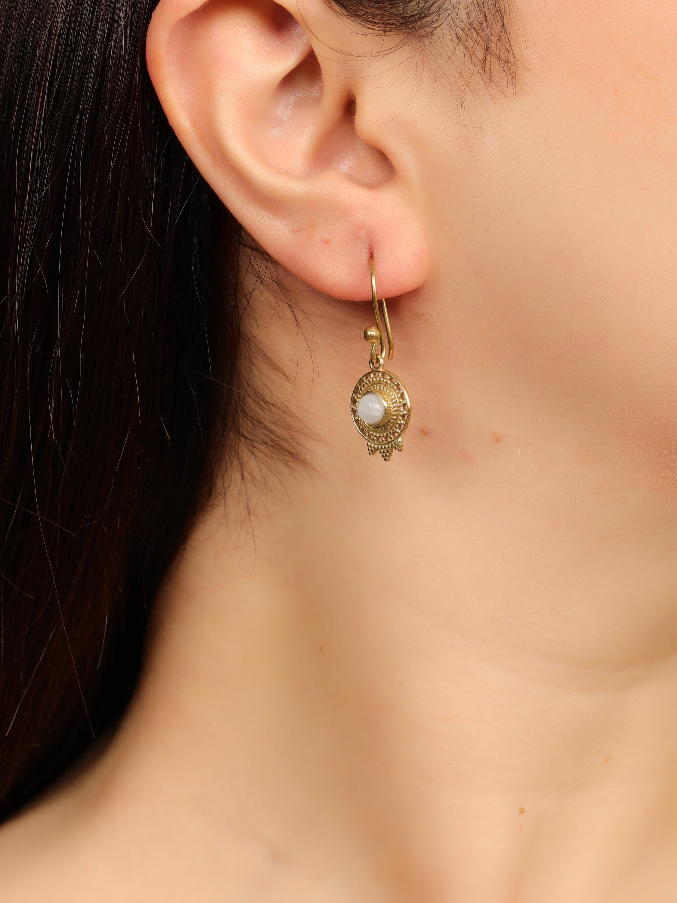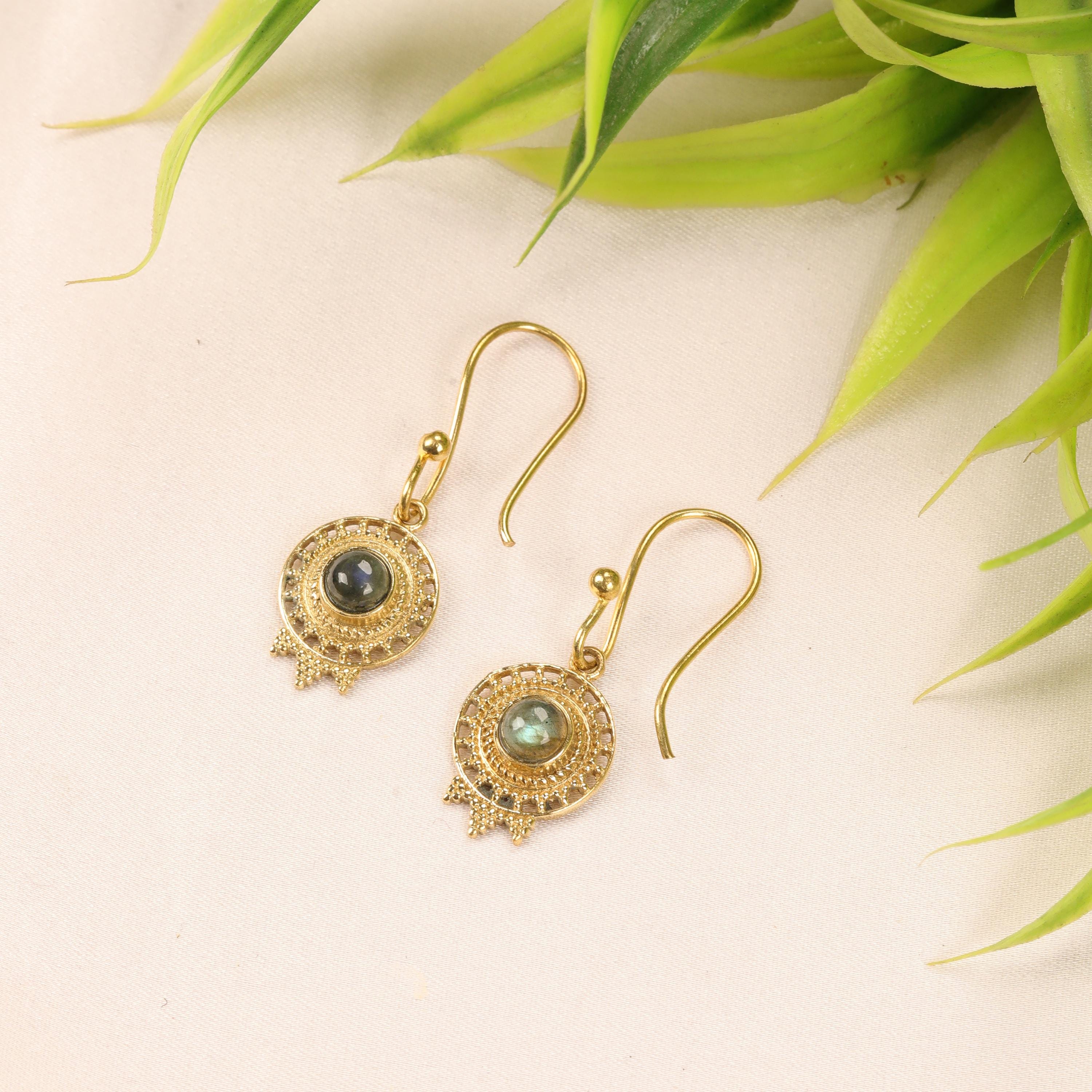 Every pair is carefully handmade, resulting in slight variations that highlight the artisanal nature of the earrings. The organic detailing and natural stone ensure that no two pairs are exactly alike, giving you a truly unique piece of jewelry.
