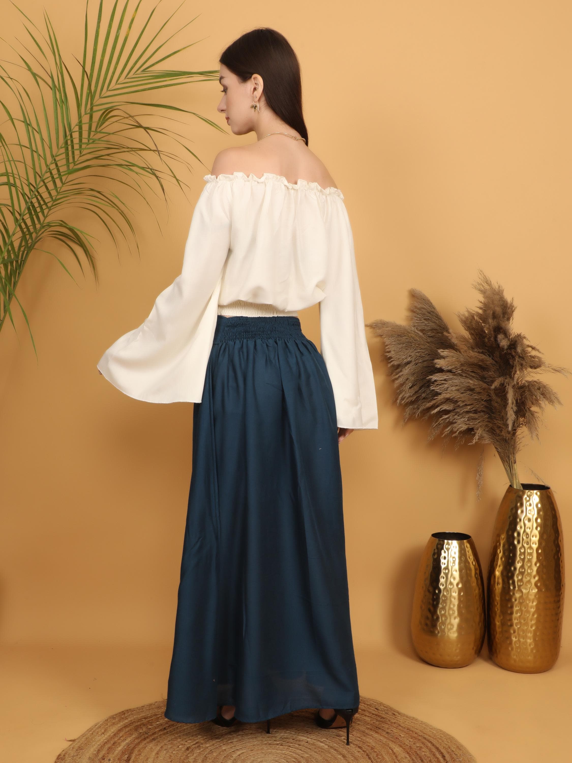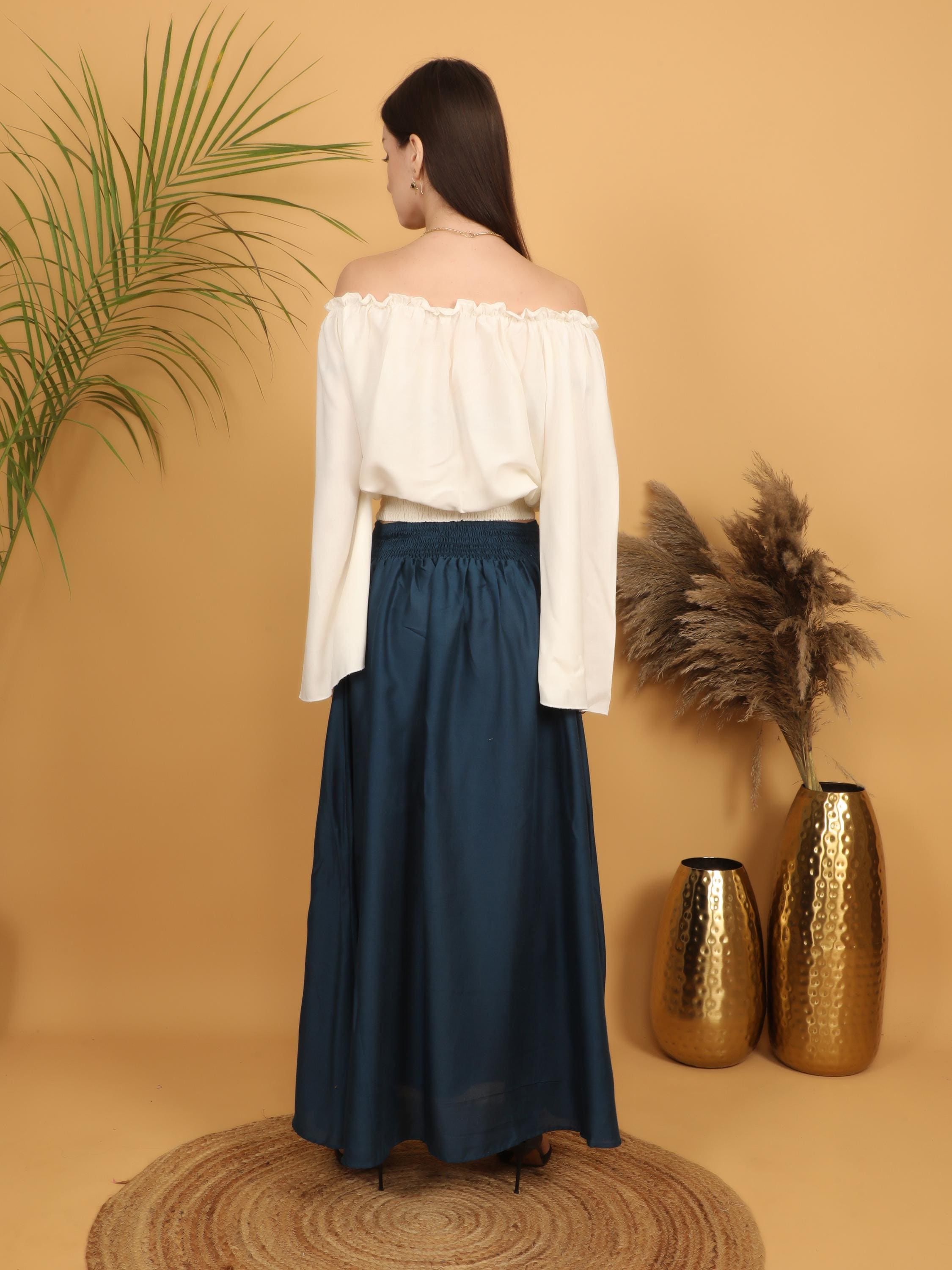 Romantic, dramatic, and effortlessly wearable, this viscose maxi skirt blends medieval charm with free-spirited elegance, making it a standout statement piece for any festival wardrobe.