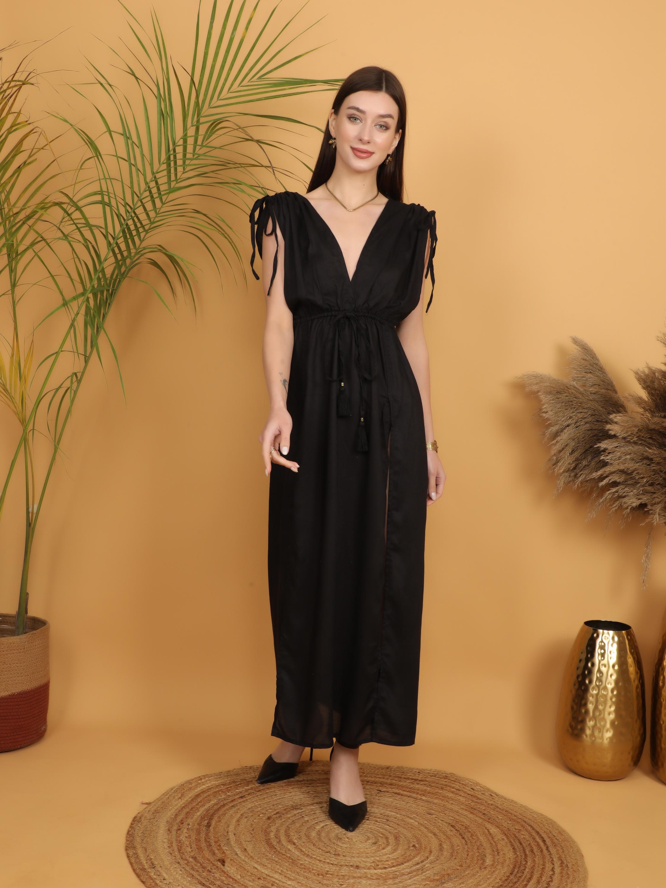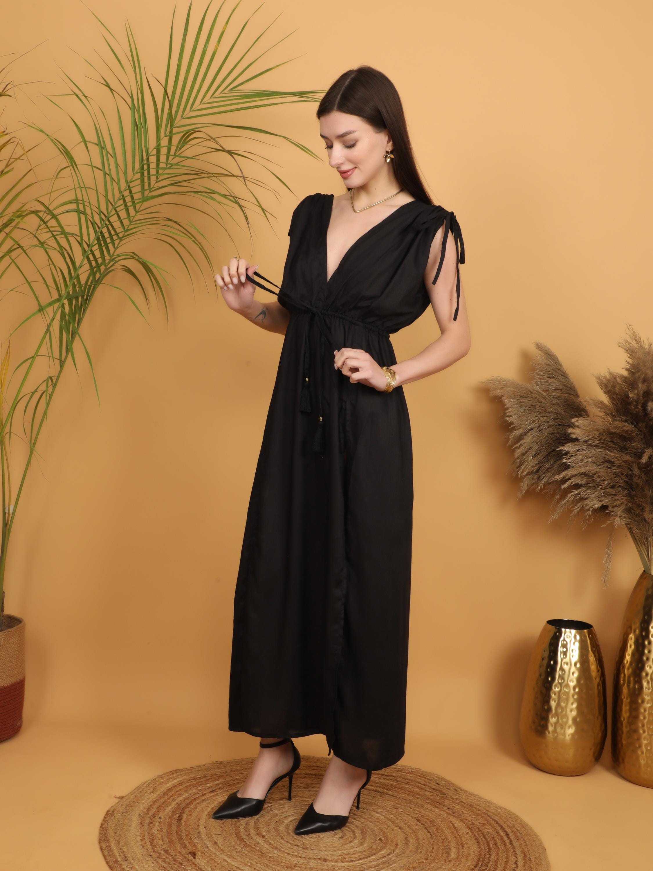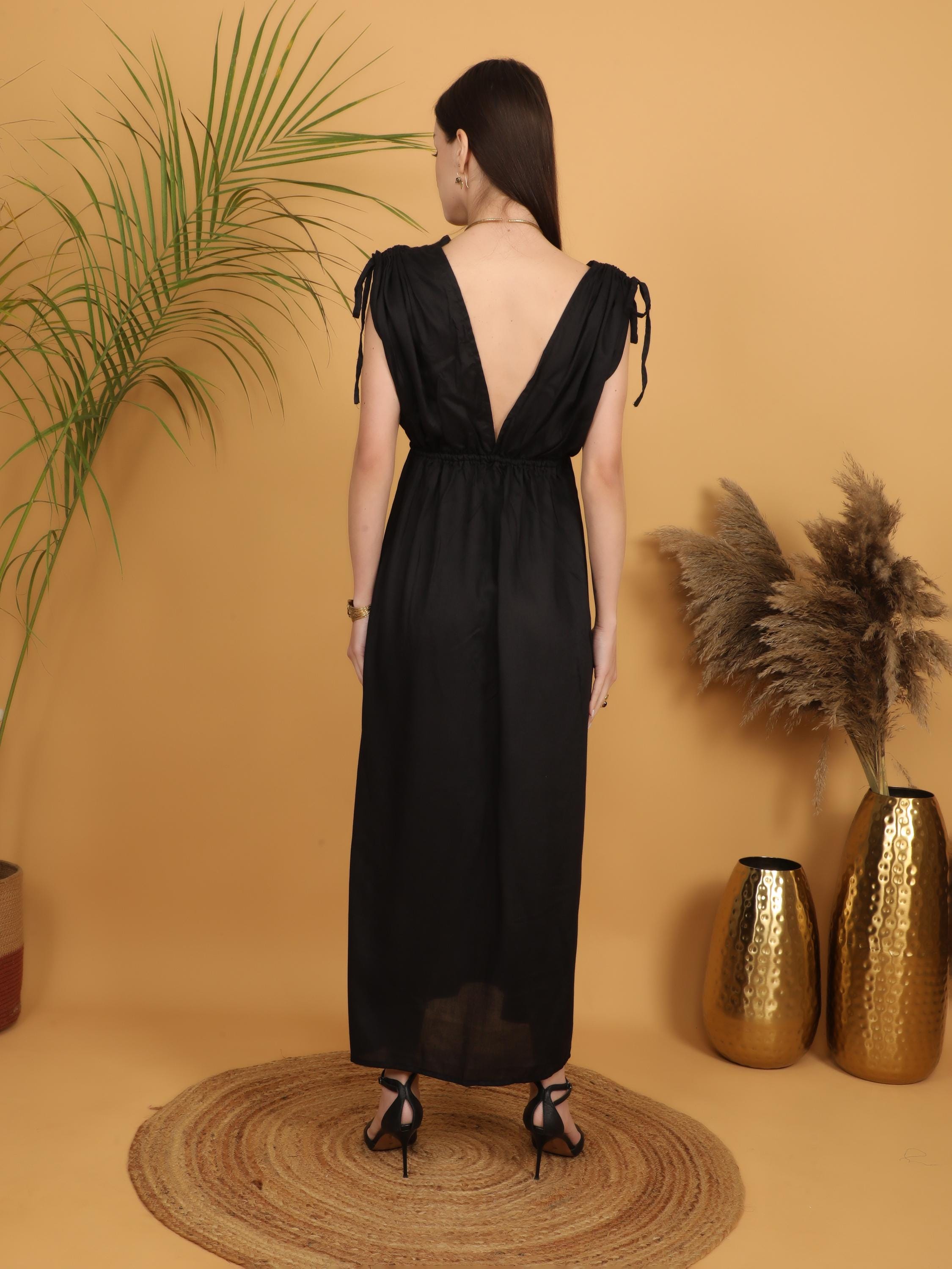 Effortlessly chic and beautifully fluid, this black boho maxi dress is designed to move with you. Crafted from soft, breathable viscose, it drapes naturally over the body, creating a flattering and feminine silhouette.