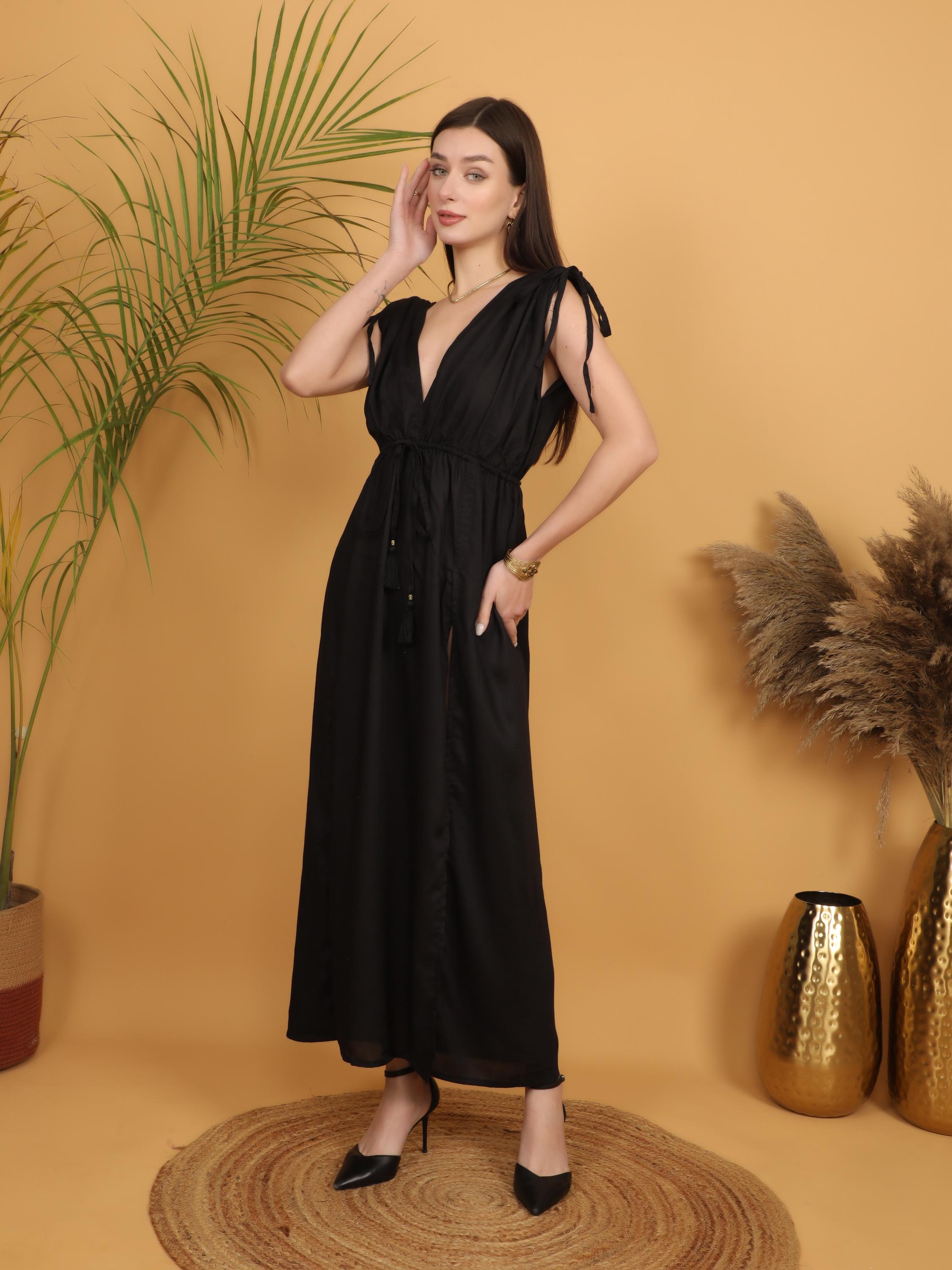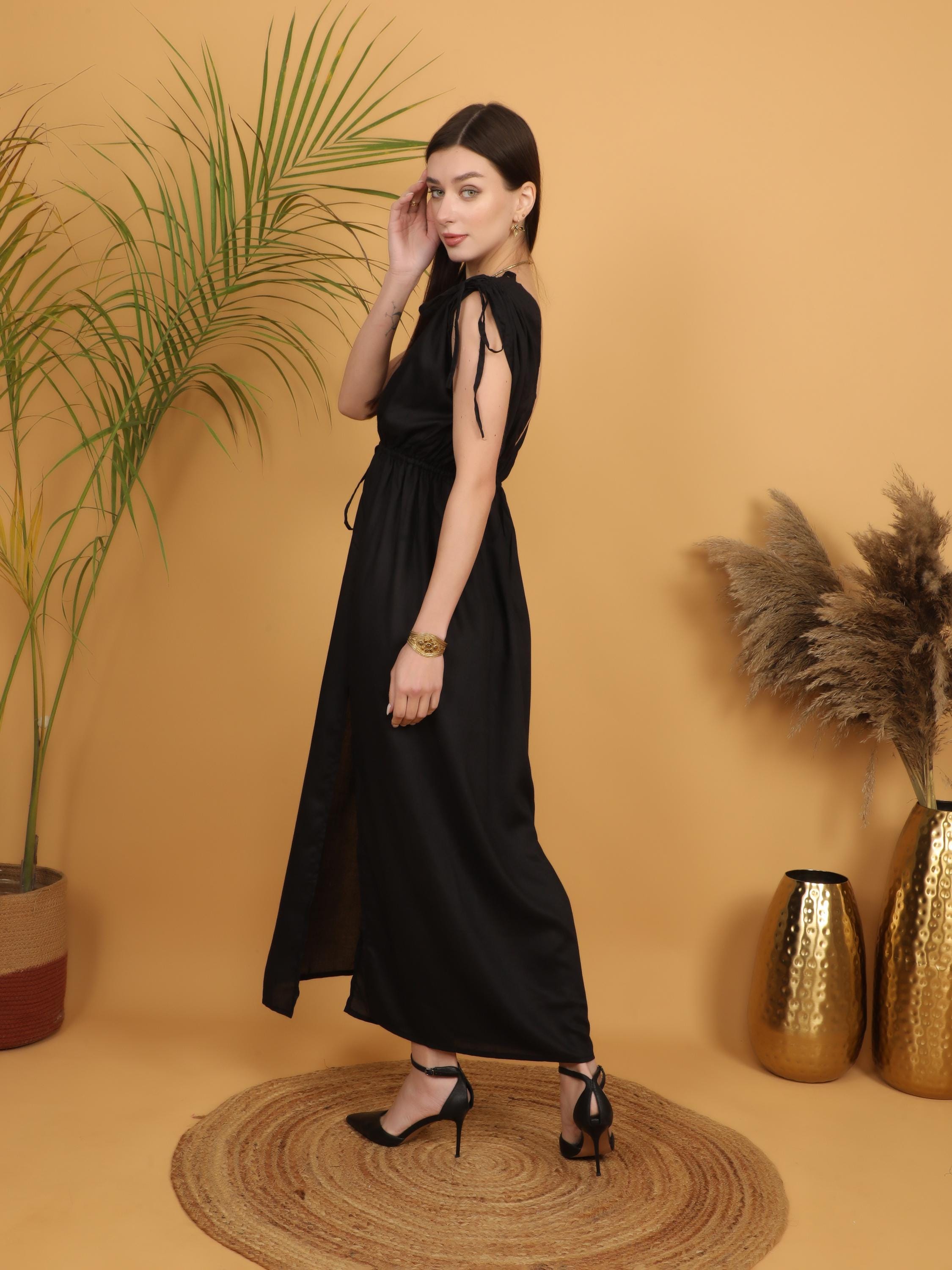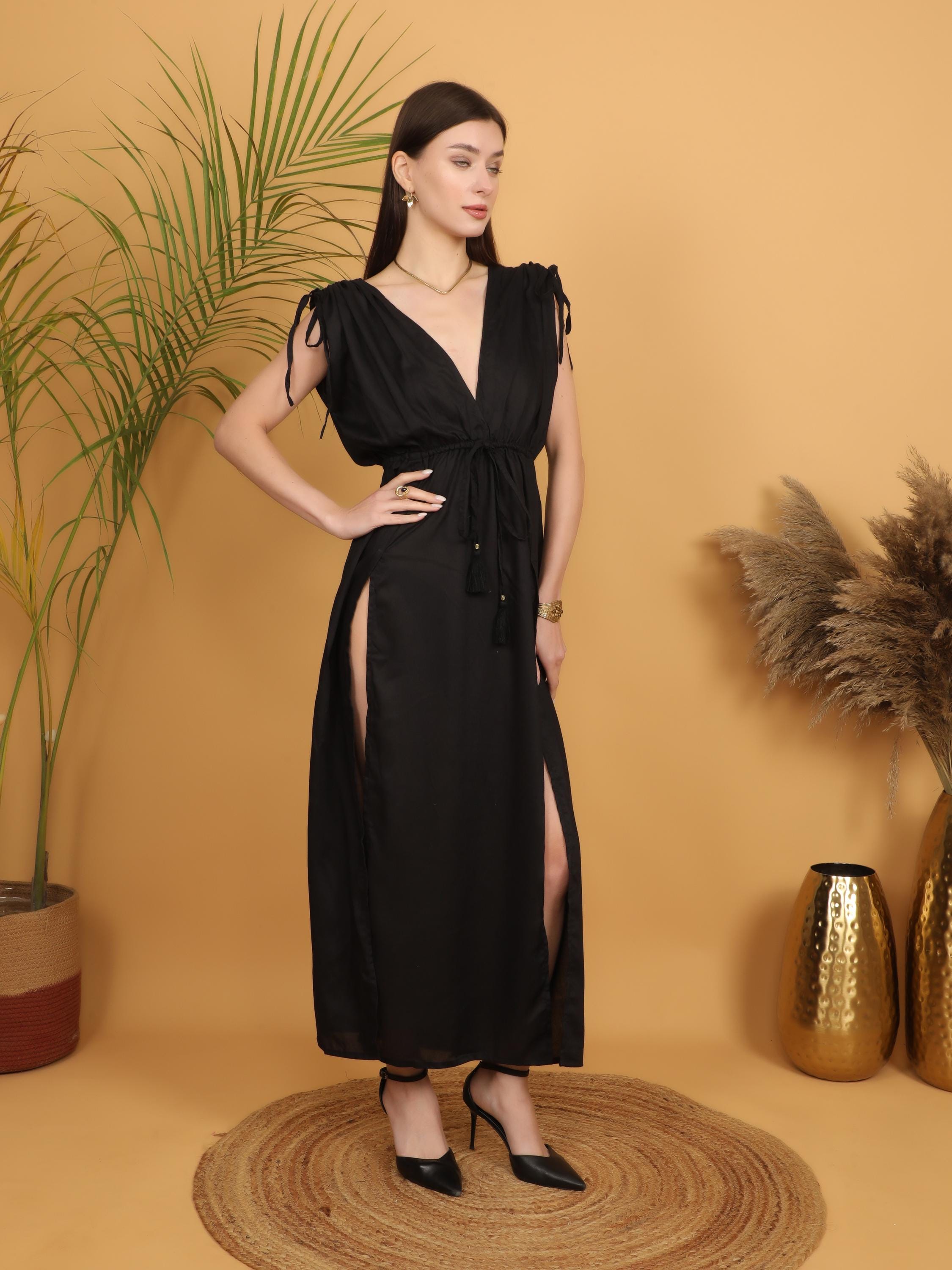 Effortlessly chic and beautifully fluid, this black boho maxi dress is designed to move with you. Crafted from soft, breathable viscose, it drapes naturally over the body, creating a flattering and feminine silhouette.