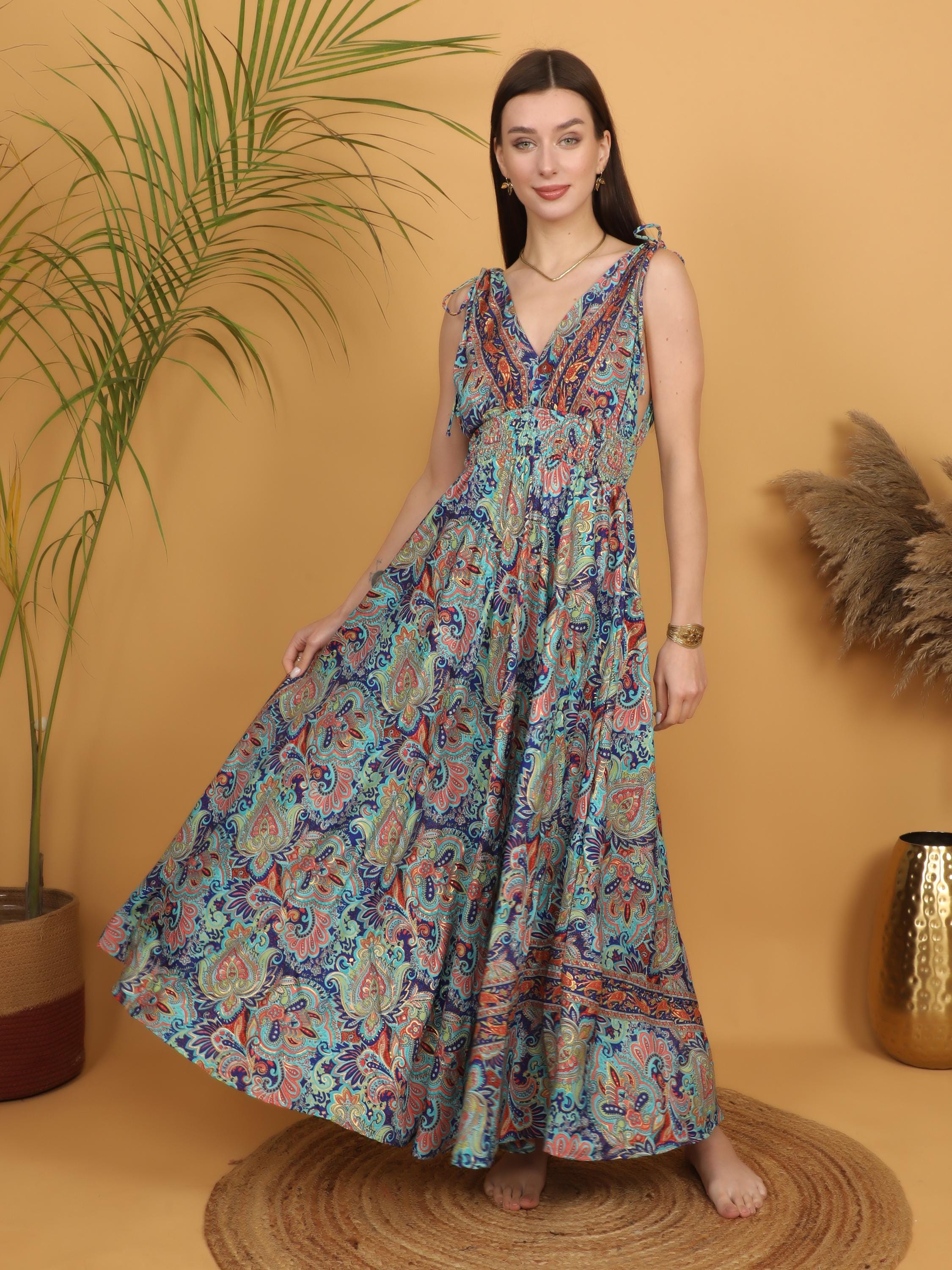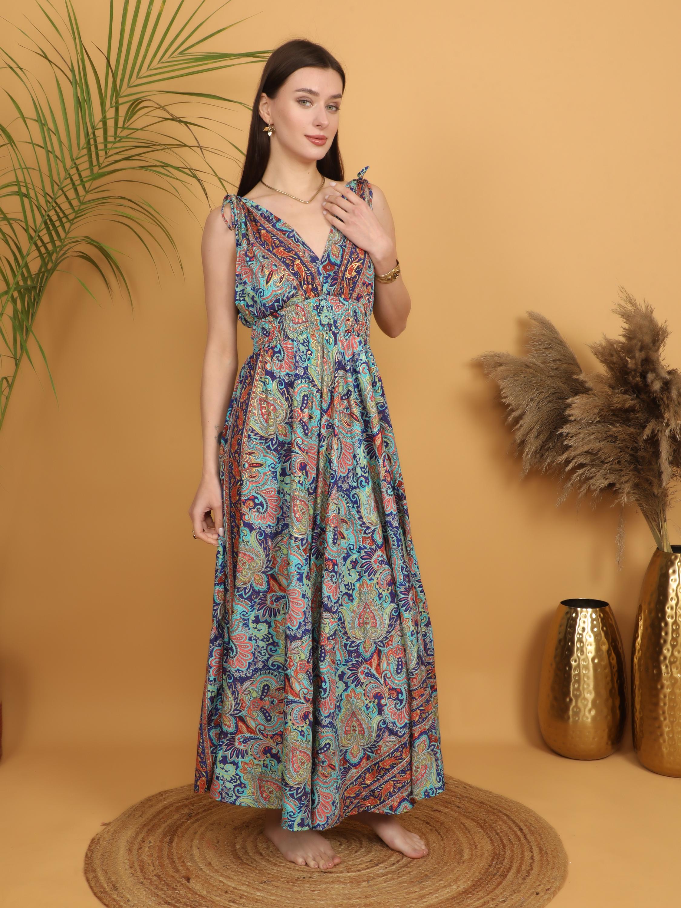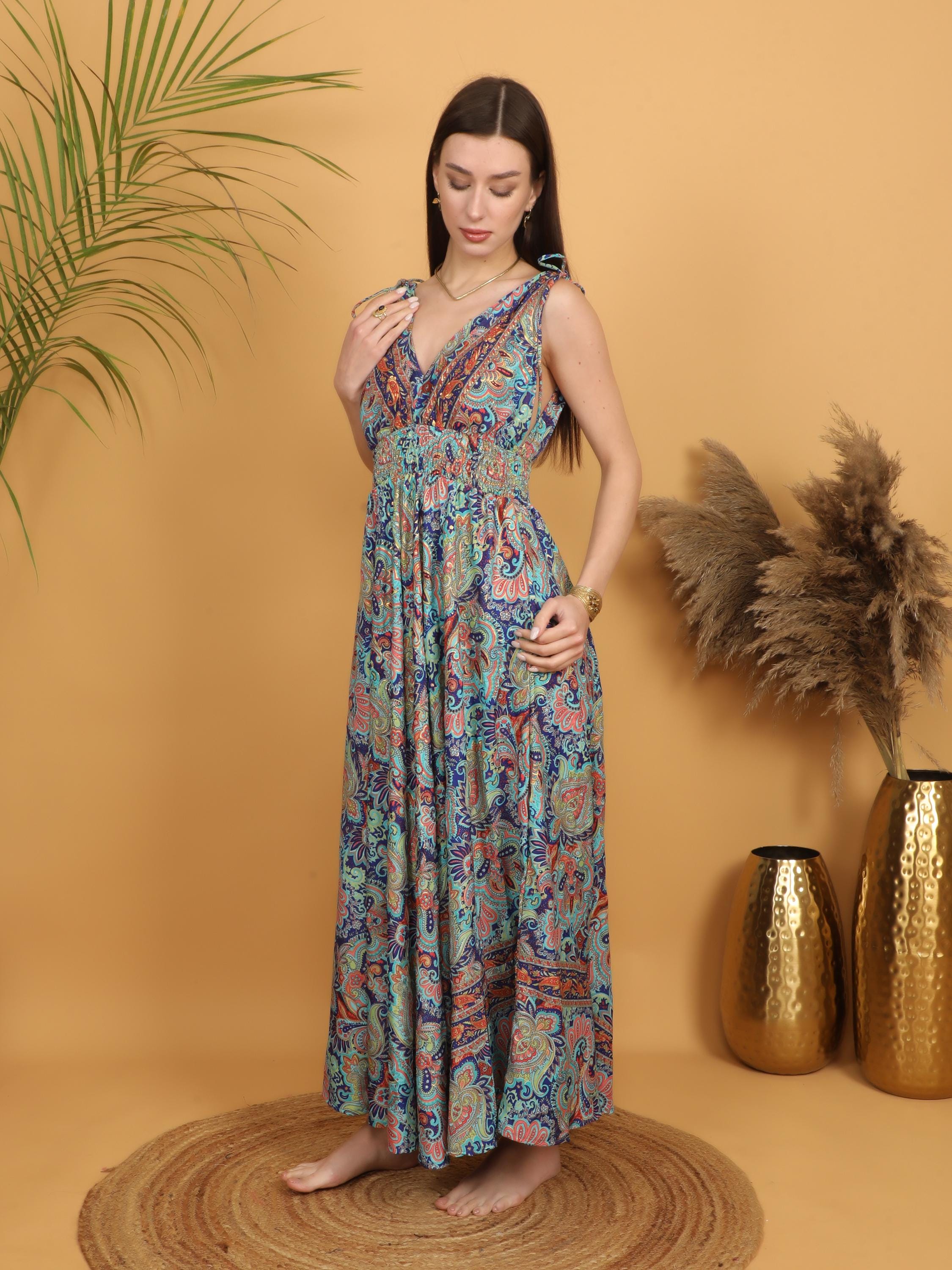 Turn every entrance into a statement with this multicolor paisley boho maxi dress designed for bold, free-spirited women.