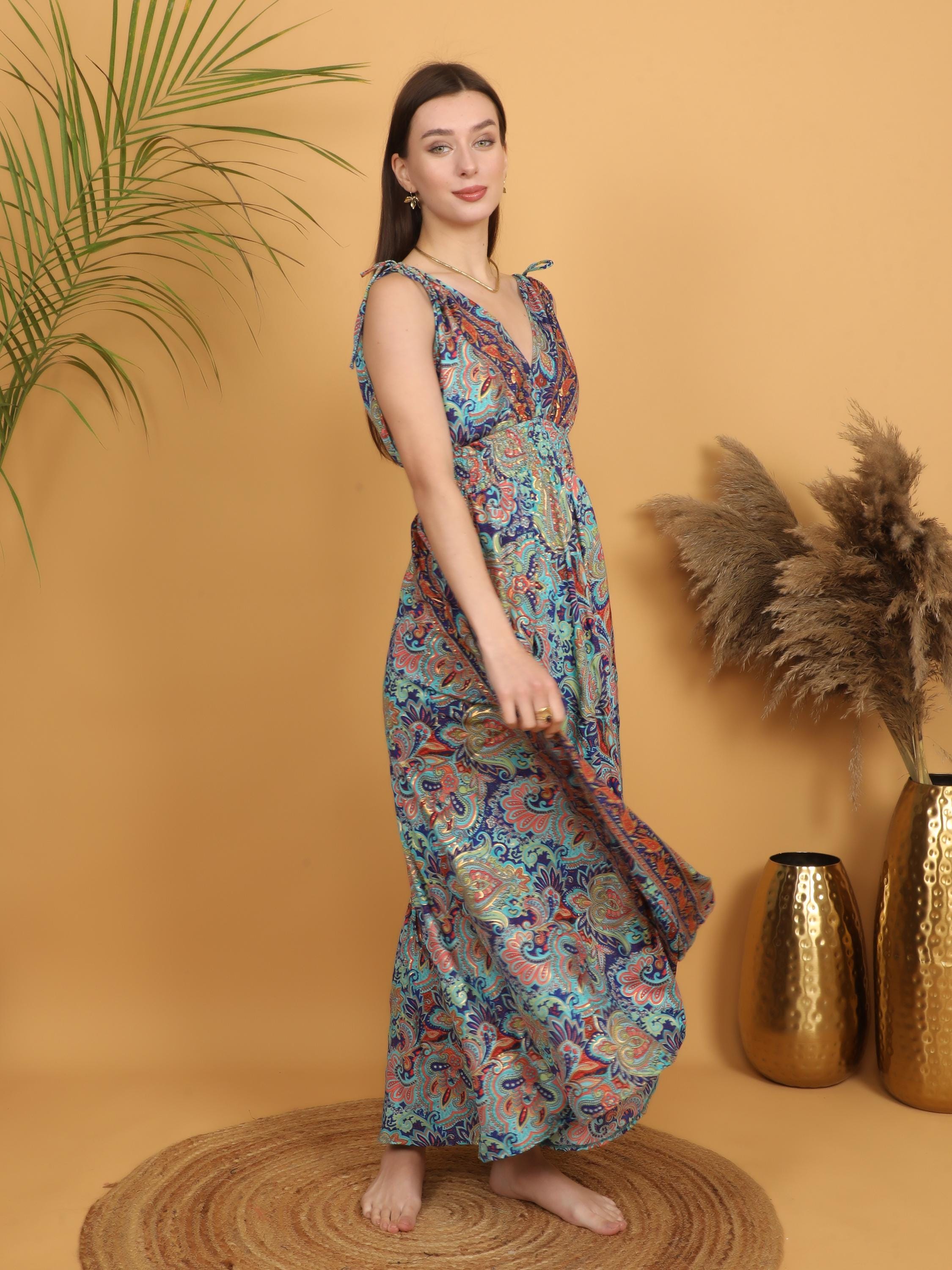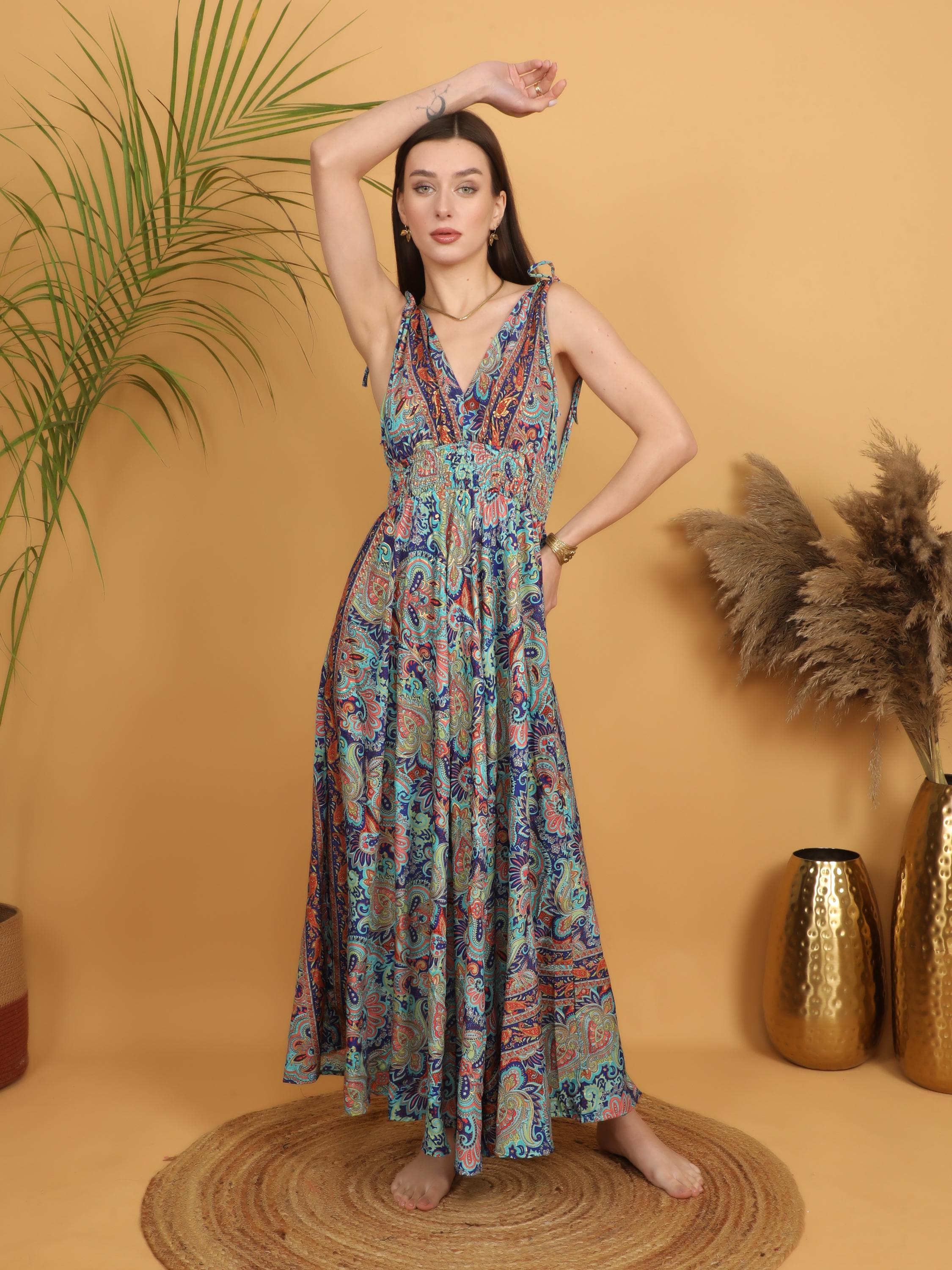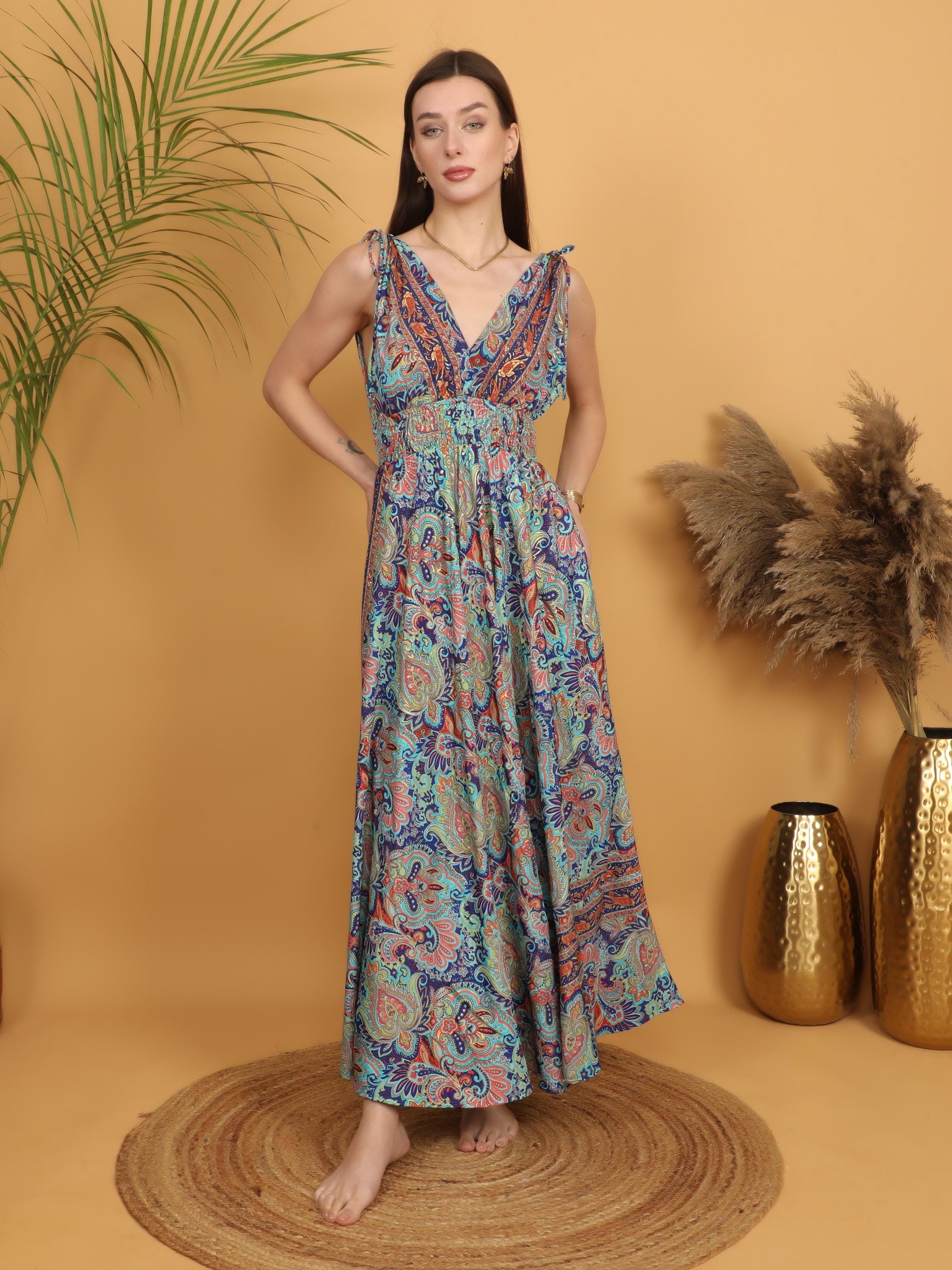 Turn every entrance into a statement with this multicolor paisley boho maxi dress designed for bold, free-spirited women.