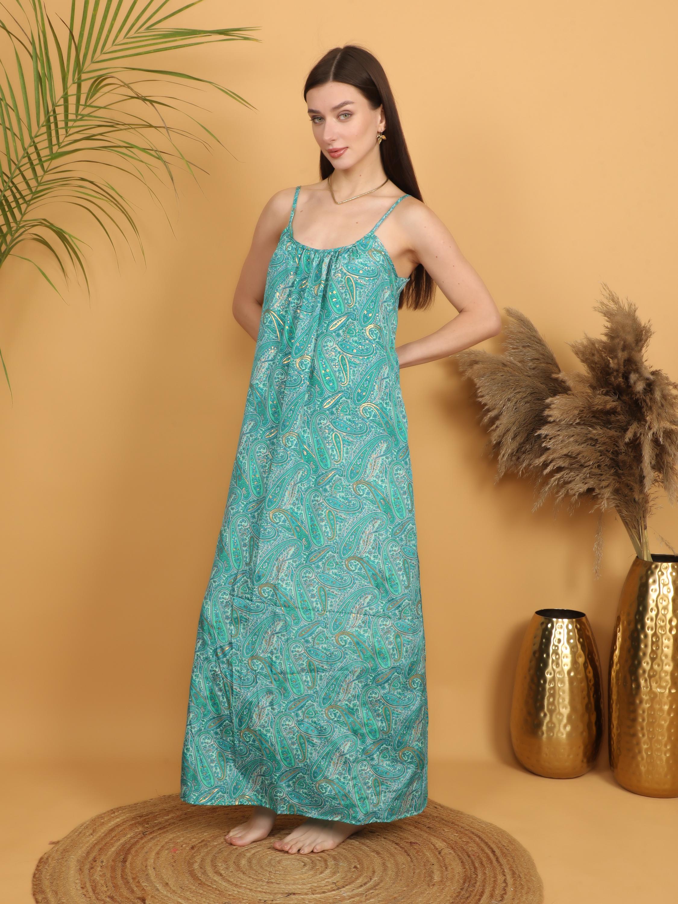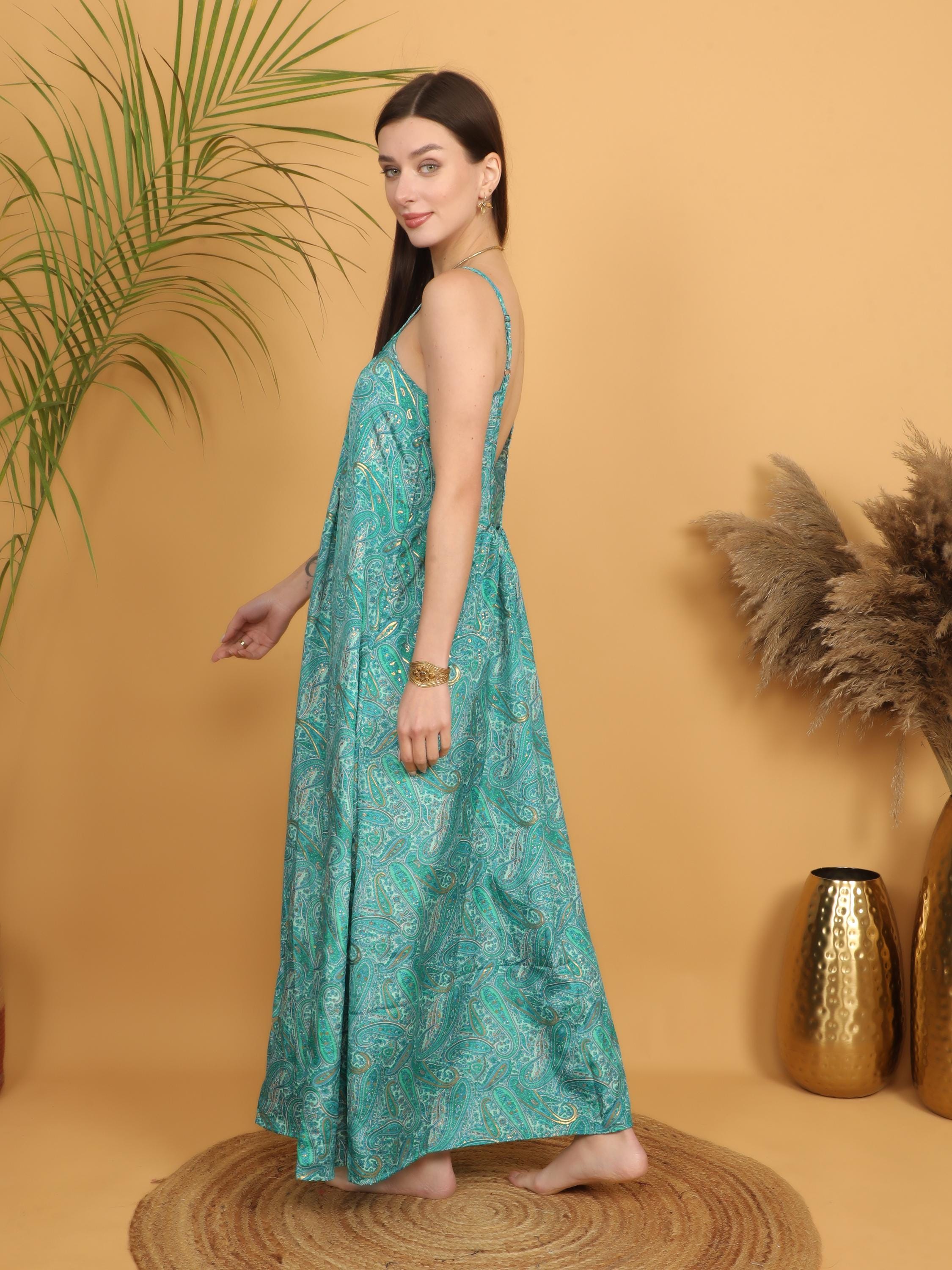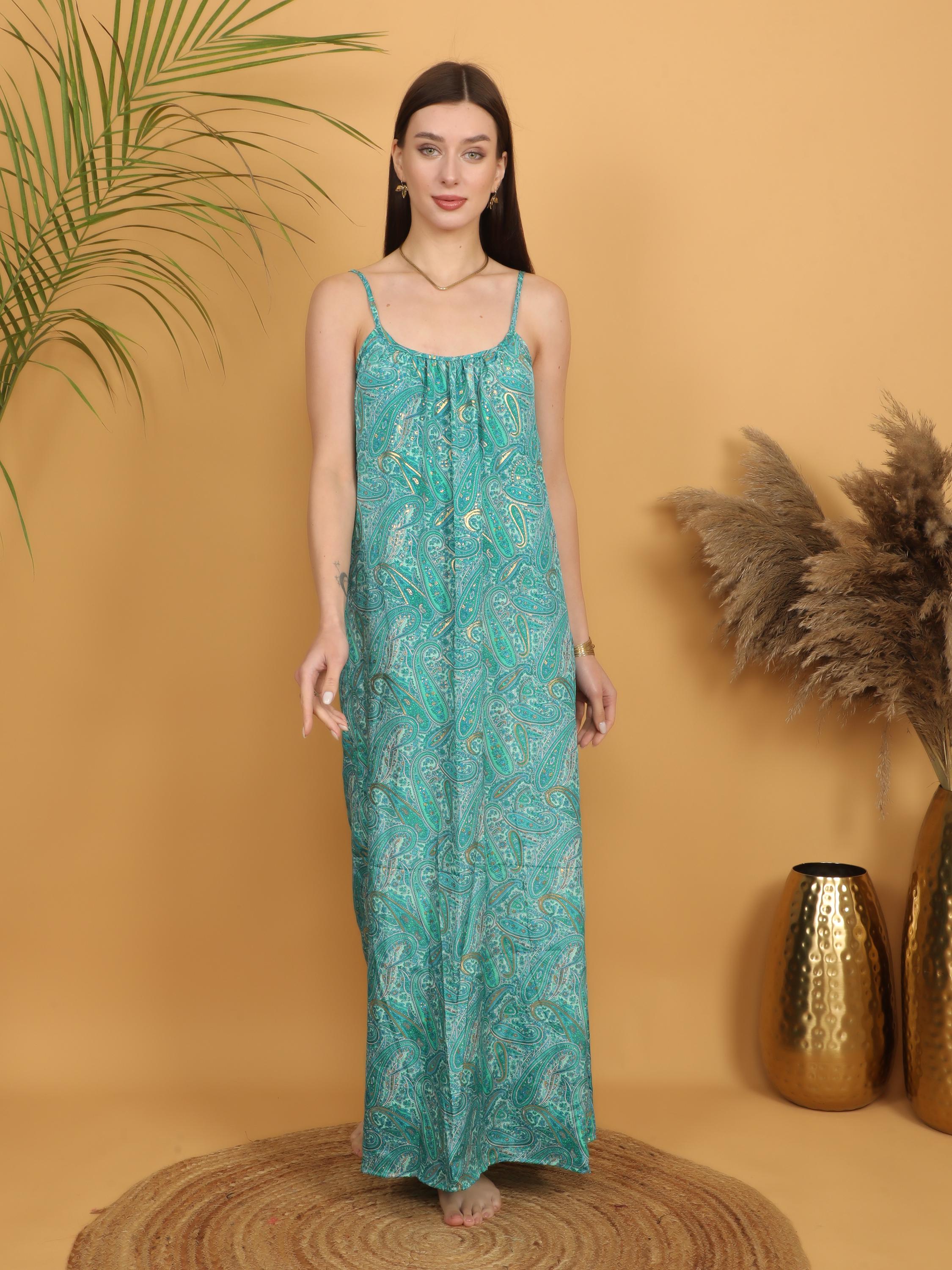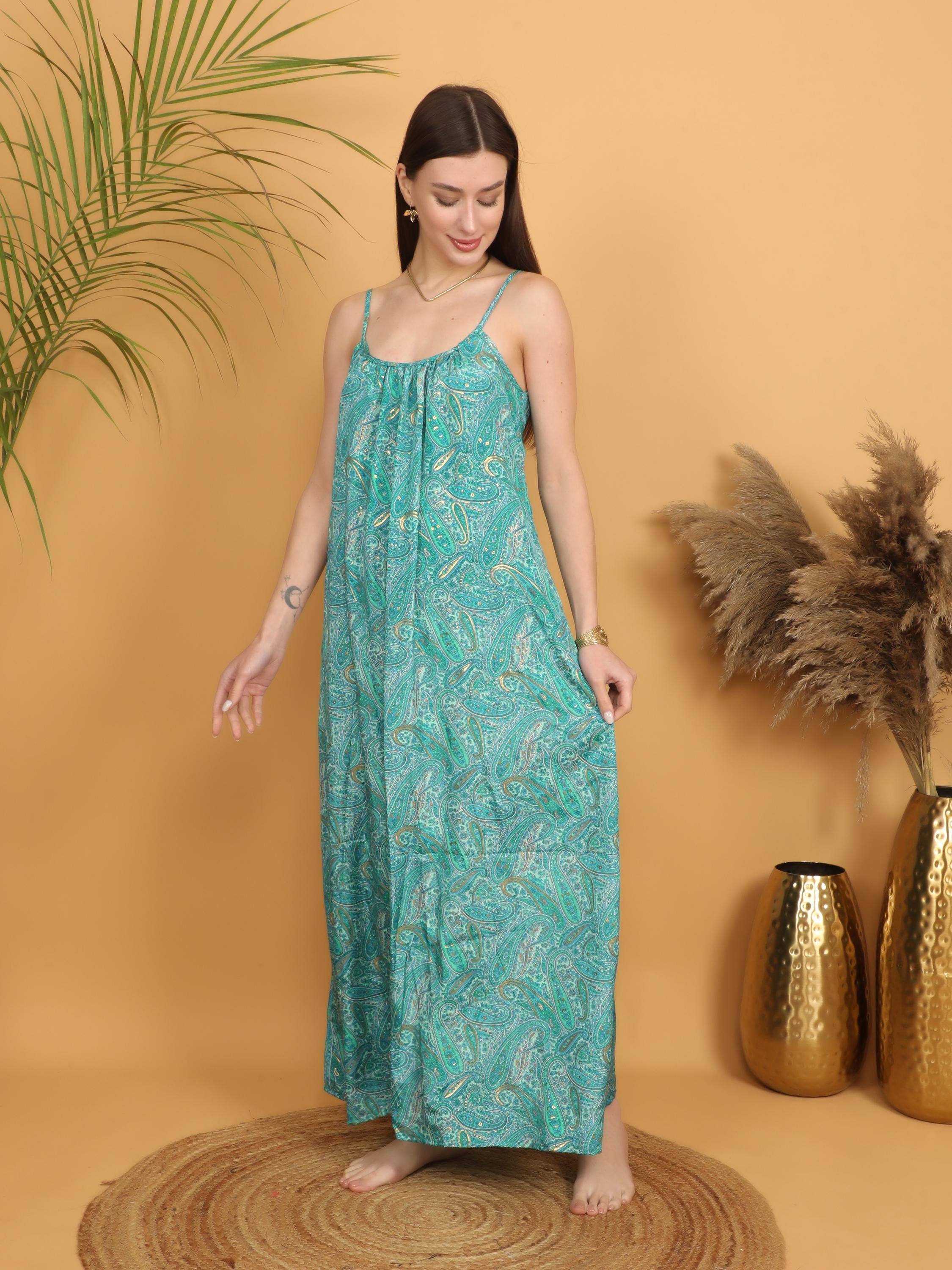 Embrace effortless bohemian elegance with this stunning turquoise paisley maxi dress, designed for free spirits and sun lovers. Featuring a mesmerizing boho-inspired paisley print in vibrant shades of turquoise, soft green, and subtle gold tones, this dress radiates warmth and wanderlust energy.