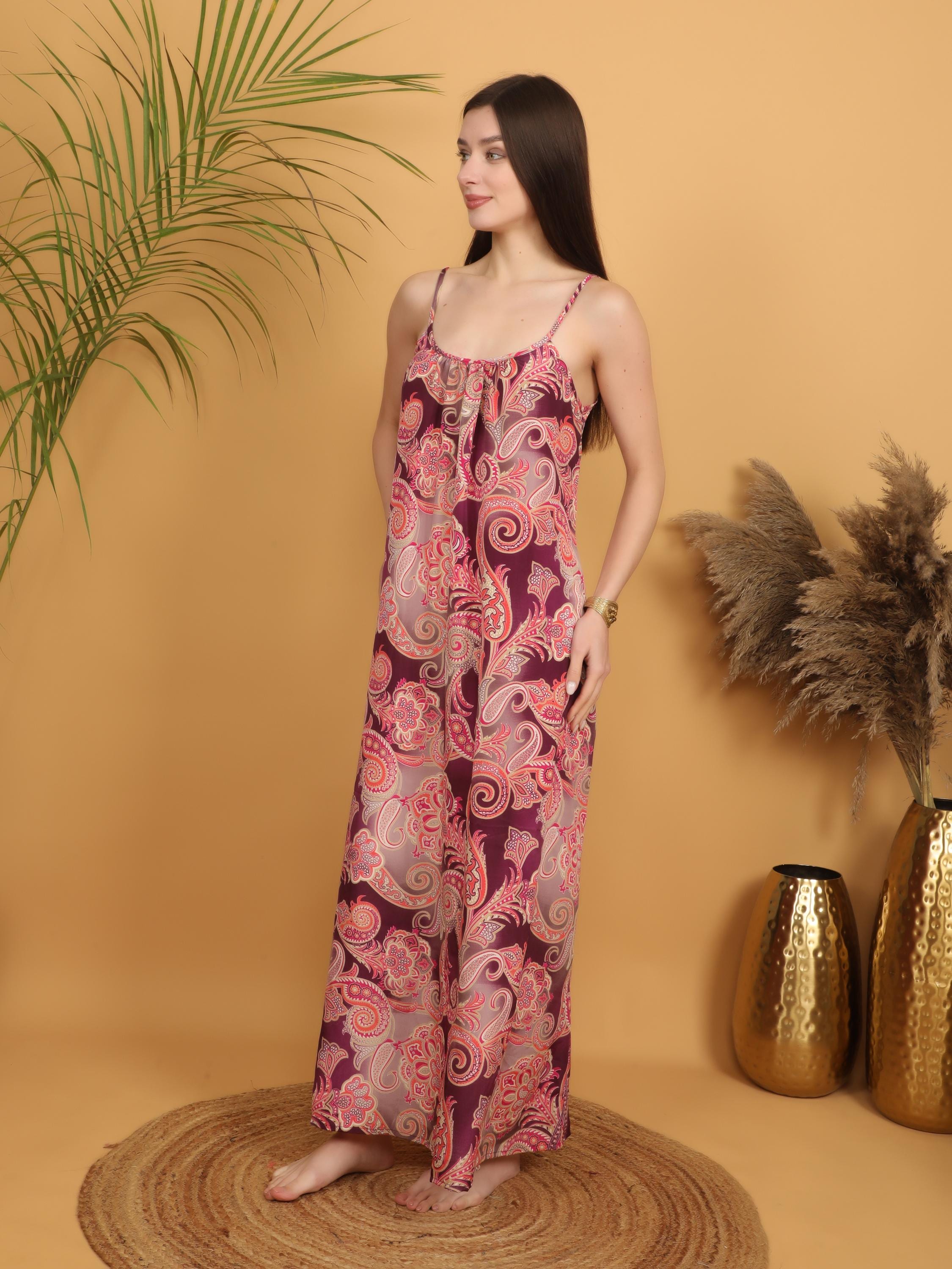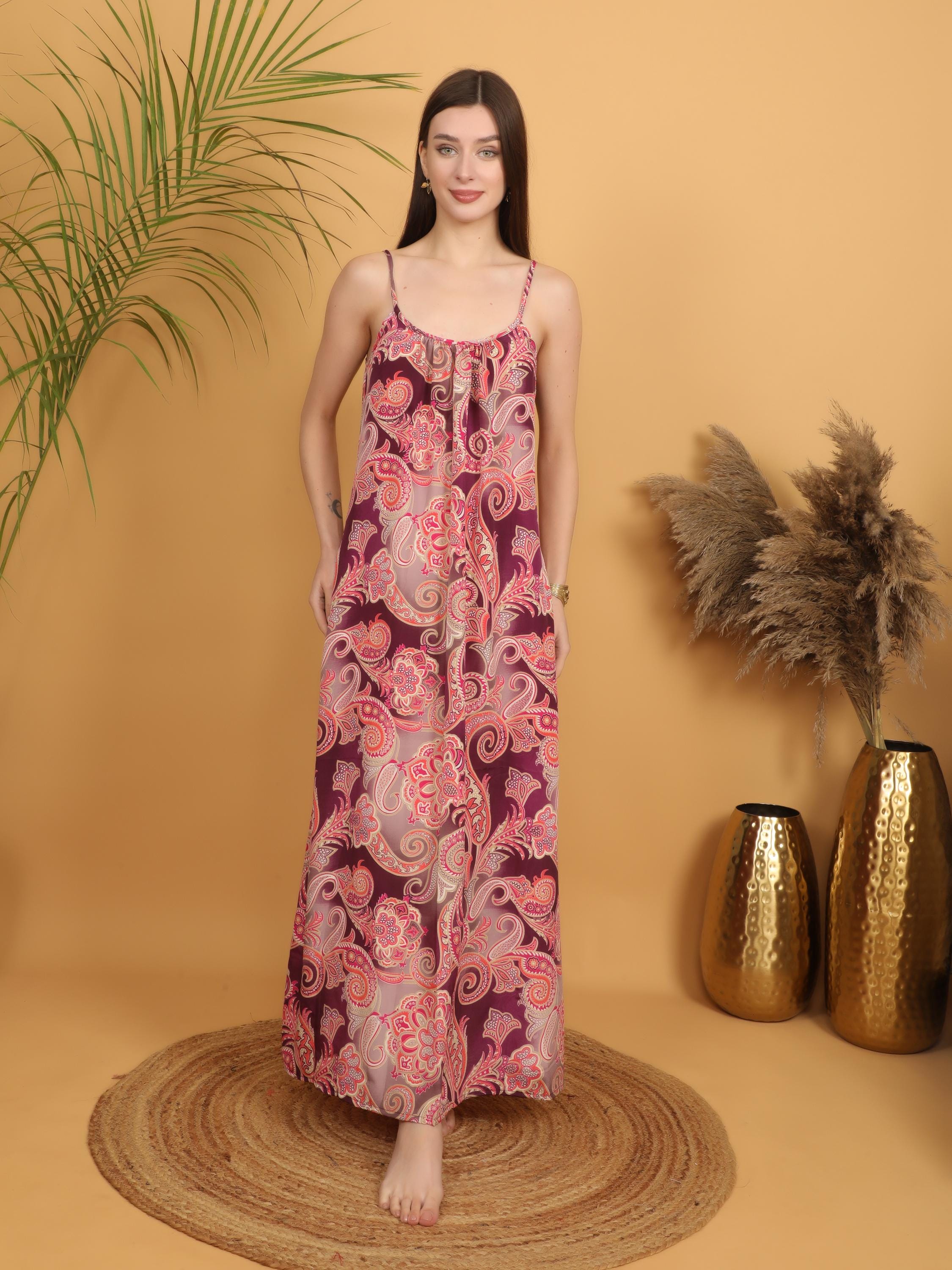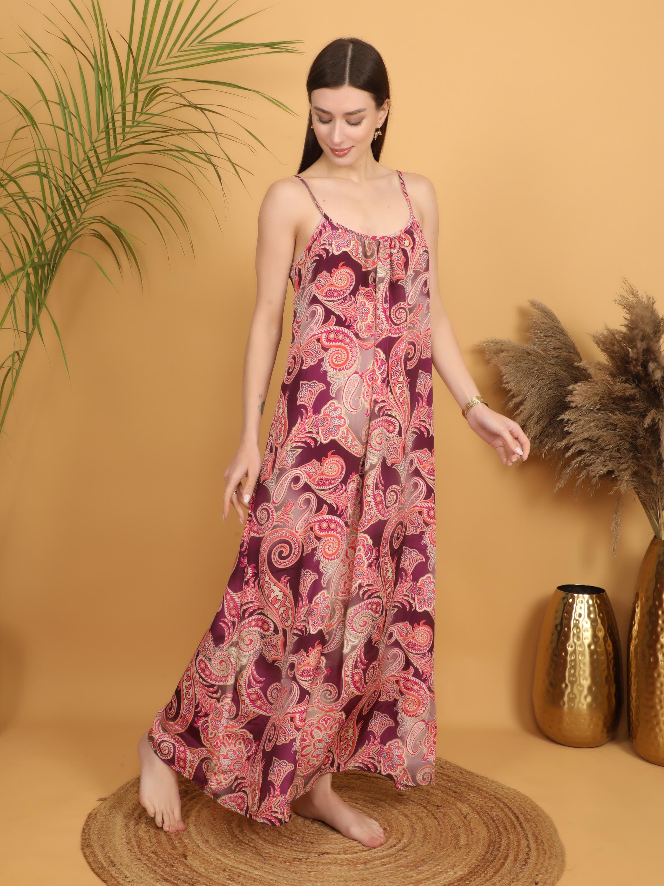 This version of our signature boho silhouette features a rich burgundy base enhanced by intricate pink, coral and soft beige paisley patterns, creating a warm, romantic and vintage-inspired aesthetic. The detailed swirling print gives the dress depth, movement and that unmistakable bohemian charm.