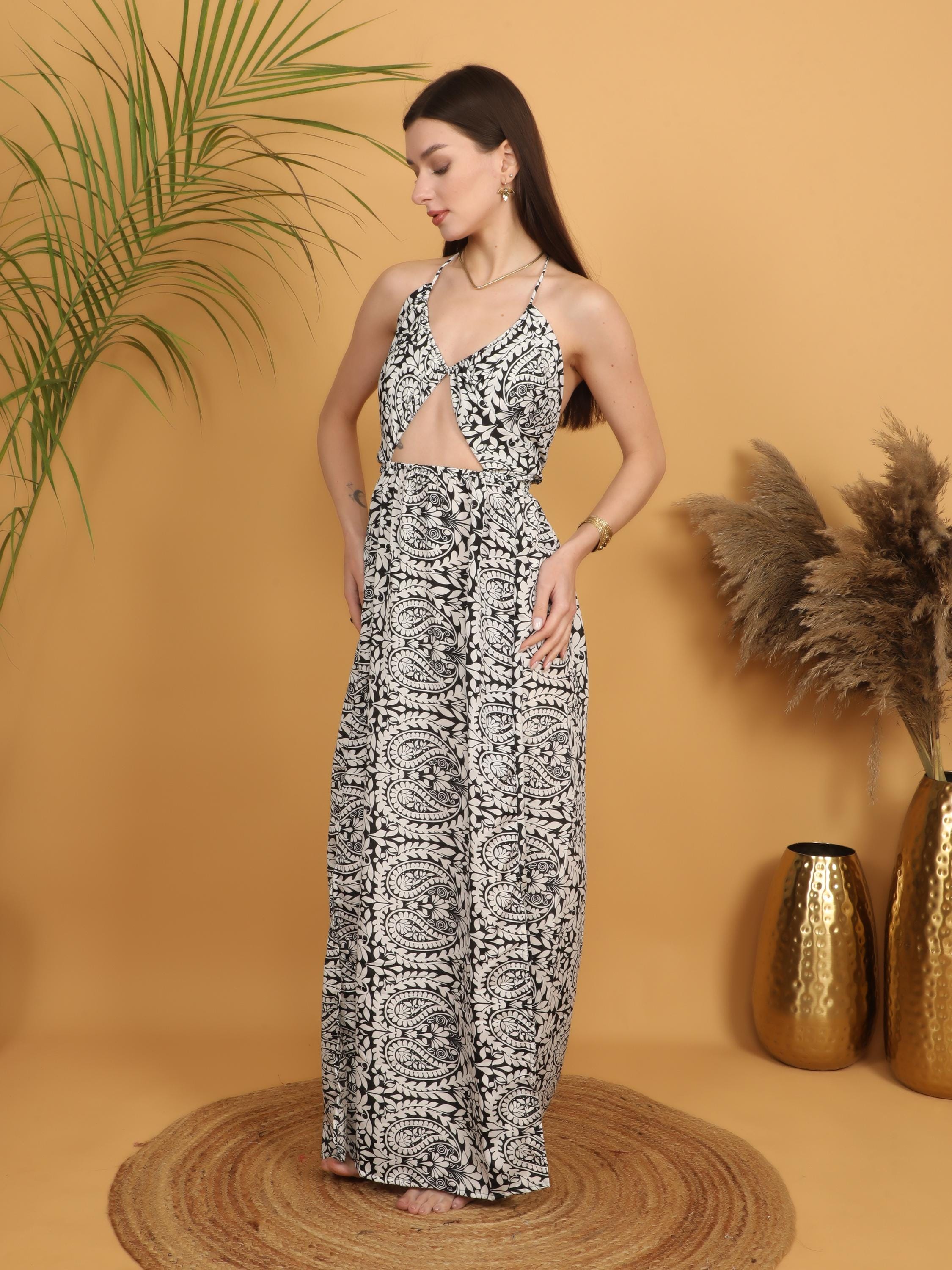 The intricate paisley print in black and white gives this piece a chic vintage-inspired bohemian feel, easy to style with sandals, layered necklaces, or a wide-brim hat for a complete boho outfit.